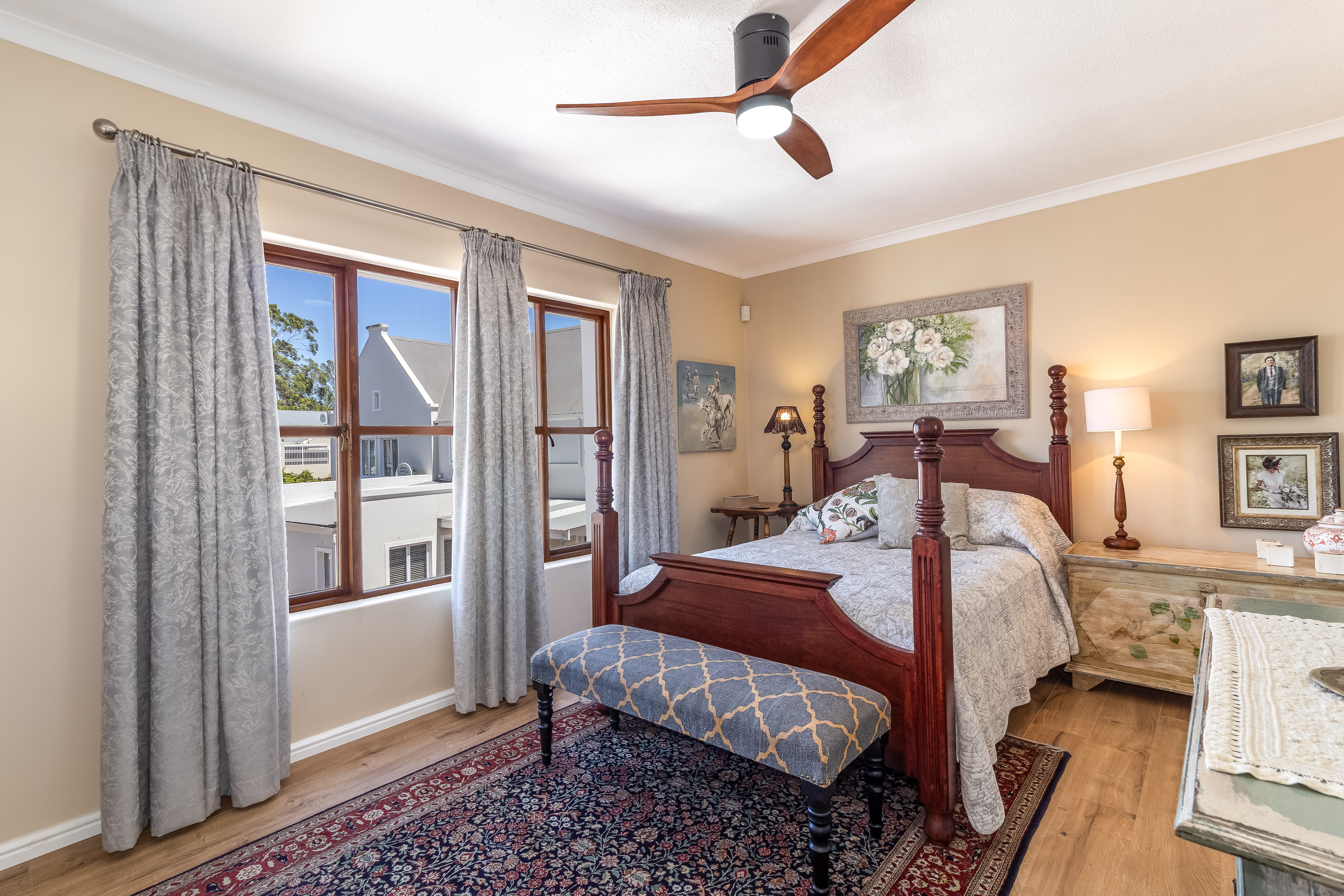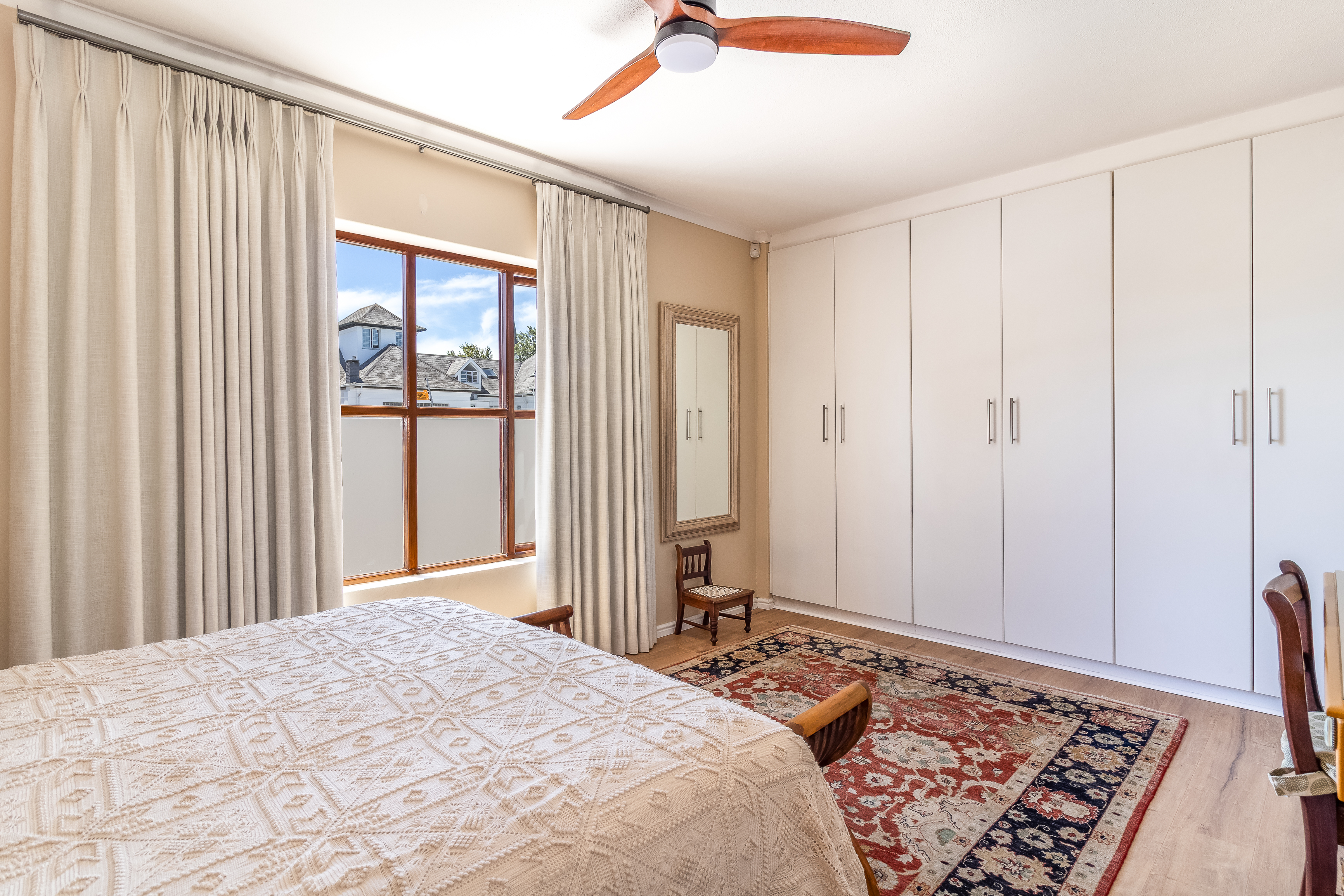 Perfectly positioned in one of the most sought-after and historically significant streets in the heart of Stellenbosch , this beautifully renovated three-bedroom apartment offers an exceptional combination of classic character, modern comfort and prime central location. Situated within an exclusive and intimate block comprising only three residences, it delivers rare privacy and exclusivity in the vibrant historic core of town.