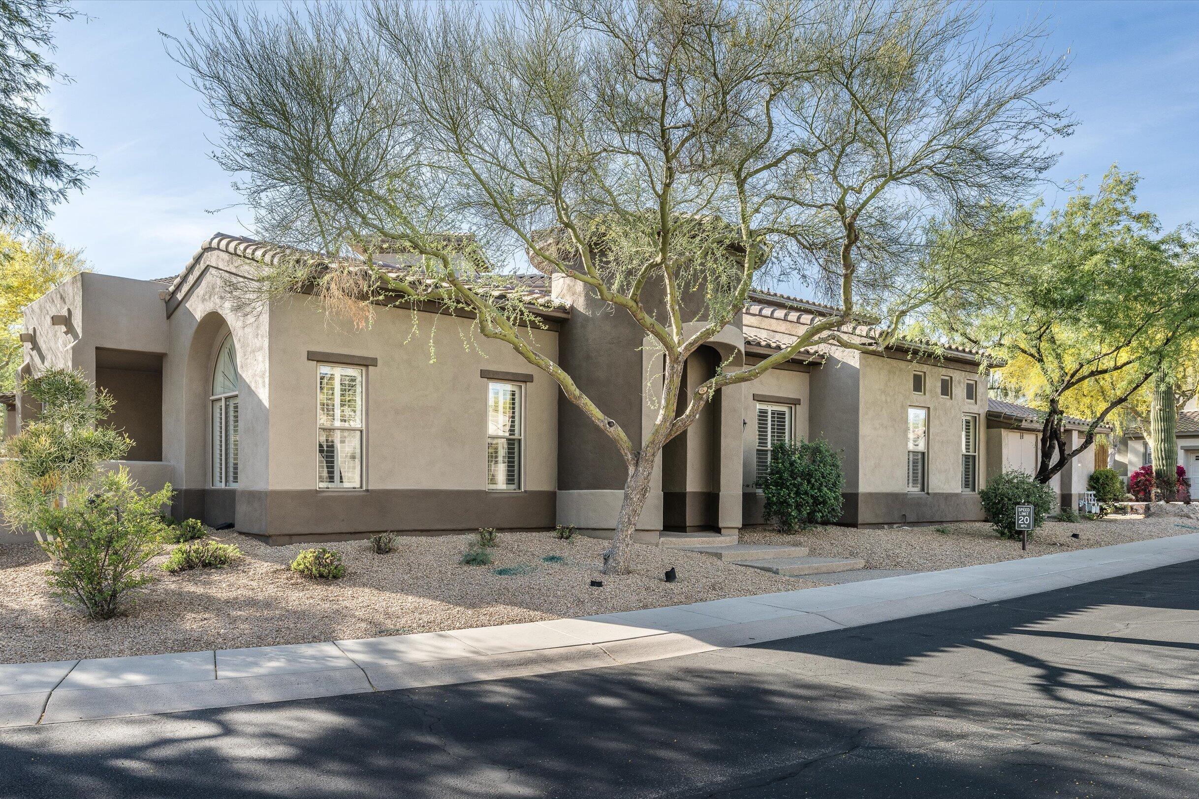 Welcome home to the highly sought-after guard-gated community of Avian at Grayhawk. Rare single-level, 3-bedroom, 2-bath corner residence offers ultimate convenience with no interior steps. Major systems have been recently updated, including a new HVAC system, water heater, and water softener (within 5 years). Open-floor plan features an open kitchen with central island seamlessly flowing into the dining and living areas, highlighted by a two-way fireplace. Spacious primary suite offers an ensuite bath and large closet. Enjoy Arizona living year-round on the large, south-facing covered patio. 2-car garage with epoxy flooring and built-in cabinetry. Ideally located within walking distance to Grayhawk Golf Club, shopping, and dining. Community features include pool and spa, tennis courts, scenic walking trails, and multiple parks.