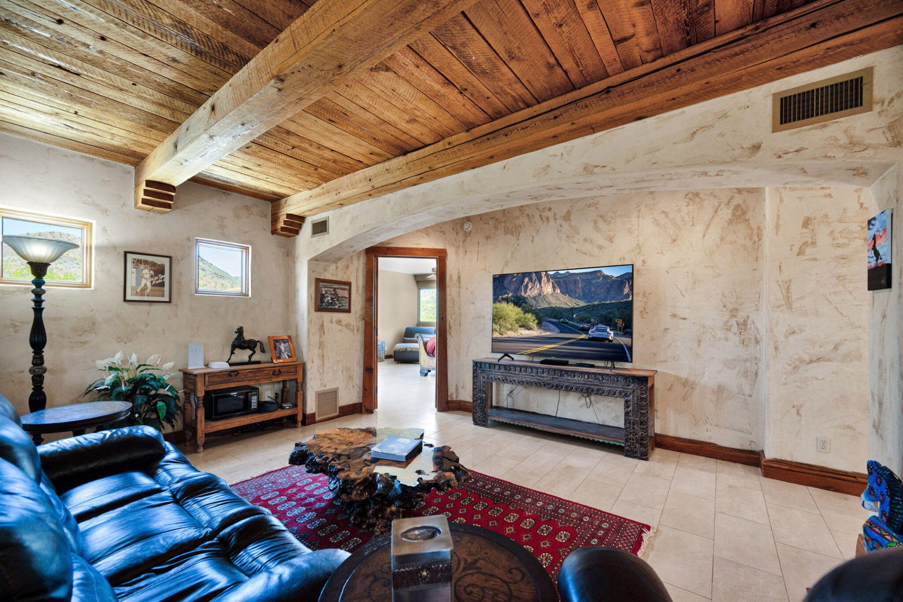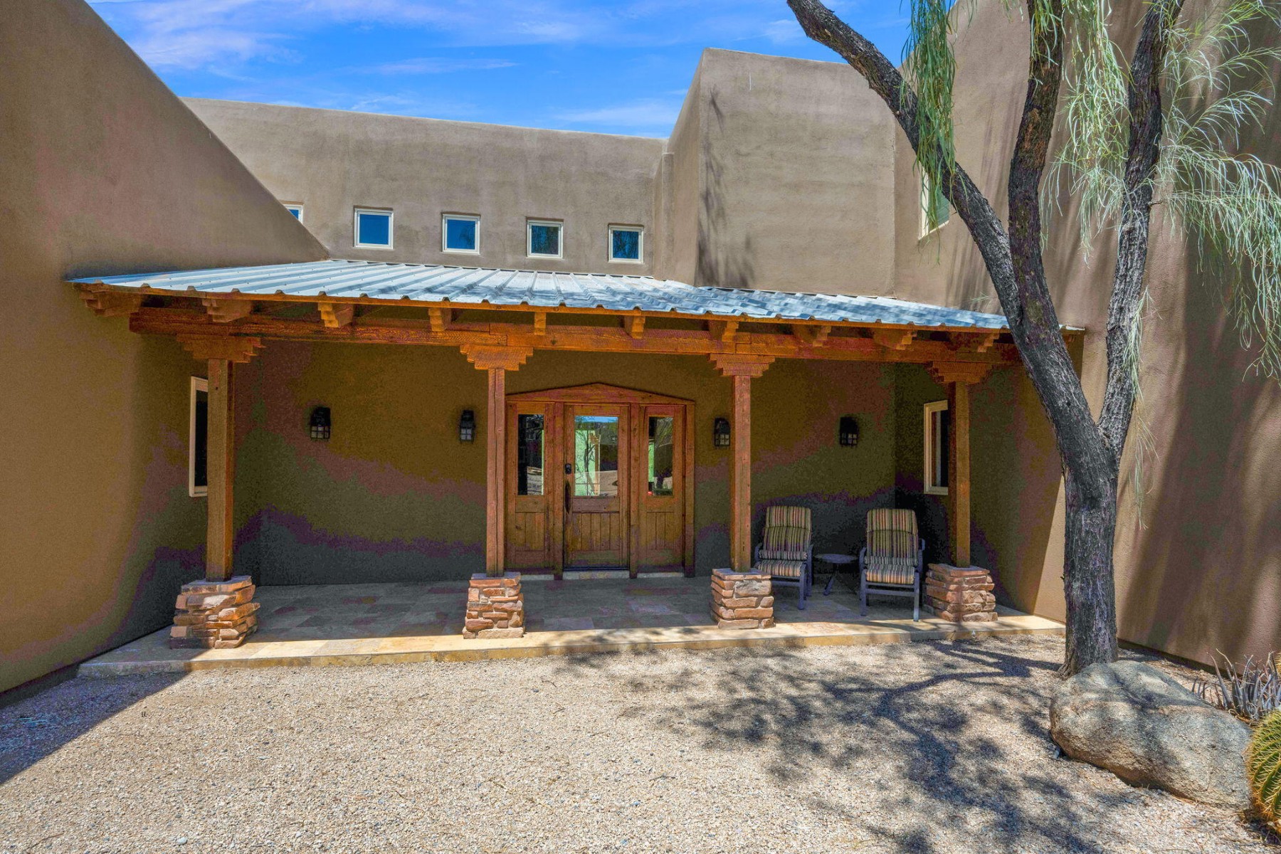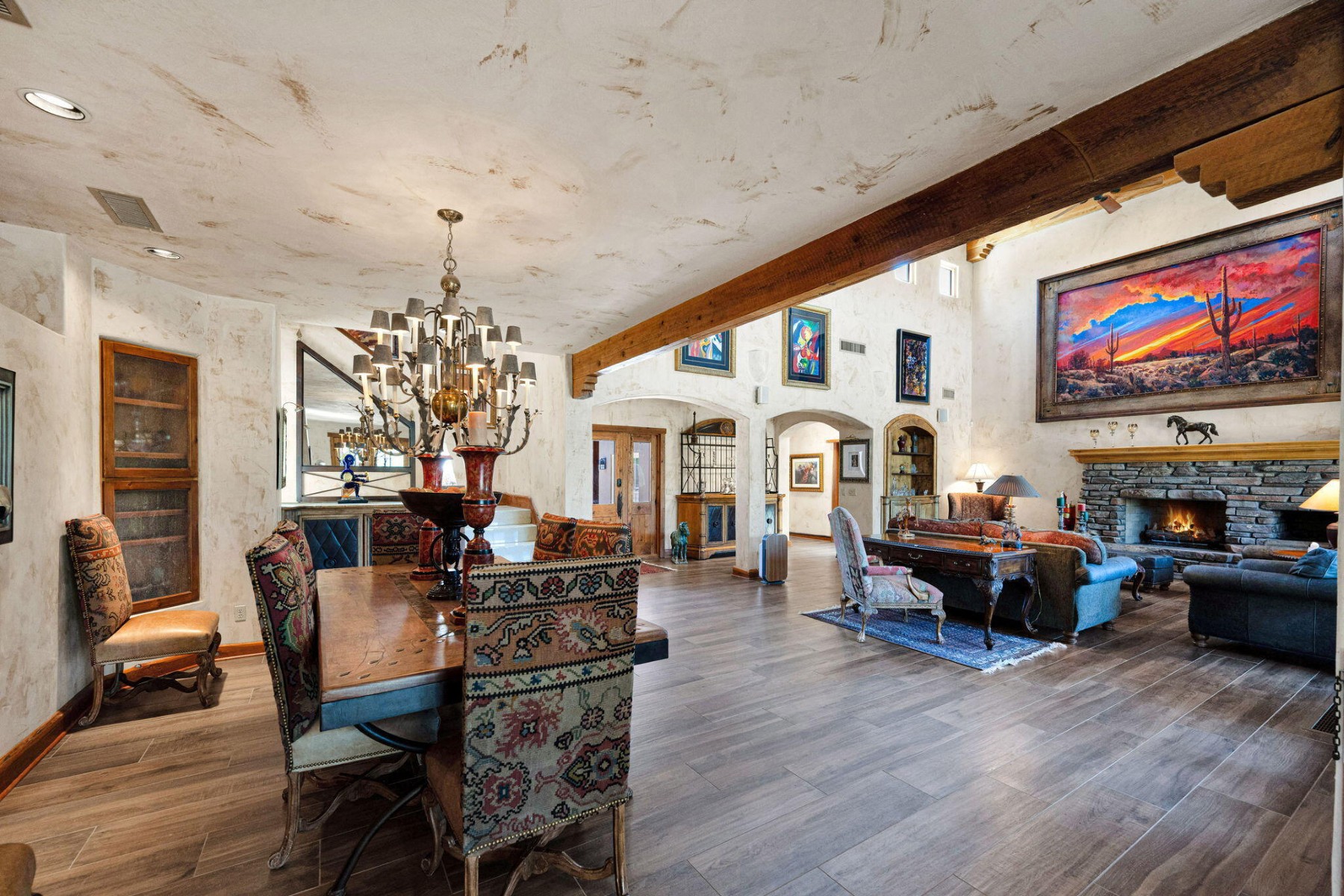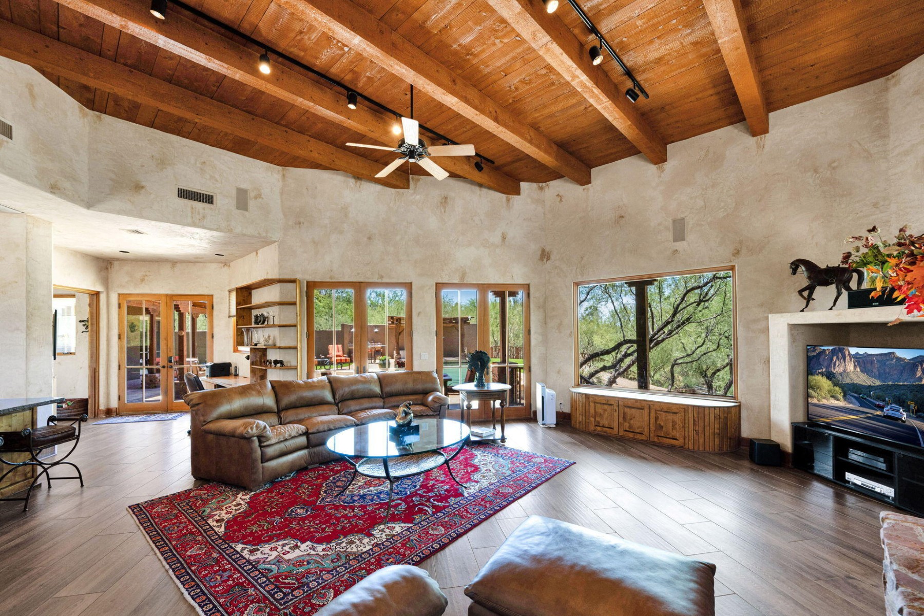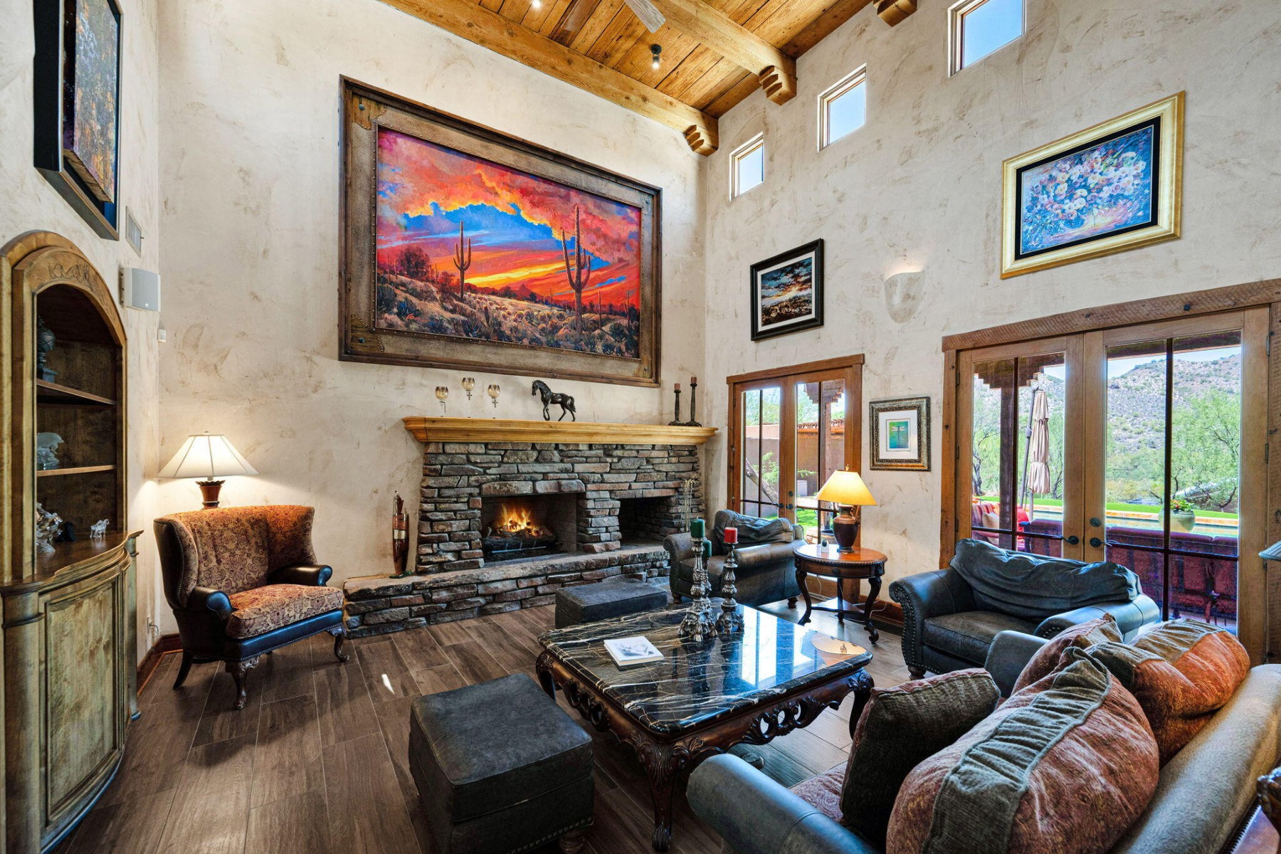 Cave Creek luxury estate with adjacent parcels offering rare opportunity for collector garage, second home, or family compound with direct trail access. Situated on nearly 10 acres, this Arizona property provides flexibility to create a custom car collector garage, guest residence, or multi-generational compound in one of Cave Creek's most desirable locations. Minutes from dining, galleries, and the town center, yet offering privacy, paved access, and city water. Set against a protected mountain backdrop, the home enjoys panoramic Sonoran Desert views and exceptional Arizona sunsets from expansive pool patios and nearly every window. The property borders open desert with direct access to thousands of acres of preserved trails within the Desert Foothills Land Trust Preserve and Cave Creek Regional Park, creating a rare blend of convenience, scenery, and open space.The gorgeous Southwest residence features hand-plastered walls, wood-beamed ceilings, chef's kitchen, guest suites, and a private primary retreat with steam shower, infrared sauna, and dual closets. Detached guesthouse with full kitchen and gym.Ideal for car collectors, luxury buyers seeking a compound property, or those desiring additional building opportunity with preserved desert access. No HOA.
