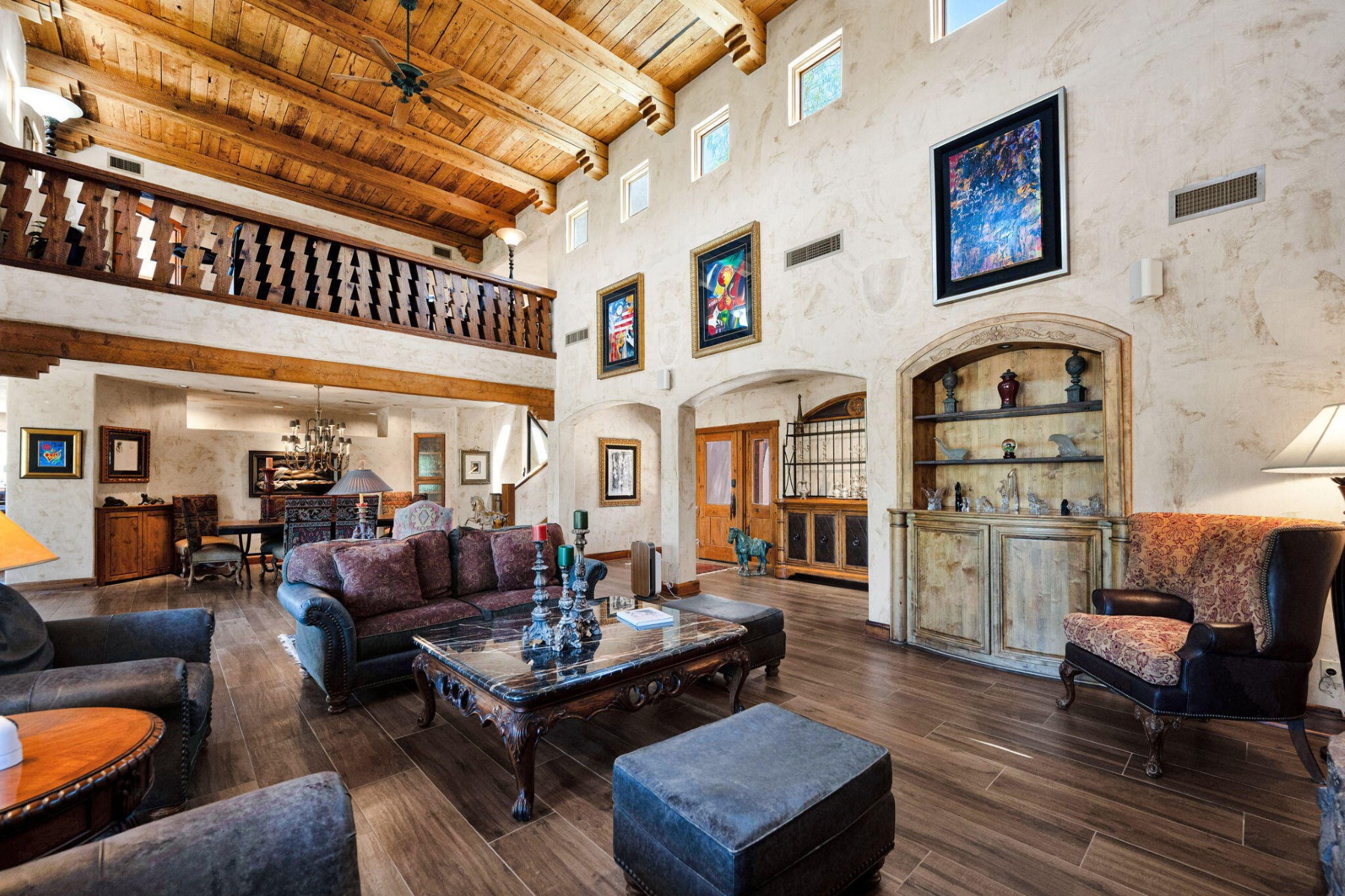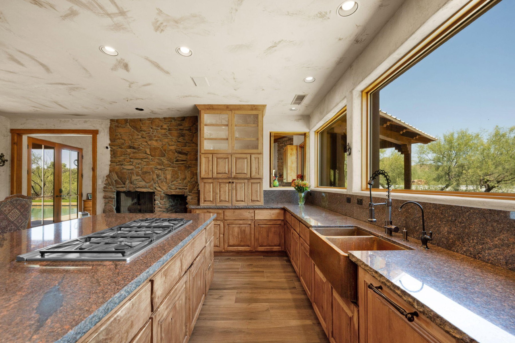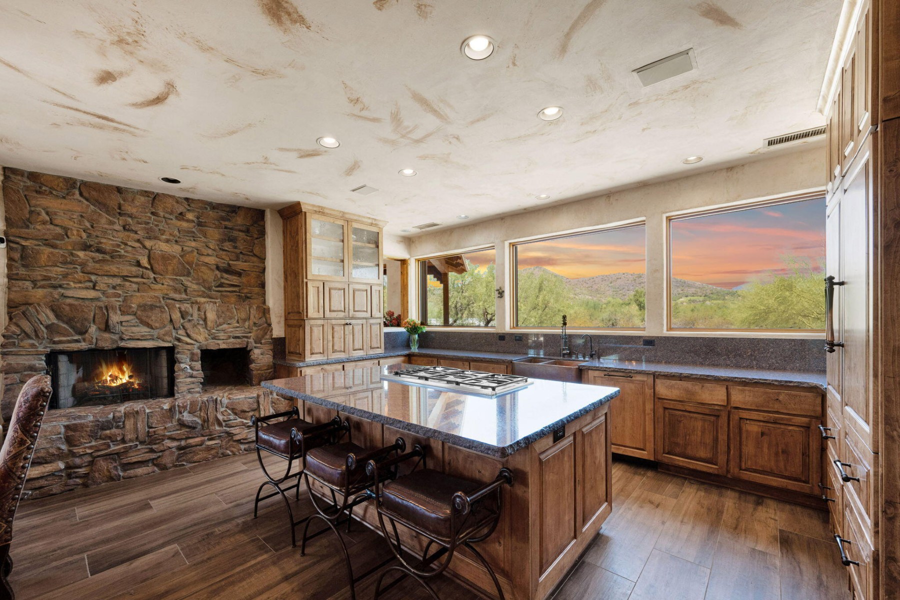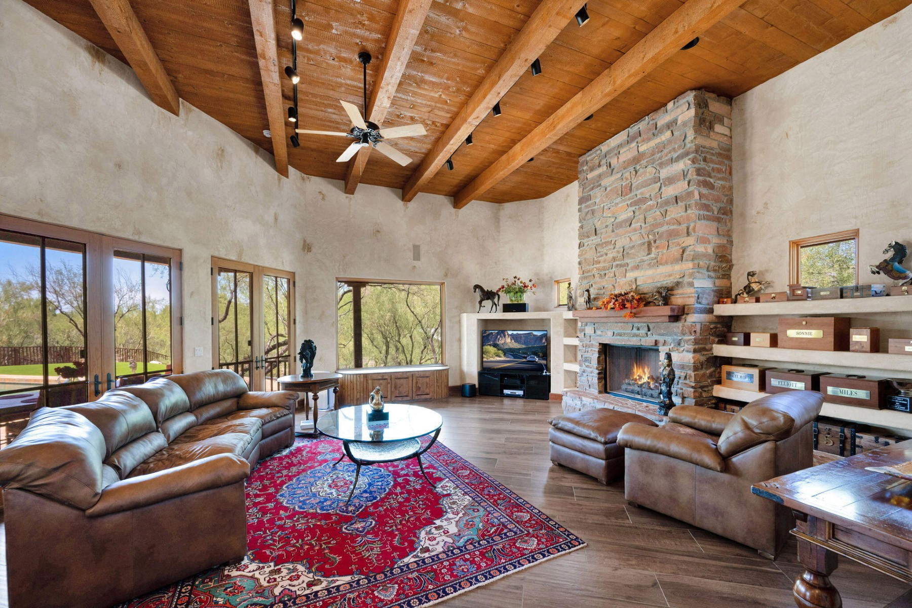 Cave Creek luxury estate with adjacent parcels offering rare opportunity for collector garage, second home, or family compound with direct trail access. Situated on nearly 10 acres, this Arizona property provides flexibility to create a custom car collector garage, guest residence, or multi-generational compound in one of Cave Creek's most desirable locations. Minutes from dining, galleries, and the town center, yet offering privacy, paved access, and city water. Set against a protected mountain backdrop, the home enjoys panoramic Sonoran Desert views and exceptional Arizona sunsets from expansive pool patios and nearly every window. The property borders open desert with direct access to thousands of acres of preserved trails within the Desert Foothills Land Trust Preserve and Cave Creek Regional Park, creating a rare blend of convenience, scenery, and open space.The gorgeous Southwest residence features hand-plastered walls, wood-beamed ceilings, chef's kitchen, guest suites, and a private primary retreat with steam shower, infrared sauna, and dual closets. Detached guesthouse with full kitchen and gym.Ideal for car collectors, luxury buyers seeking a compound property, or those desiring additional building opportunity with preserved desert access. No HOA.