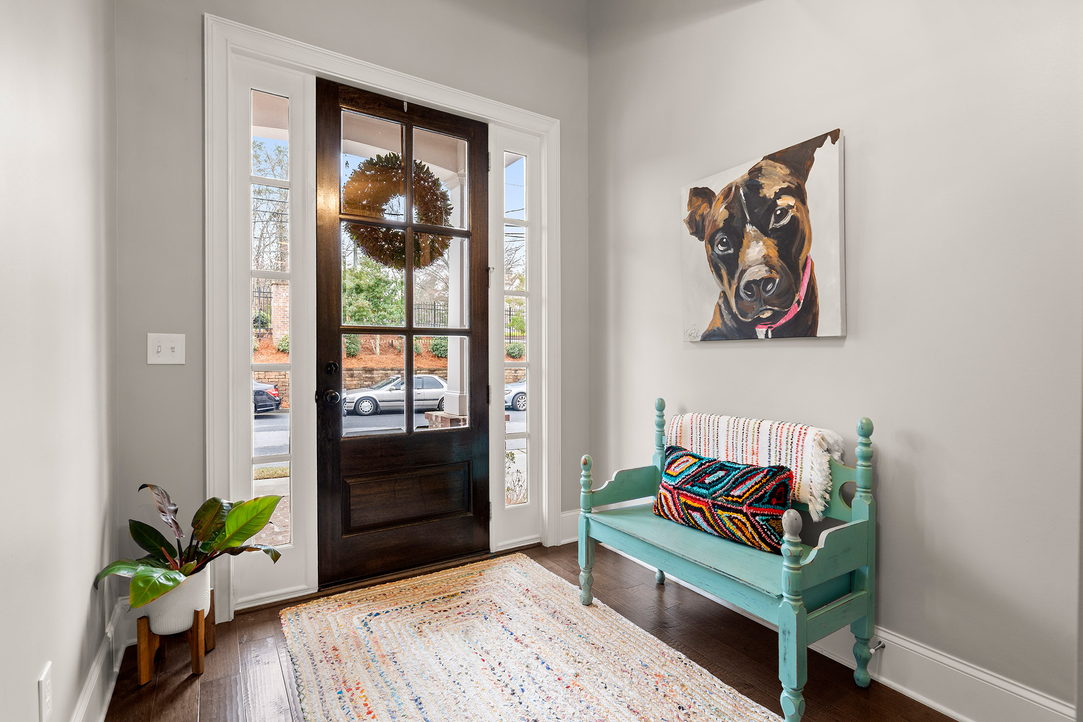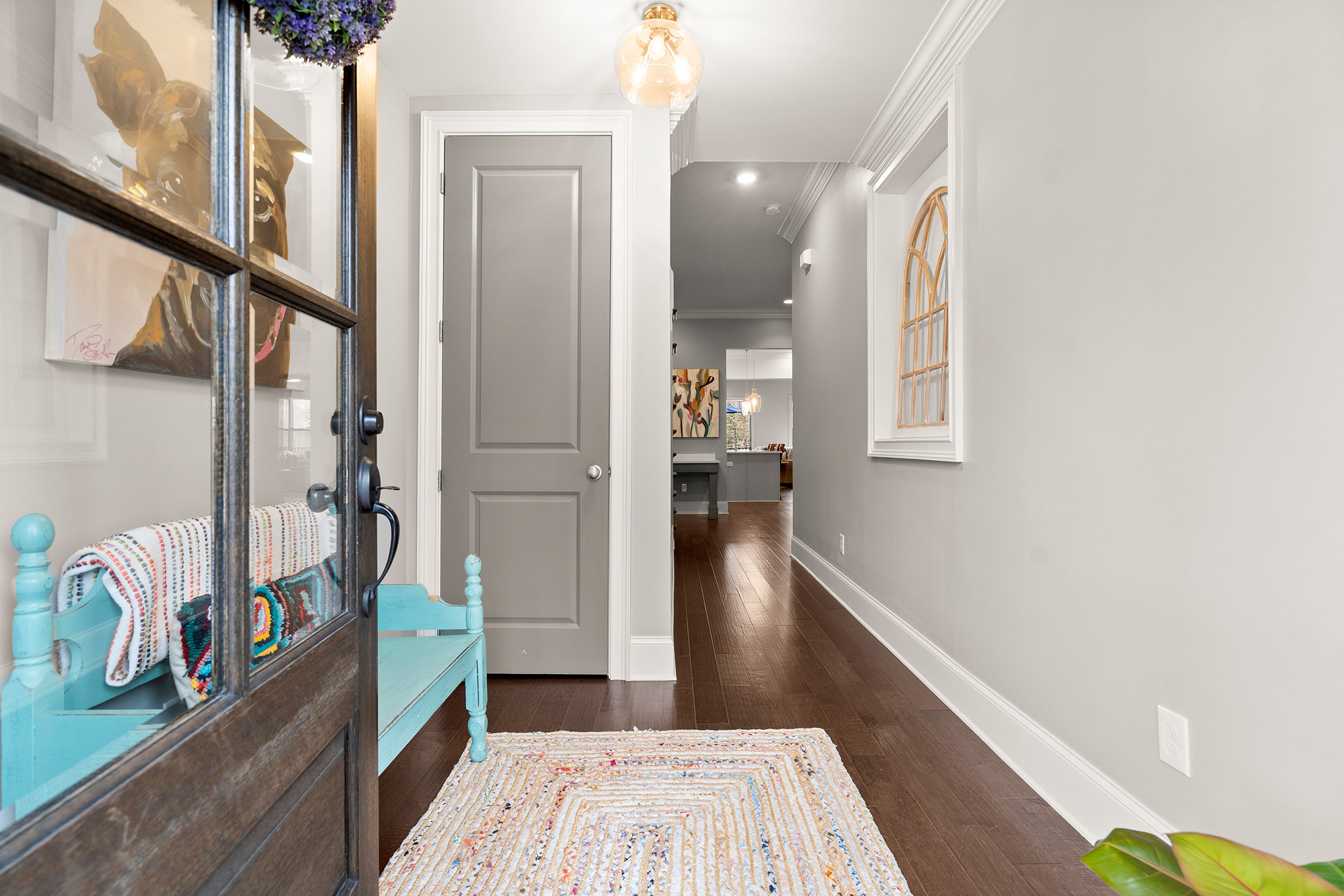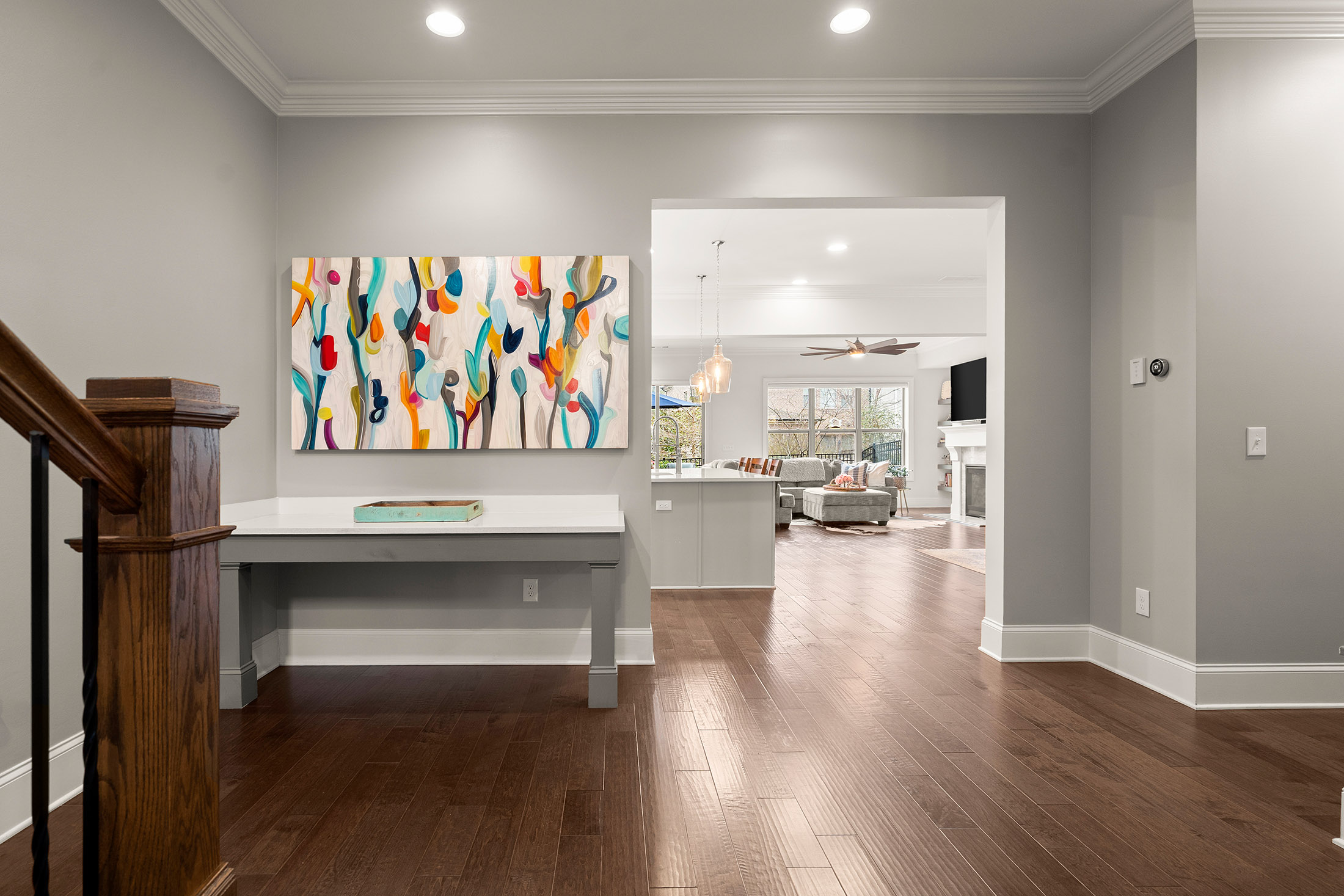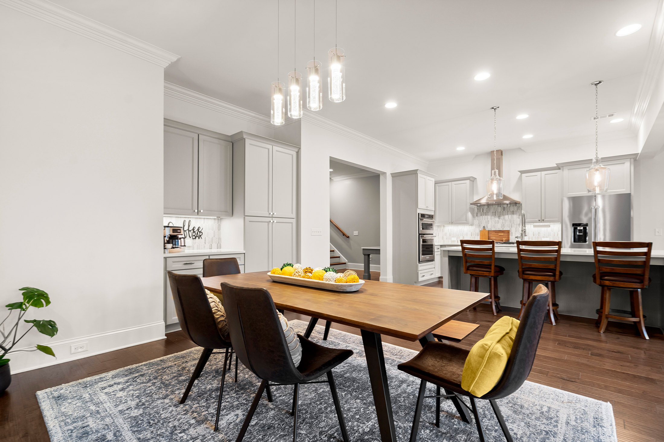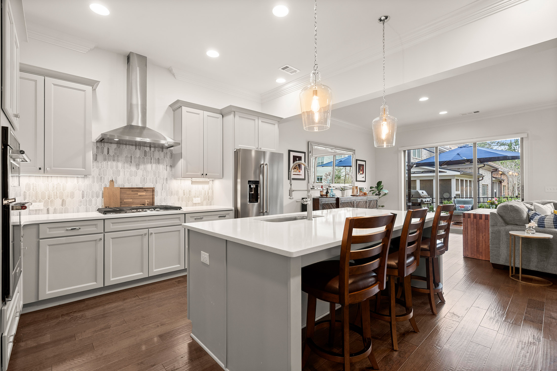 Enjoy refined living with minimal upkeep in this beautifully appointed townhome located in Duke Reserve, a private gated community known for its charming brick architecture. Situated in the heart of Peachtree Corners, the home offers easy access to The Forum, Peachtree Corners Town Center, highly rated schools, and major highways, making shopping, dining, and commuting effortless. Inside, soaring ten foot ceilings, rich hardwood floors, and abundant natural light create a bright and inviting atmosphere throughout the home. The chef’s kitchen is equipped with a full suite of high-end KitchenAid appliances and flows seamlessly into the main living space, ideal for both everyday living and entertaining. Thoughtfully designed upgrades include automated whole-home window treatments with full-width coverage for the three rear glass doors, the great room, and blackout shades in the primary suite. A newly installed high-efficiency whole-house attic fan, with dedicated controls on both the first and second floors, enhances comfort and energy efficiency. The home also features a true executive office with a devoted workspace, highlighted by a modern acoustic wood-slat accent wall that provides both sound dampening and sophisticated design. The garage is equally impressive, offering a professional-grade modular slatwall storage system designed for organized, high-capacity storage. Completing the appeal of this exceptional property, the HOA provides true low-maintenance living by covering the entire exterior of the home.