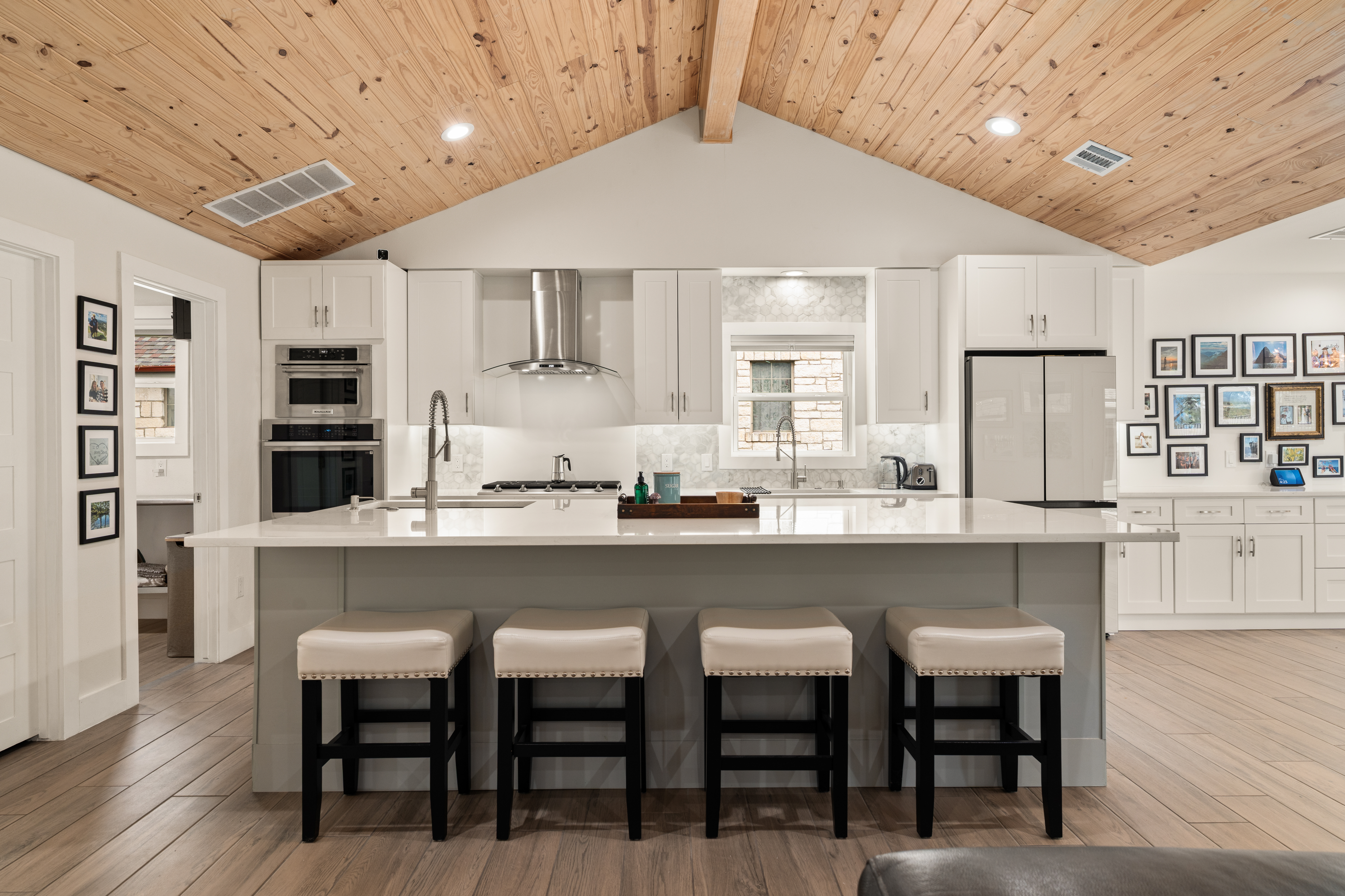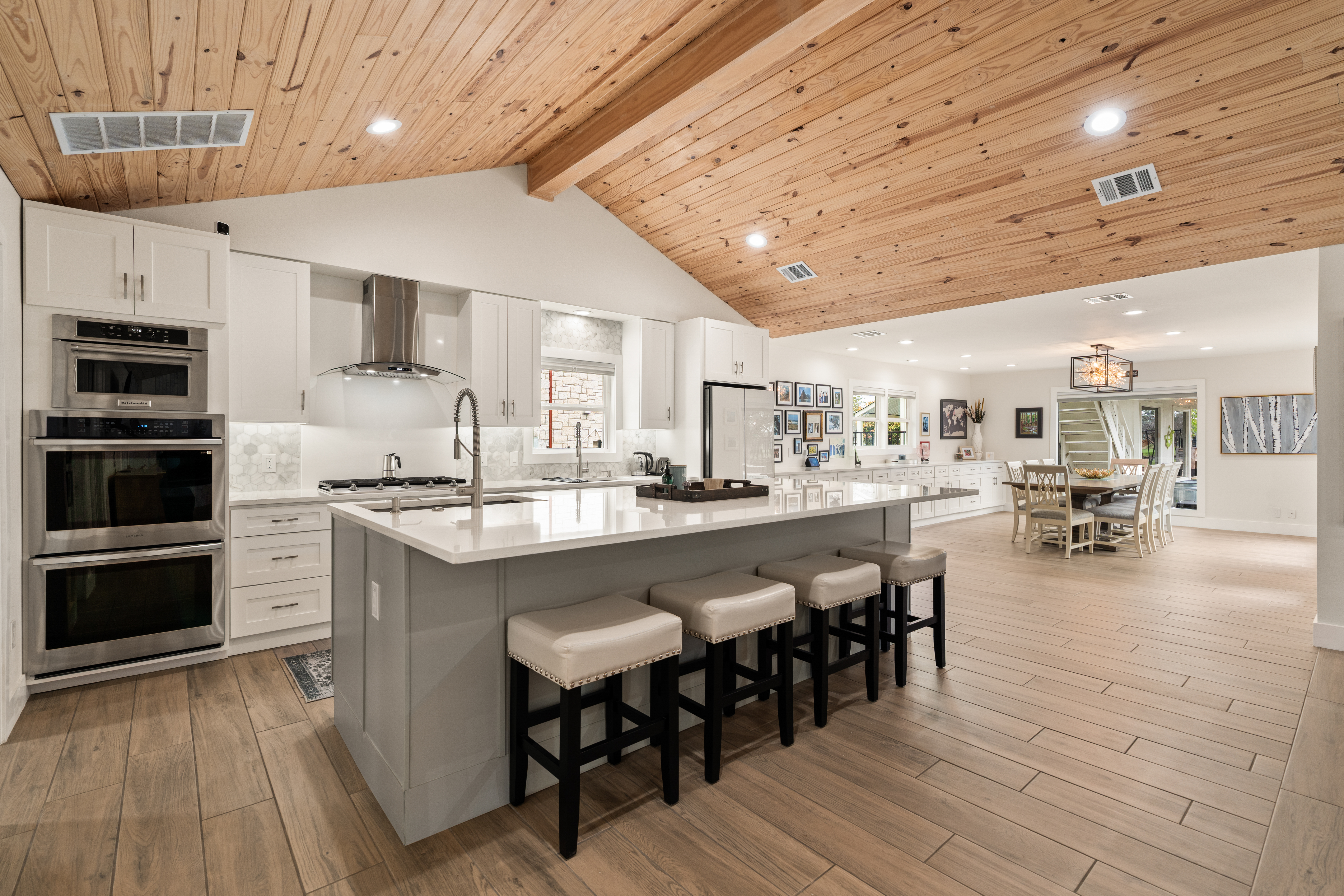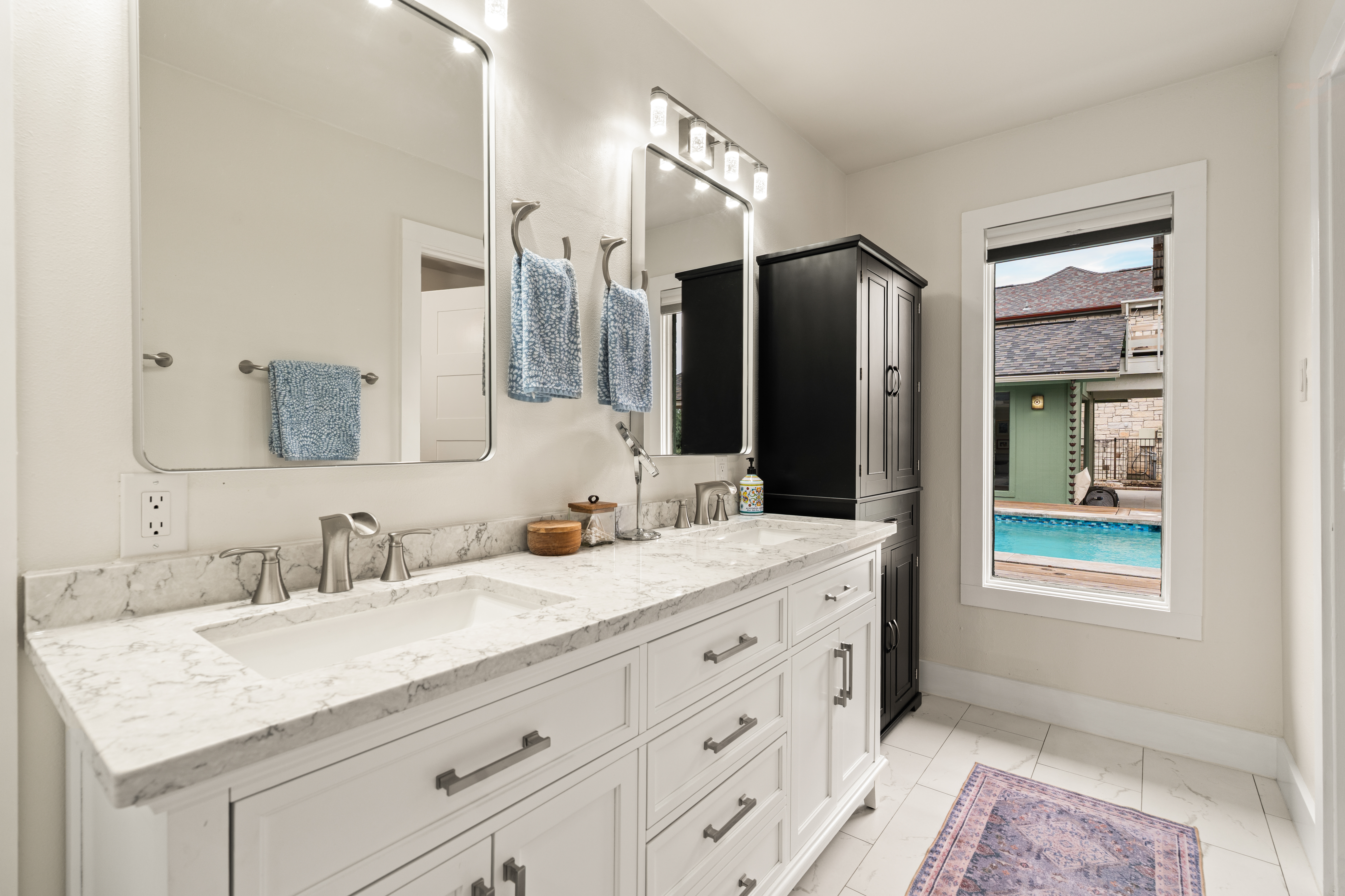 Welcome to 919 Biscayne Street, a stunningly reimagined single story home blending timeless Lakeway charm with modern luxury. Located in Lakeway and originally one of the community’s first 300 homes, this residence has been completely renovated with permits, from 2022 to 2025 while preserving its classic character. Ideally situated on the 16th hole of the Live Oak Golf Course and located within the award winning Lake Travis ISD, this property offers the perfect combination of location, lifestyle, and high end upgrades. A rare highlight is the fully independent cottage, adding an additional 337 square feet and complete with its own private entrance, kitchenette, full bathroom, laundry, dedicated HVAC, walk in closet, and a rooftop deck with sweeping golf course views. It is ideal for guests, multigenerational living, or income producing potential.The main home showcases an open concept design with vaulted wood ceilings, a designer kitchen featuring quartz countertops, custom cabinetry, premium Samsung appliances, and extensive system upgrades including a new roof (2024), HVAC, plumbing, electrical, tankless water heaters, windows, and smart home features. Step outside to your private retreat with a resort style saltwater pool, expansive wood deck, new landscaping, and architectural lighting, all backing directly to the golf course with a rare grandfathered retaining wall. This turnkey property delivers luxury, flexibility, and prime Lakeway golf course living all in one exceptional offering.