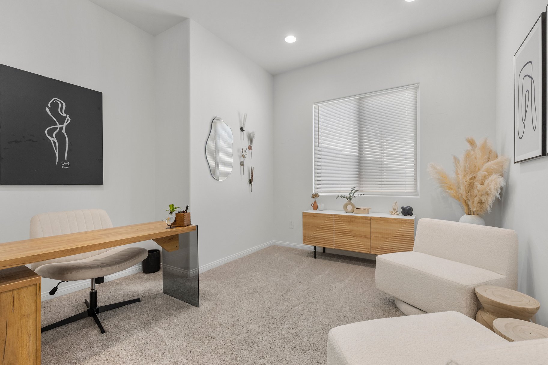 Discover refined desert living in this elegant newer single-story home, perfectly situated in a gated community in the highly desirable northwest Las Vegas area. Featuring 2 spacious bedrooms plus a stylish glass-enclosed office that can easily function as a guest bedroom, this thoughtfully designed residence offers both comfort and flexibility. The open-concept layout is enhanced by a modern kitchen showcasing sleek stainless steel appliances, beautiful quartz countertops, double ovens, and ample cabinetry, ideal for both everyday living and entertaining. Natural light fills the living spaces, creating a warm and inviting atmosphere throughout. Enjoy the convenience of being just minutes from scenic Mount Charleston, premier golf courses, and outdoor recreation, while still close to shopping, dining, and city amenities. This home blends contemporary style with low-maintenance living in a peaceful, secure setting, perfect for those seeking both tranquility and accessibility.