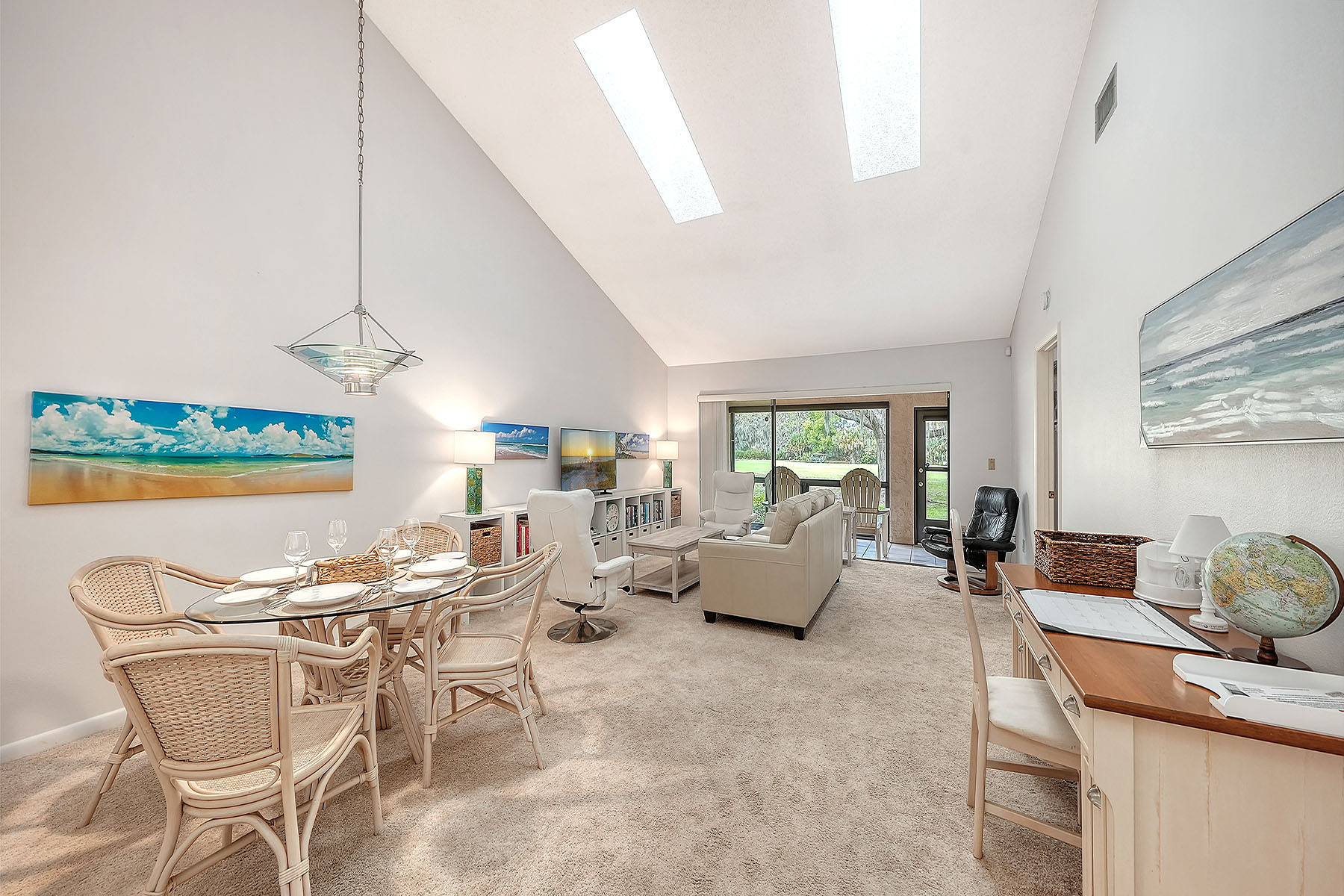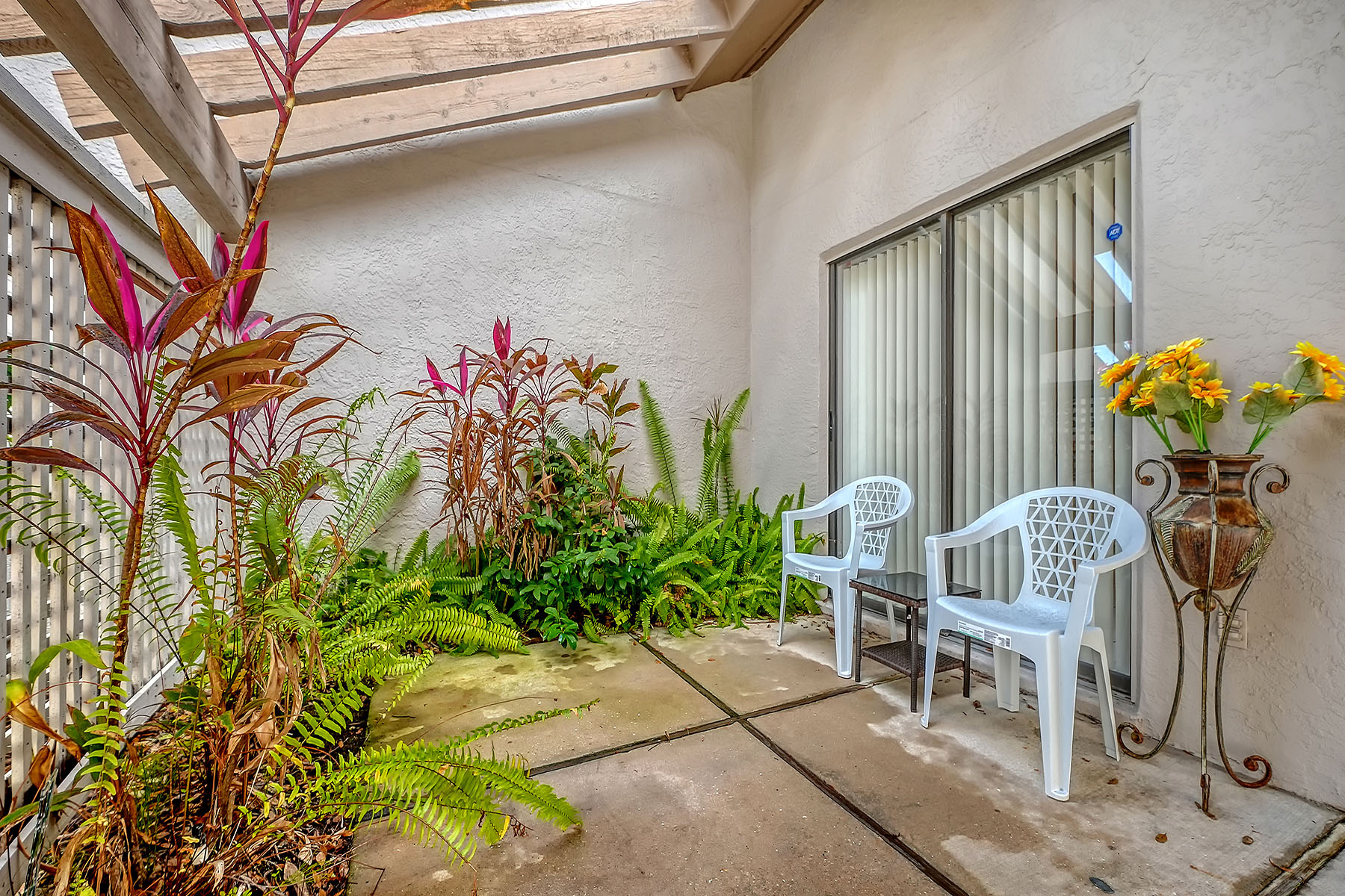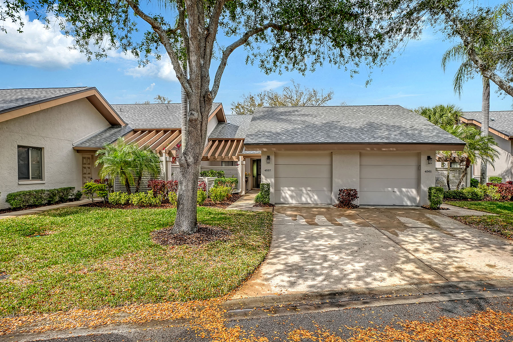 Spectacular golf course views, partially furnished and priced to sell! Easy living in this spotless, maintenance-free one-story villa with natural light and tranquil golf views in The Meadows, a park-like oasis in a phenomenal location. A canopied street and charming pergola welcome you home. Inside, you will love the cathedral ceilings, new skylights that bathe the great room with soft light, and a relaxing Florida room overlooking the golf course with a preserve in the distance. No neighbors in sight. The kitchen features stainless steel appliances, white shaker cabinetry, Mykonos White quartz countertops and direct access to the private grilling patio. The primary suite pampers you with a walk-in closet and a gorgeous zero-entry Roman shower with mosaic flooring. All just 100 feet to the heated pool, 1.5 miles to Whole Foods and Trader Joe's and convenient to all The Meadows has to offer. Set on 1,600 park-like acres, The Meadows is a resort-style community only 15 minutes from downtown Sarasota. Residents enjoy 14 miles of scenic biking and walking trails, and, for a low resident fee, a new fitness center, Junior Olympic-size pool, pickleball courts, golf courses and a top Har-Tru tennis complex. Plus, close to the country's award-winning beaches, remarkable arts and culture, and just two miles from Nathan Benderson Park, the new Mote SEA Aquarium, the future Sarasota Orchestra and The Mall at University Town Center, a world-class fashion and dining destination. A fabulous Florida lifestyle awaits. With 2024 shingle roof and above flood plain in zone X.