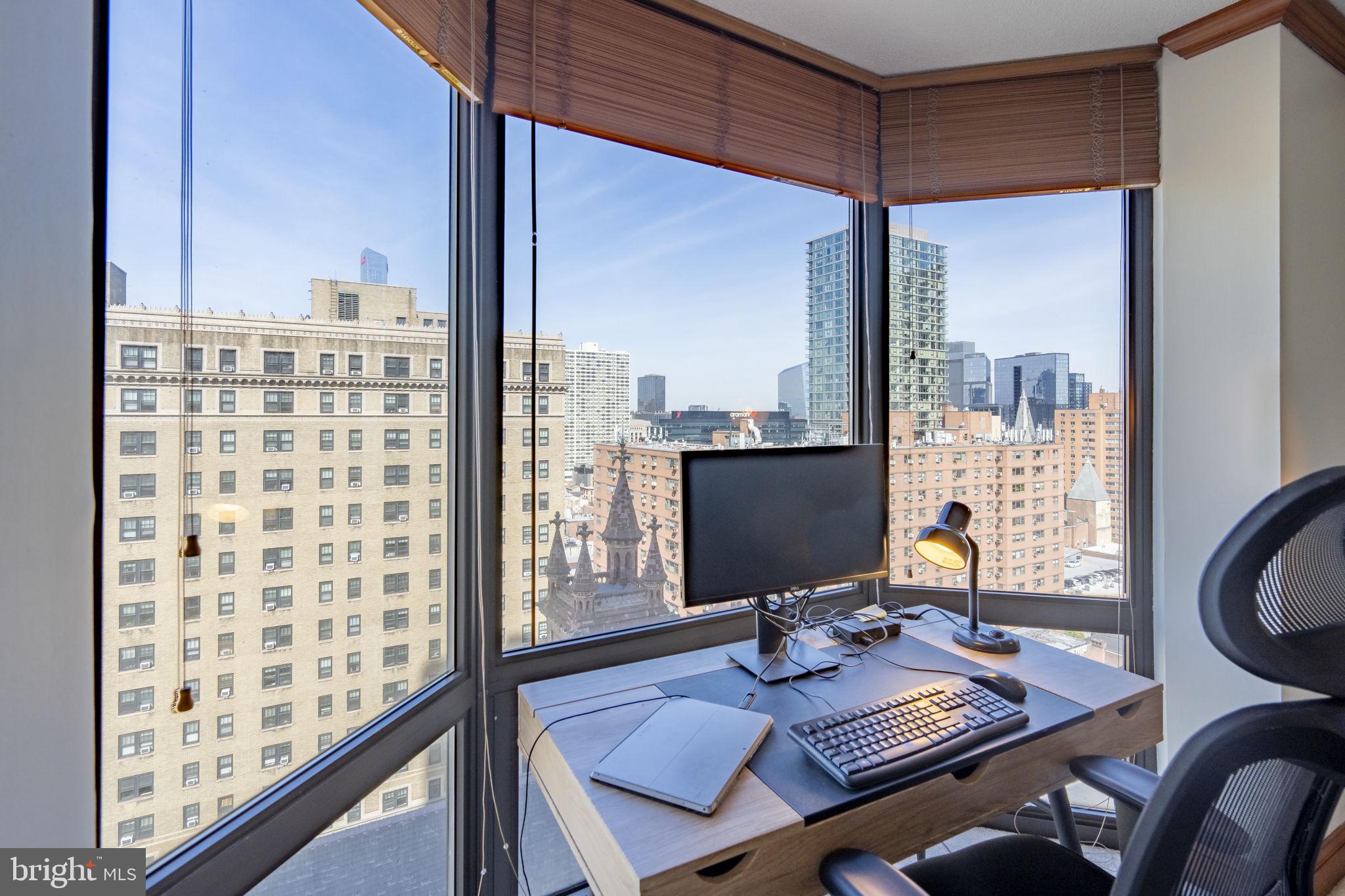 Located in The Wanamaker House, this well-maintained one bedroom, one bathroom home offers beautiful natural light and sweeping city views through floor to ceiling bay windows in both the living room and bedroom. The layout includes an entry with coat closet, open living and dining area with hardwood floors, efficient kitchen, tiled bath, and a generously sized bedroom with good closet space. Laundry is conveniently located on the same floor. Just two blocks from Rittenhouse Square and convenient to University of Pennsylvania, Children's Hospital of Philadelphia, Drexel University, 30th Street Station, I76, the Schuylkill River Trail, Trader Joe's and Giant. Wanamaker House is a full service building with 24 hour door person and a recently updated rooftop amenities floor featuring pool, gym, sauna, lounge, and business center, plus renovated lobby and hallways. Available June 1. Landlord is a licensed Realtor.