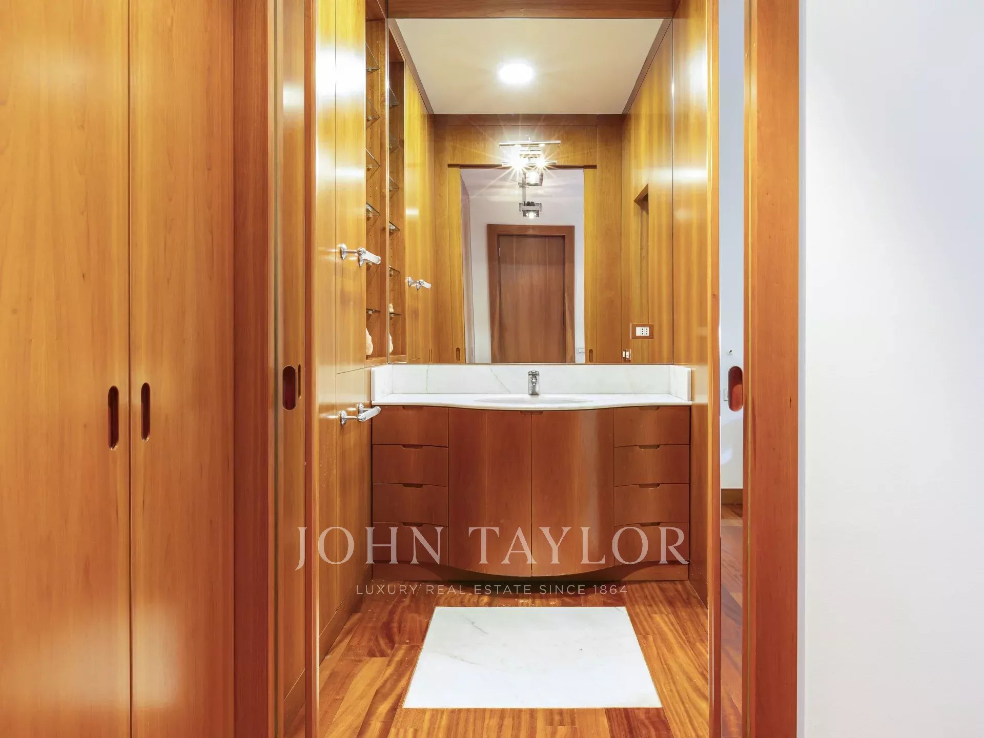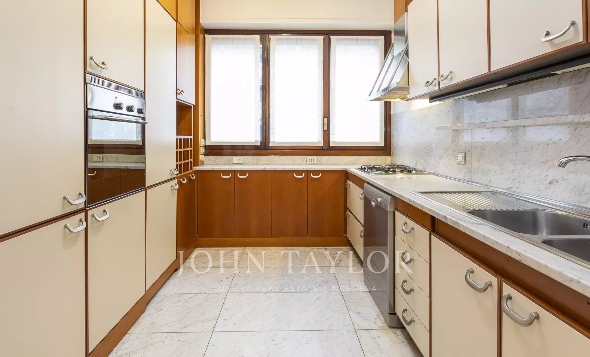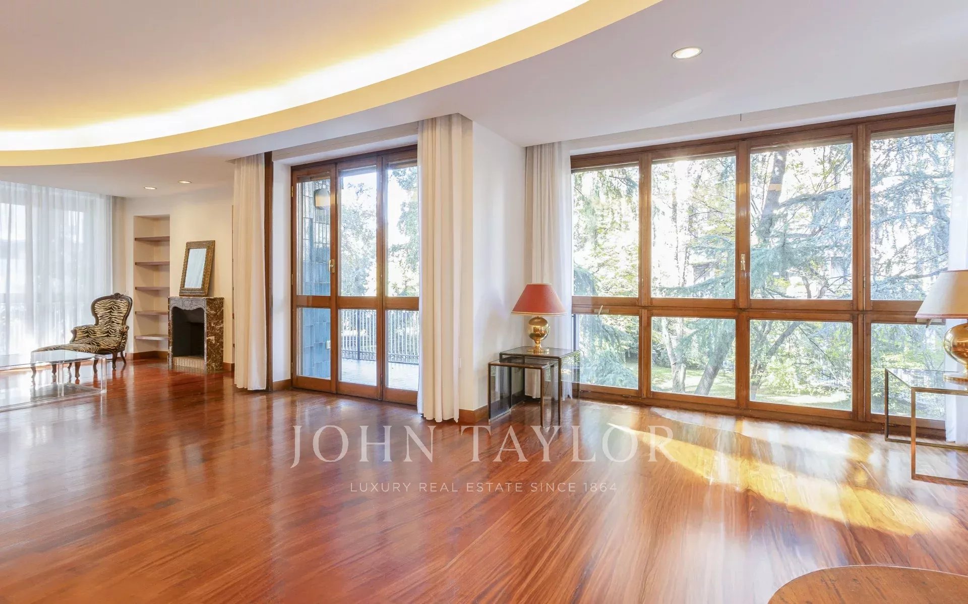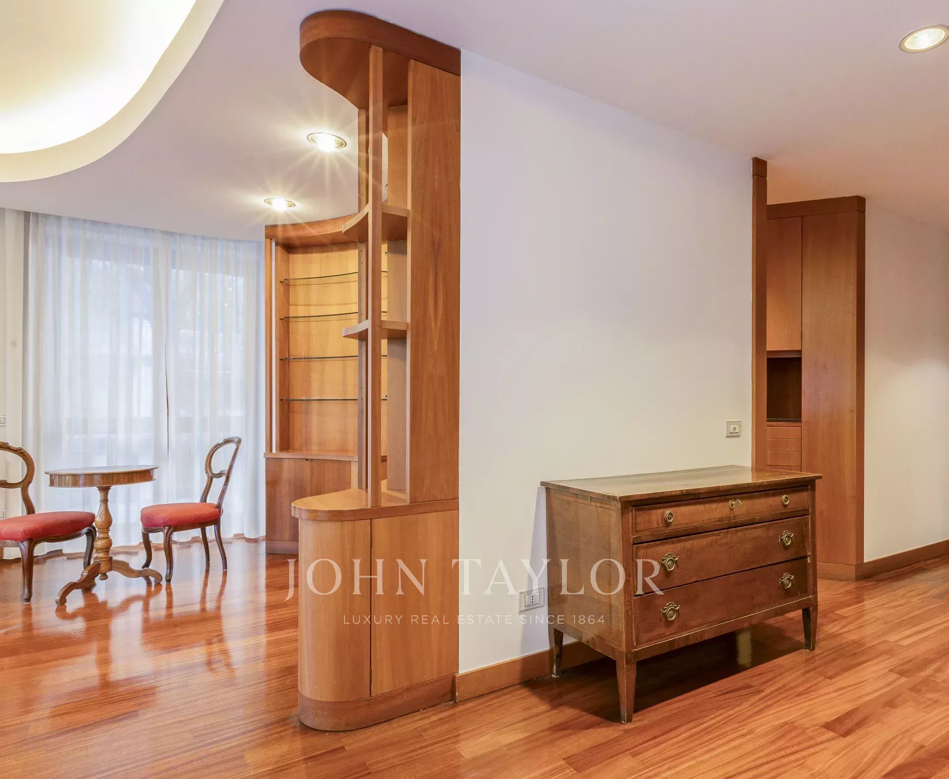 In an exclusive context with a large condominium park and concierge service all day, an elegant 220 sqm apartment, very bright and quiet with splendid exposure. Excellently arranged residence with large surrounding terraces consisting of: large entrance hall, a triple living room, dining room, large eat-in kitchen, three bright bedrooms and large study, triple bathrooms and storage closets. Partially furnished with precious custom-made furniture € 4,900,000 The property includes the possibility of a large garage.