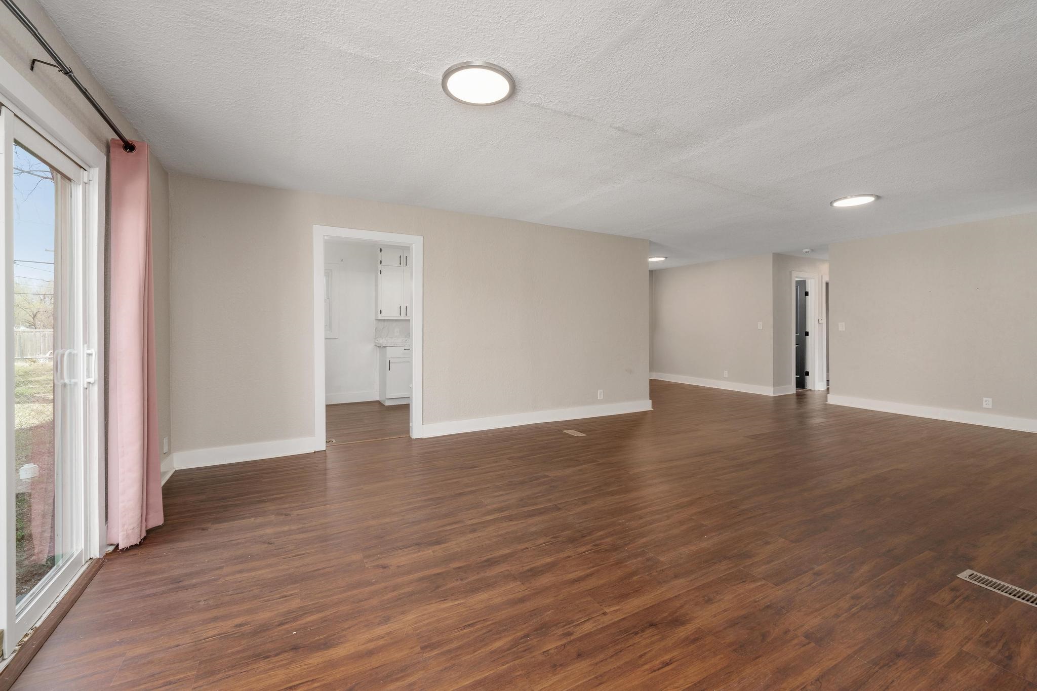 Bright, open, and full of natural light - this 4-bedroom, 2.5-bath home in Derby offers comfortable one-level living with a layout that feels both functional and inviting. The spacious living room serves as the heart of the home, featuring large sliding glass doors that lead directly to the backyard, creating an easy indoor-outdoor connection. The open flow continues into the kitchen and dining areas, where you'll find durable luxury vinyl flooring that extends through the main living spaces, bathrooms, and one bedroom. The remaining bedrooms offer the comfort of carpet for a cozy feel. The primary suite is a standout, complete with a generously sized closet and an oversized shower that adds a touch of everyday luxury. A dedicated main-floor laundry area adds convenience and practicality. Step outside to a fully fenced backyard with plenty of room to enjoy. Whether you're relaxing around the firepit, gardening, or storing tools in the outbuilding, this outdoor space is ready for it all. Located on a .20-acre lot and within the highly sought-after Derby school district, this home also offers close proximity to local schools, making daily routines even easier. A great combination of space, natural light, and location - this one is ready to welcome you home!