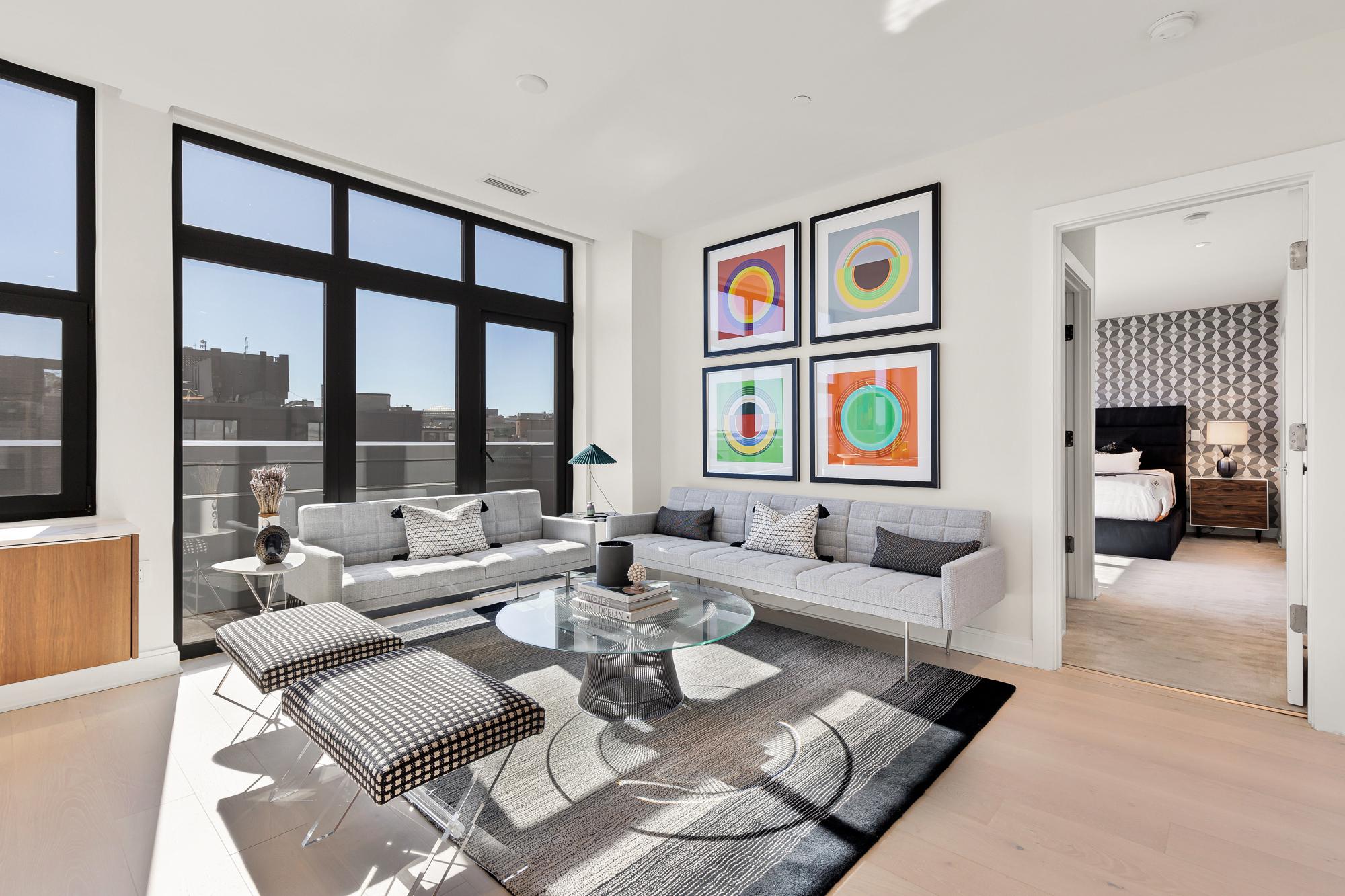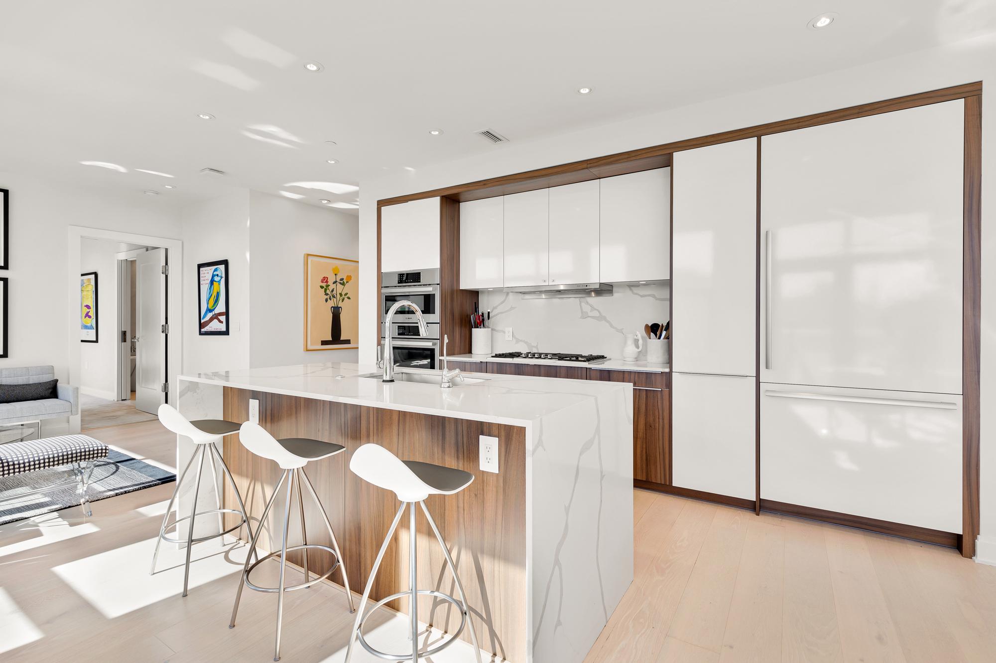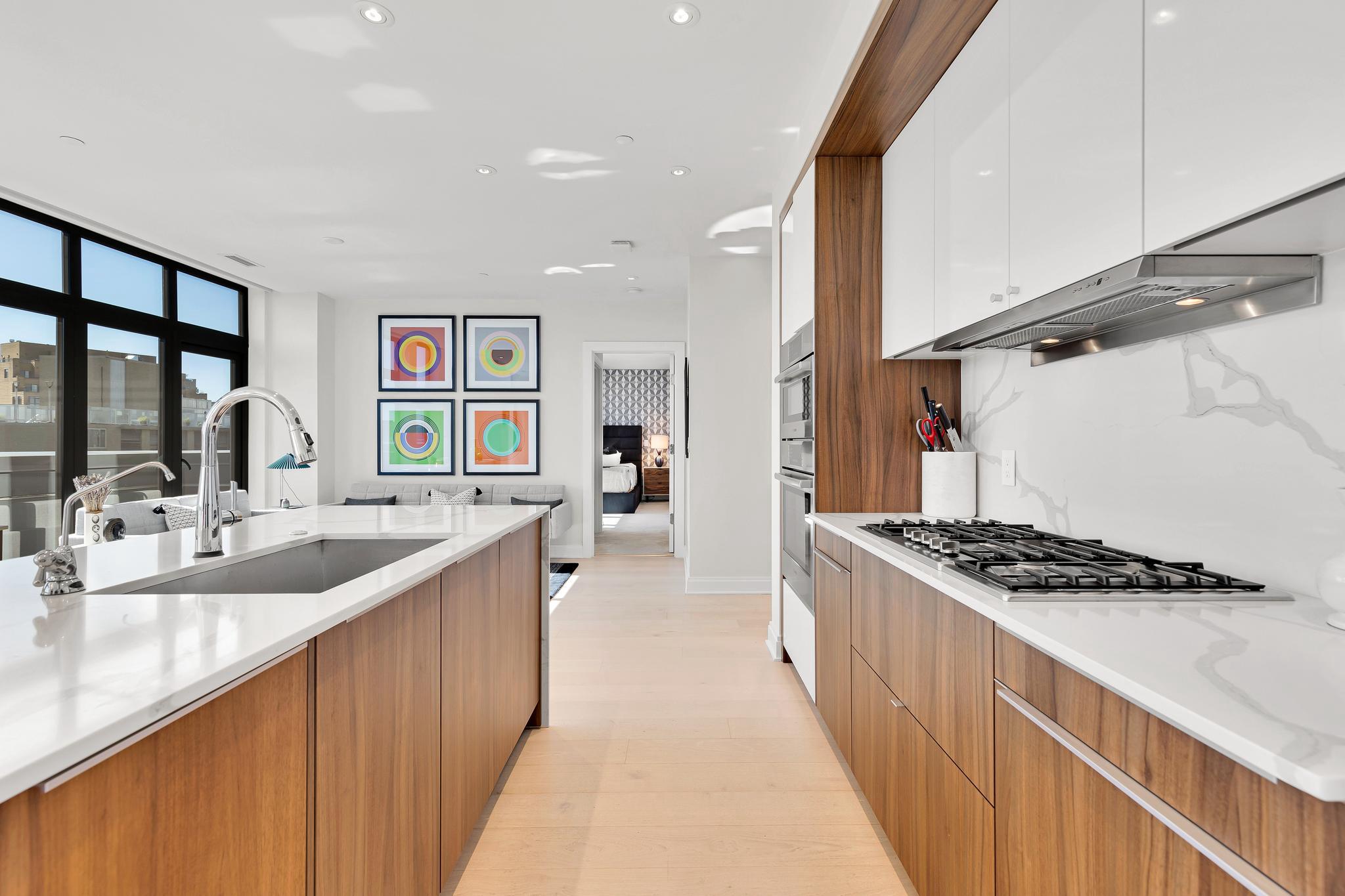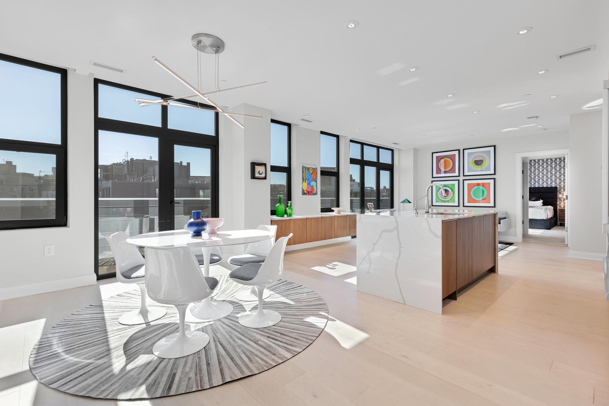 Your City. Your Skyline. Your Penthouse. Breathtaking sunlight in open floor plan on 2 full living levels with extensive outdoor space and outdoor kitchen. Perfect for entertaining and enjoying the summer!Perched above Logan Circle, this two-level penthouse at Elysium Logan Condominium offers a rare balance of design, light, and elevation. A private elevator opens directly into the residence, setting a tone of quiet exclusivity. Concierge service and a secured building equipped with the BUTTERFLY security system.The main level unfolds in natural light, with a wall of windows framing the city beyond. An open living and dining space flows effortlessly into a kitchen well appointed with custom Poggenpohl cabinetry, Thermador and Bosch appliances, reverse osmosis water infusion system and a sculptural waterfall island in Calcutta quartz. There is a separate office area with custom cabinetry and a coffee bar. Two private balconies extend the living experience.The primary suite is a study in calm and restraint, featuring dual oversized walk-in closets with closet organizers, blackout shades, and a spa-like bath finished with Waterworks fixtures and Porcelanosa tile. A second bedroom suite with private balcony can function as a flexible office and includes a built-in Murphy bed and custom cabinetry.Upstairs, a light-filled great room opens to a private rooftop terrace. Views stretch from the Washington Monument to the Washington National Cathedral, creating a striking backdrop for both quiet moments and elevated entertaining. An outdoor kitchen with a gas grill, sink and cooking area complete the setting.Exclusive Penthouse details include Lutron lighting, electronic shades, a full size laundry room, and private garage parking. Concierge service and a pet-friendly environment offer an easy lifestyle. All furnishings convey with sale. Exclusions are several rental pieces of art identified by tags. Deeded garage parking.