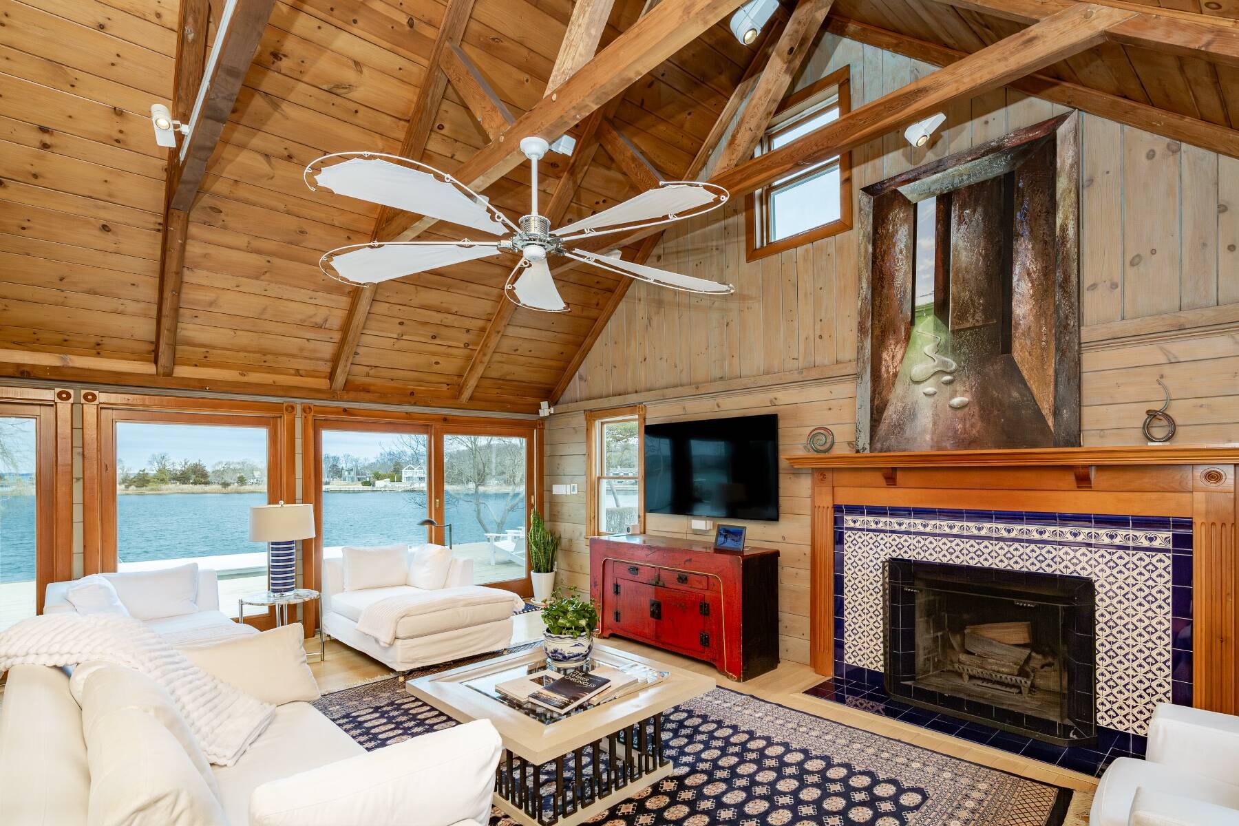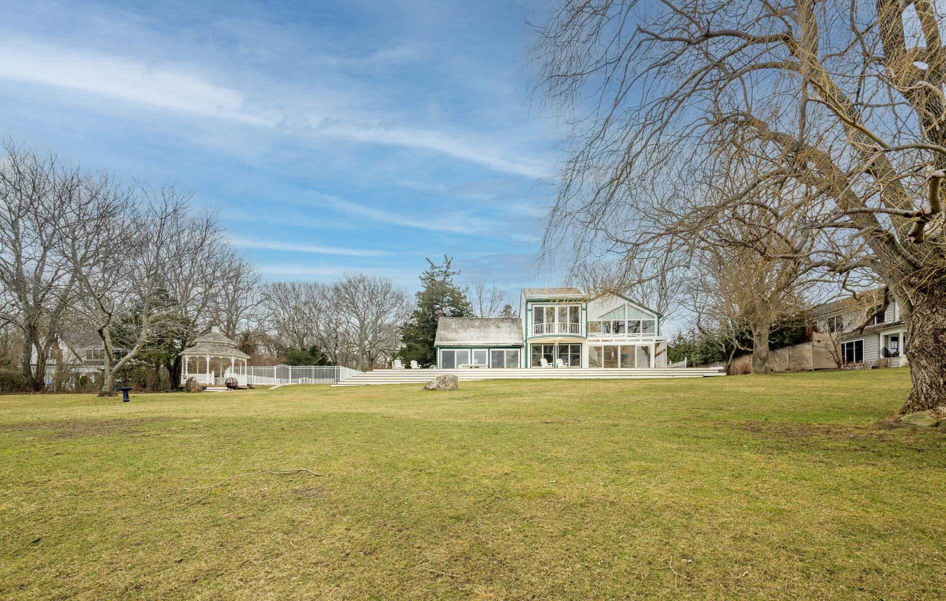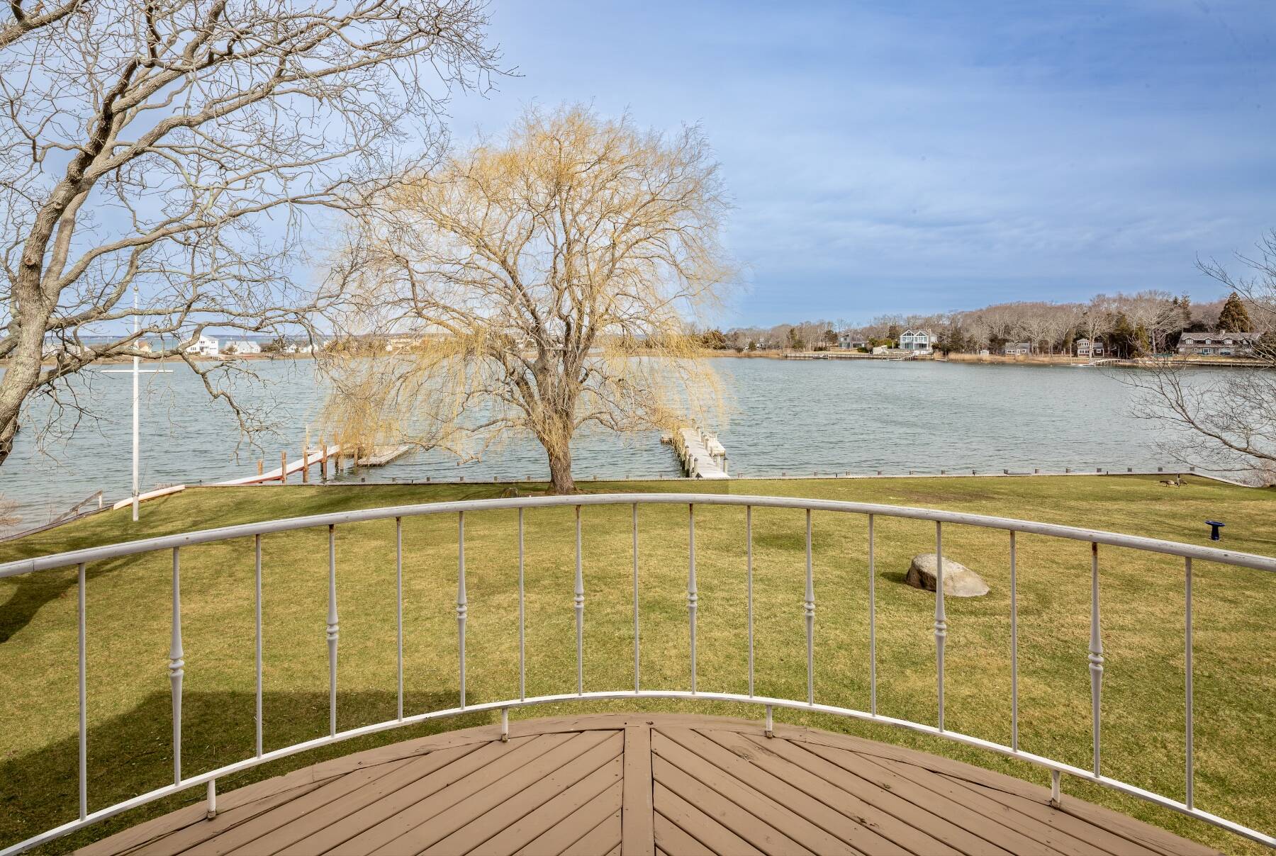 This one has it all! Spectacular Southampton waterfront offers heated pool with spa and rolling manicured lawn leading to large private dock. Situated on 1.2 acres of privacy, home includes 5 bedrooms, 4 baths, living room with amazing view, fireplace and exquisite art work, a true chef's kitchen with top of the line commercial appliances, incredible glass enclosed dining, extensive decking, central air, well equipped gym, gazebo and garage. Primary suite has it all: water views, balcony, additional private gym, sauna, jacuzzi, wet bar, private bath, office and walk-in closet. There's even an electric vehicle (EV) charger in the driveway! Sought after community offers private beach, tennis courts, basketball and baseball diamond. Bring your boat, kayaks are waiting. [[Rental Registration # RP170421]] EH RR #: RP170421