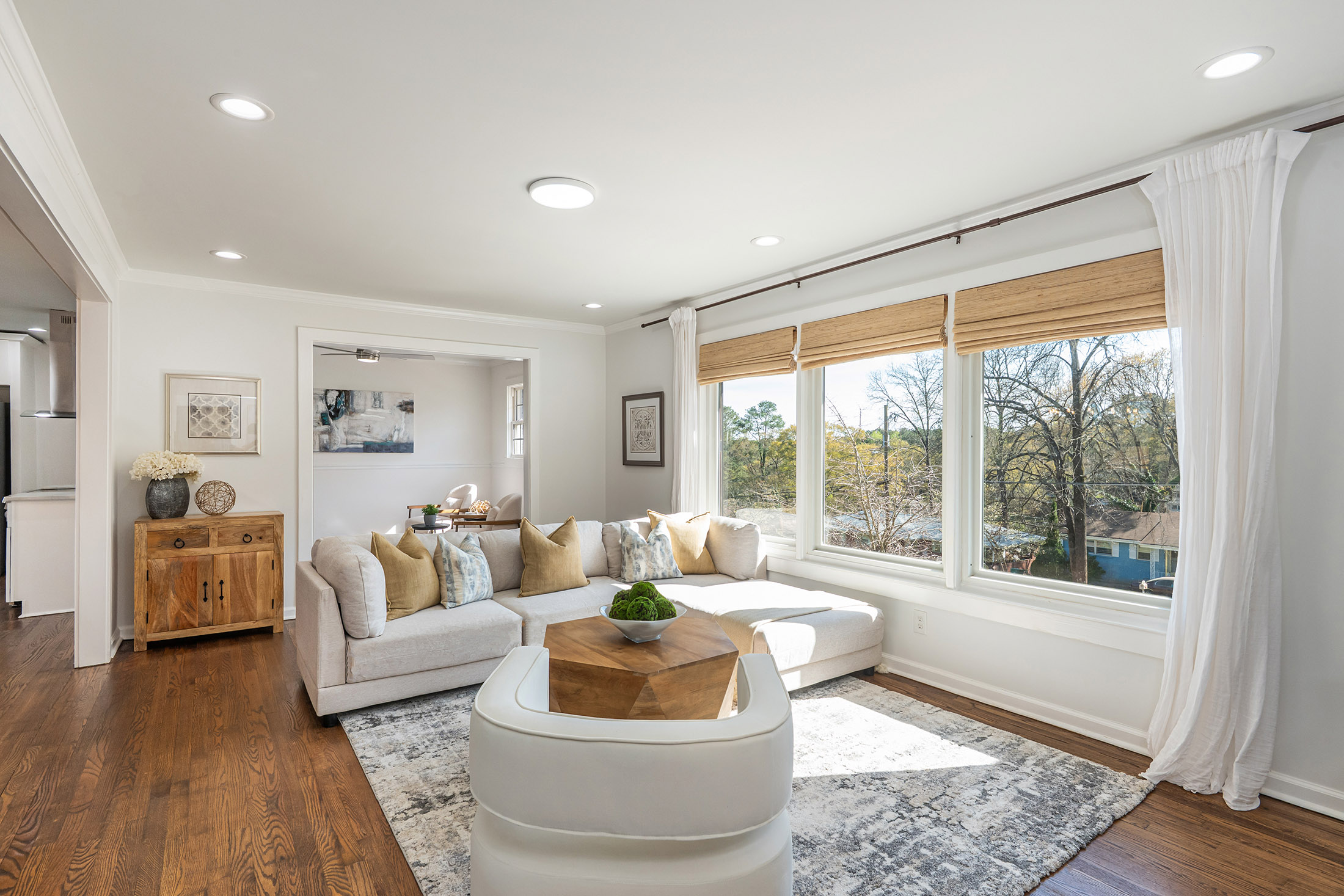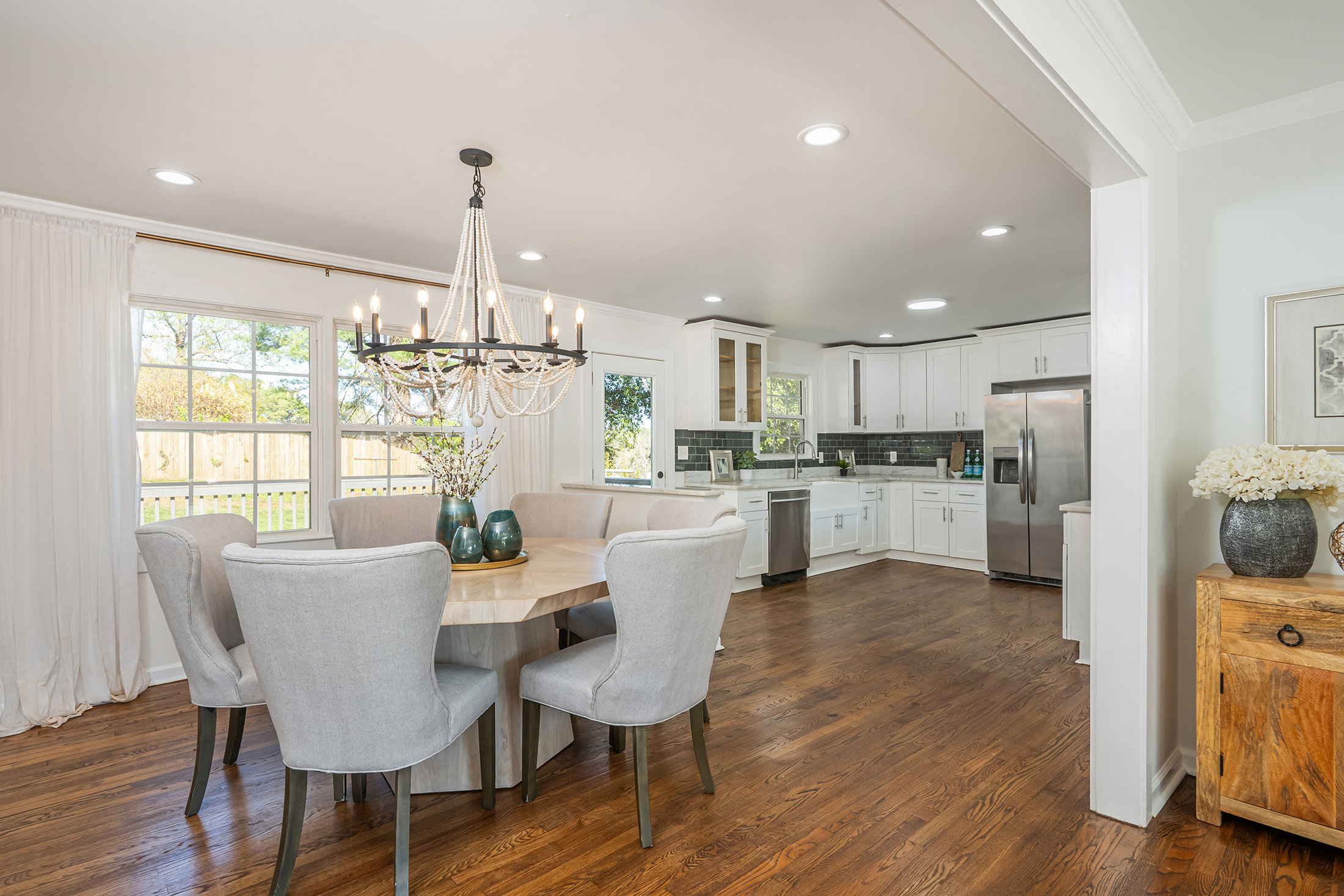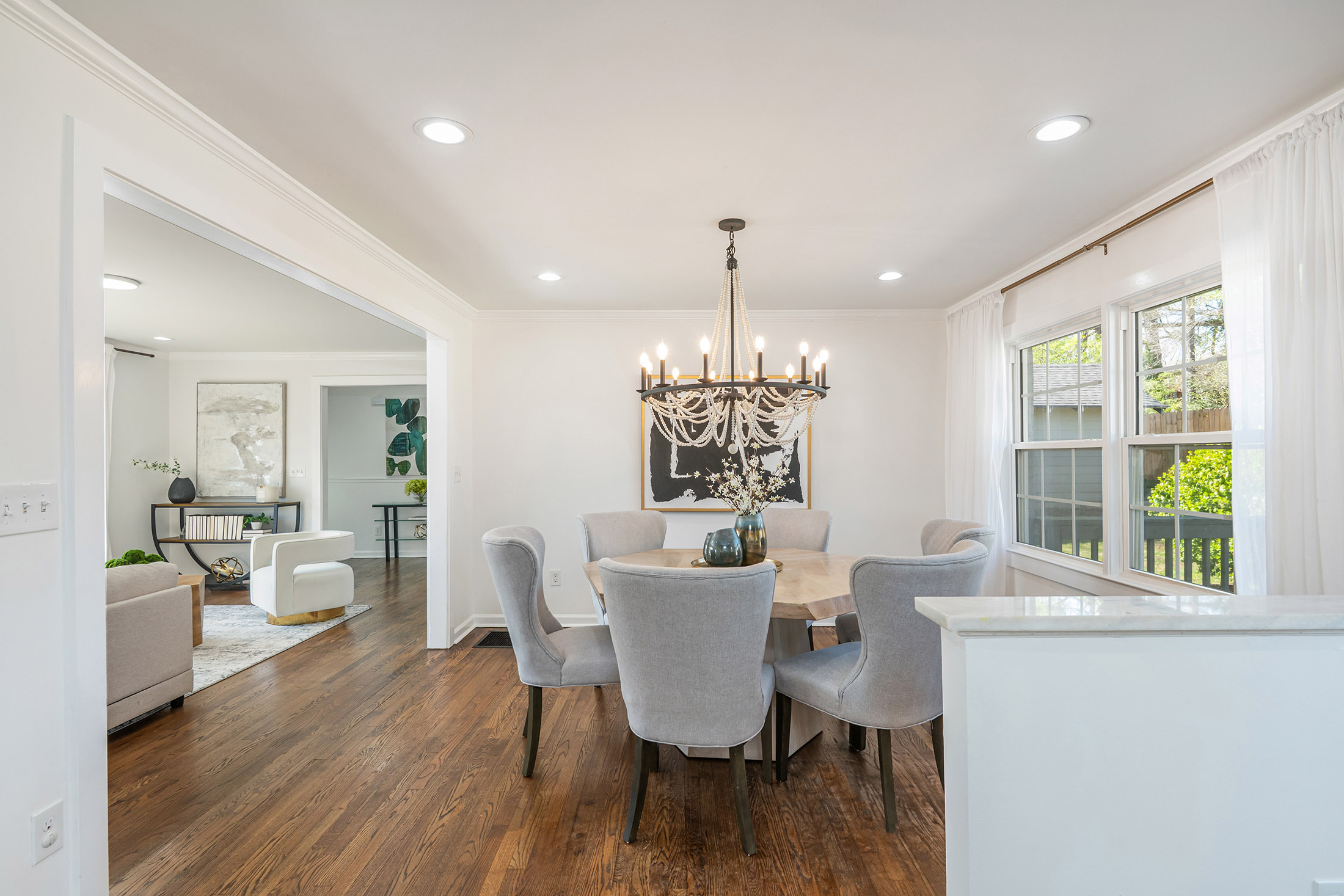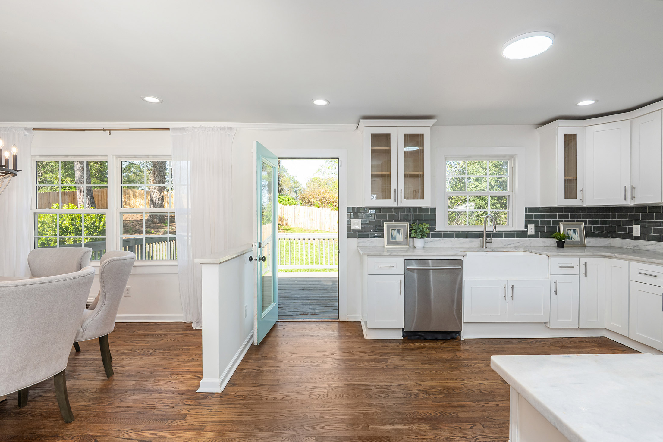 Incredible opportunity! Welcome home to this thoughtfully renovated three-bedroom, two-bath ranch offering the perfect blend of modern updates and timeless charm, presenting a rare opportunity for homeowners and investors alike. Step inside to discover gleaming, newly refinished hardwood floors and a bright, open-concept layout enhanced by custom lighting, ideal for both everyday living and entertaining. The chef-inspired kitchen seamlessly connects to the dining and living areas, creating an inviting space for gathering with family and friends. The spacious primary suite serves as a private retreat, featuring a generous closet, direct exterior access to a charming side porch, and a spa-like ensuite bath complete with double vessel sinks and a beautifully tiled walk-in shower. Two additional bedrooms offer comfortable accommodations and share a fully renovated secondary bath with stylish finishes. Enjoy outdoor living in the expansive backyard, highlighted by a brand-new deck and brandnew wooden privacy fence that is perfect for relaxing evenings, weekend grilling, or hosting guests. A double driveway provides ample off-street parking (garage and covered carport), while the basement offers excellent storage space. Recent upgrades include a newer HVAC system, newer appliances, newer washer and dryer, brand new gutters, brand new water heater, brand new roof, new fully fenced-in back yard, and the newly constructed deck, providing peace of mind for years to come. Ideally located just minutes from shopping, dining, and major highways, including I-20 and 285, this home combines convenience, comfort, and lasting value. Do not miss this exceptional opportunity.