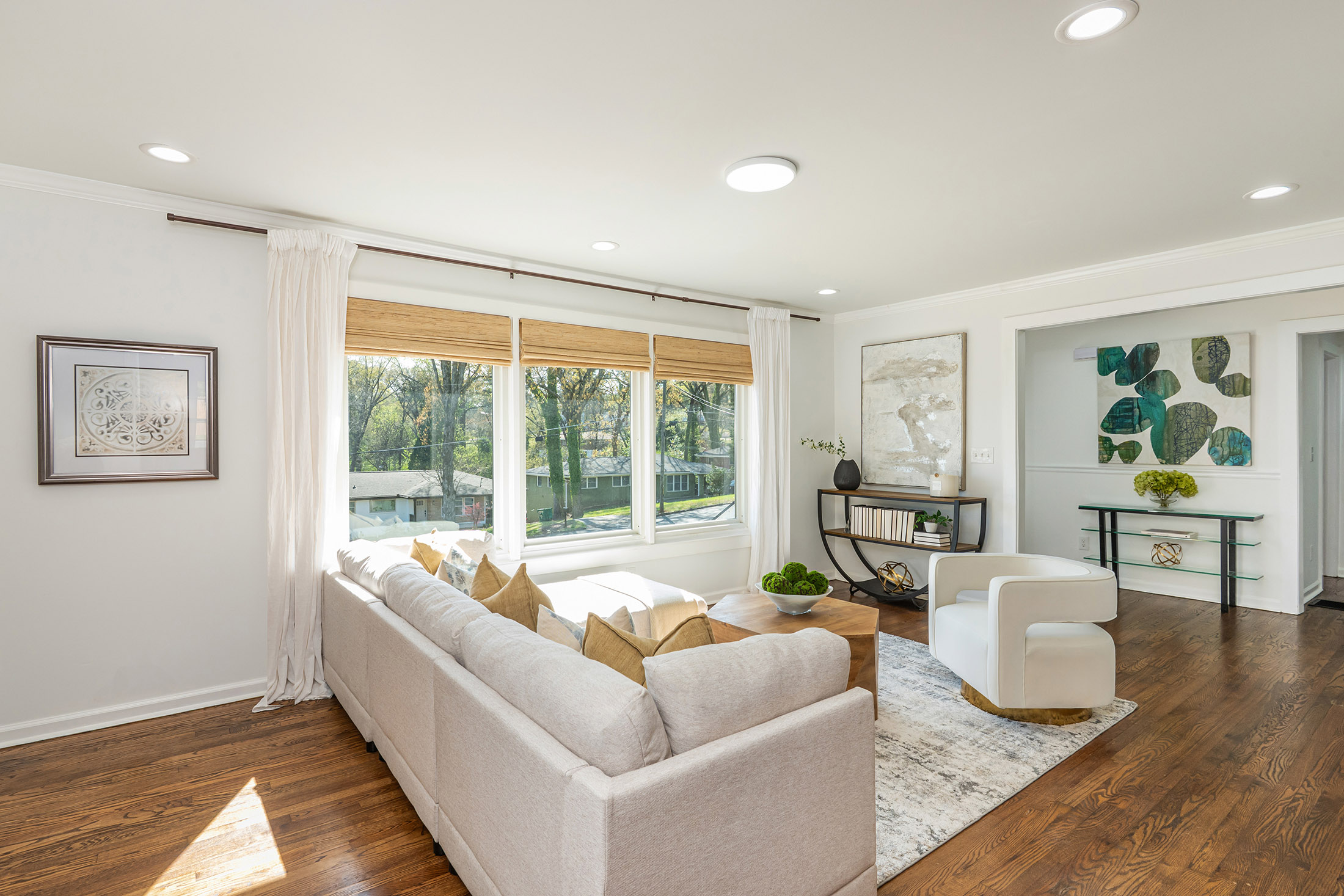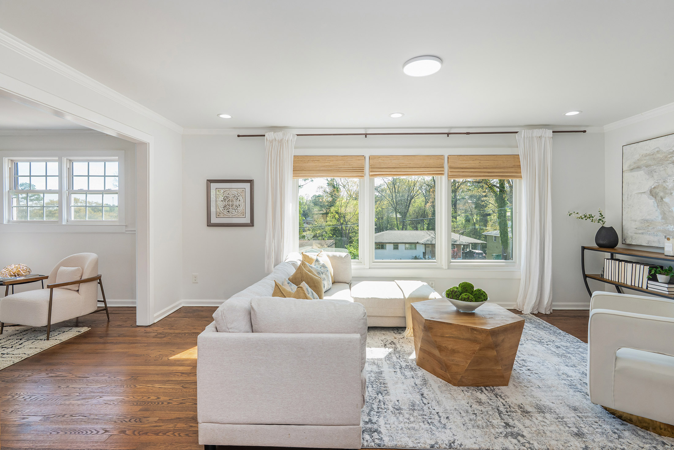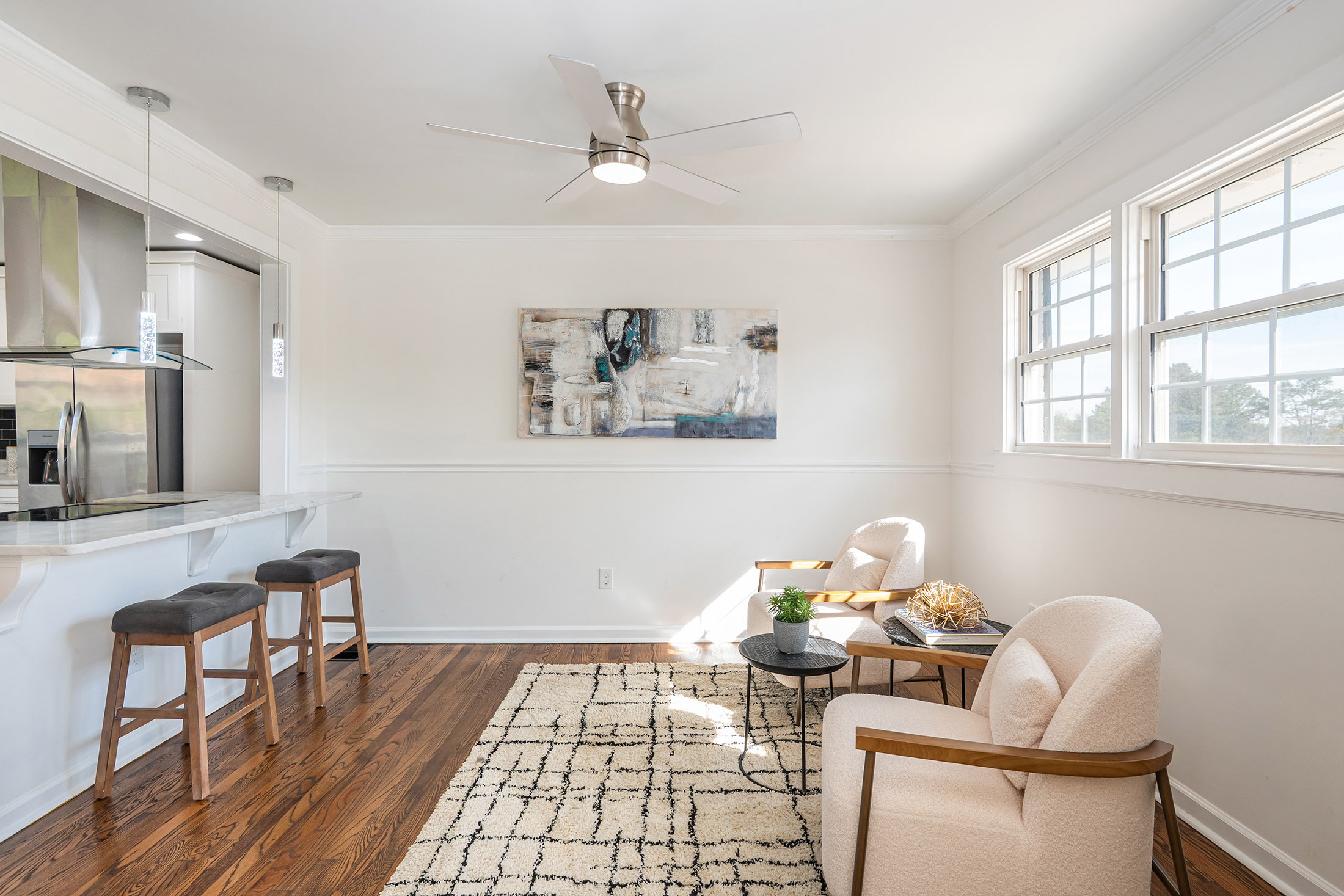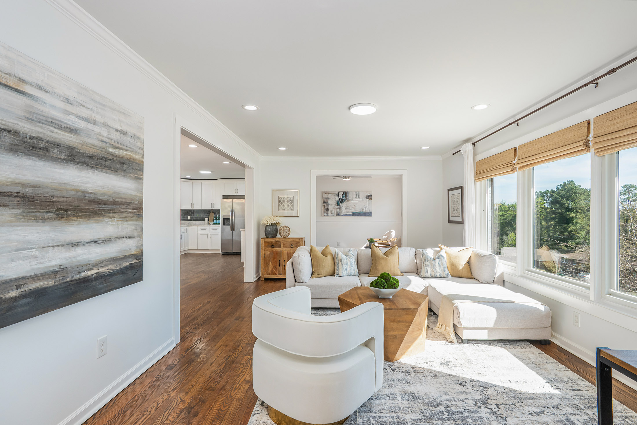 Incredible opportunity! Welcome home to this thoughtfully renovated three-bedroom, two-bath ranch offering the perfect blend of modern updates and timeless charm, presenting a rare opportunity for homeowners and investors alike. Step inside to discover gleaming, newly refinished hardwood floors and a bright, open-concept layout enhanced by custom lighting, ideal for both everyday living and entertaining. The chef-inspired kitchen seamlessly connects to the dining and living areas, creating an inviting space for gathering with family and friends. The spacious primary suite serves as a private retreat, featuring a generous closet, direct exterior access to a charming side porch, and a spa-like ensuite bath complete with double vessel sinks and a beautifully tiled walk-in shower. Two additional bedrooms offer comfortable accommodations and share a fully renovated secondary bath with stylish finishes. Enjoy outdoor living in the expansive backyard, highlighted by a brand-new deck and brandnew wooden privacy fence that is perfect for relaxing evenings, weekend grilling, or hosting guests. A double driveway provides ample off-street parking (garage and covered carport), while the basement offers excellent storage space. Recent upgrades include a newer HVAC system, newer appliances, newer washer and dryer, brand new gutters, brand new water heater, brand new roof, new fully fenced-in back yard, and the newly constructed deck, providing peace of mind for years to come. Ideally located just minutes from shopping, dining, and major highways, including I-20 and 285, this home combines convenience, comfort, and lasting value. Do not miss this exceptional opportunity.