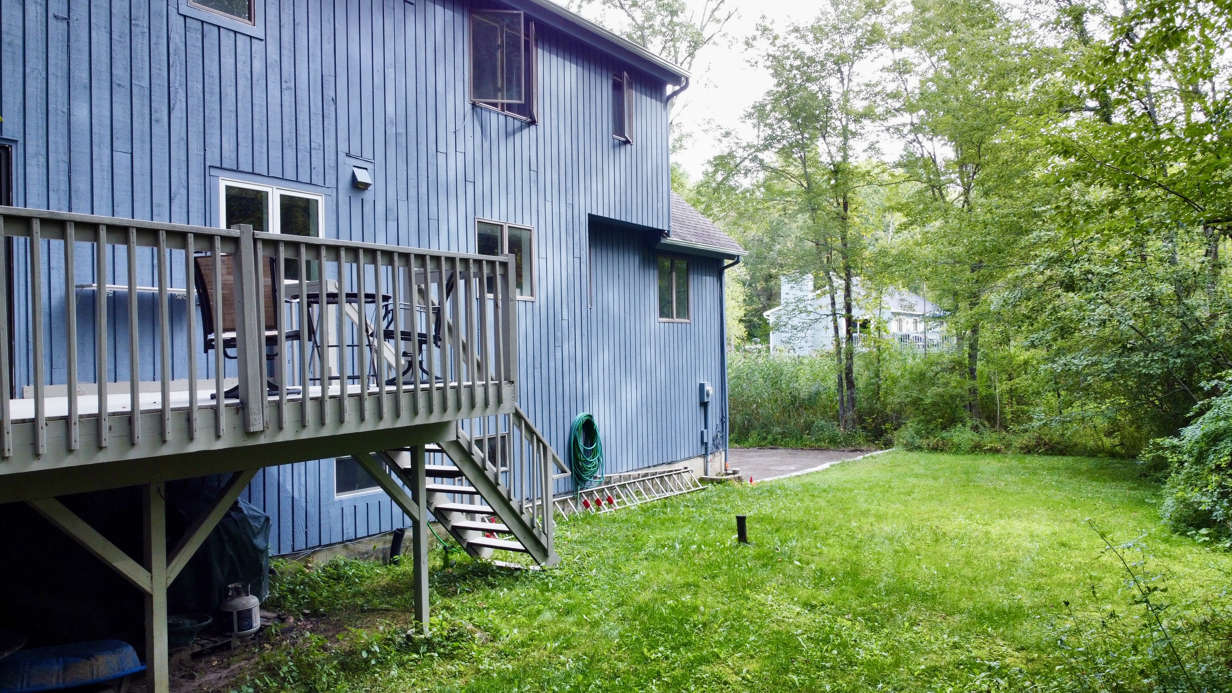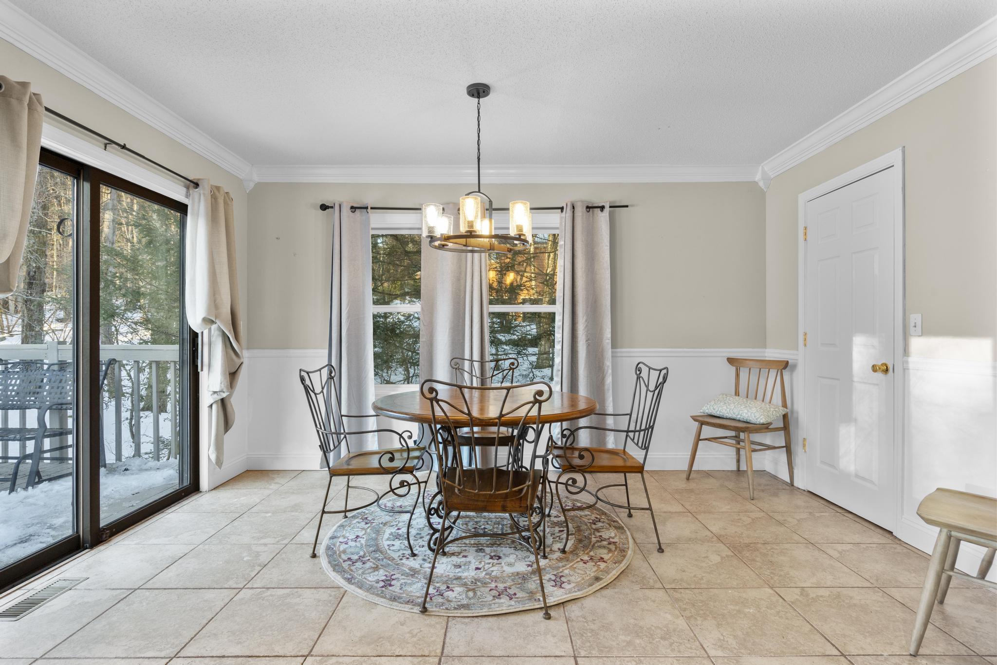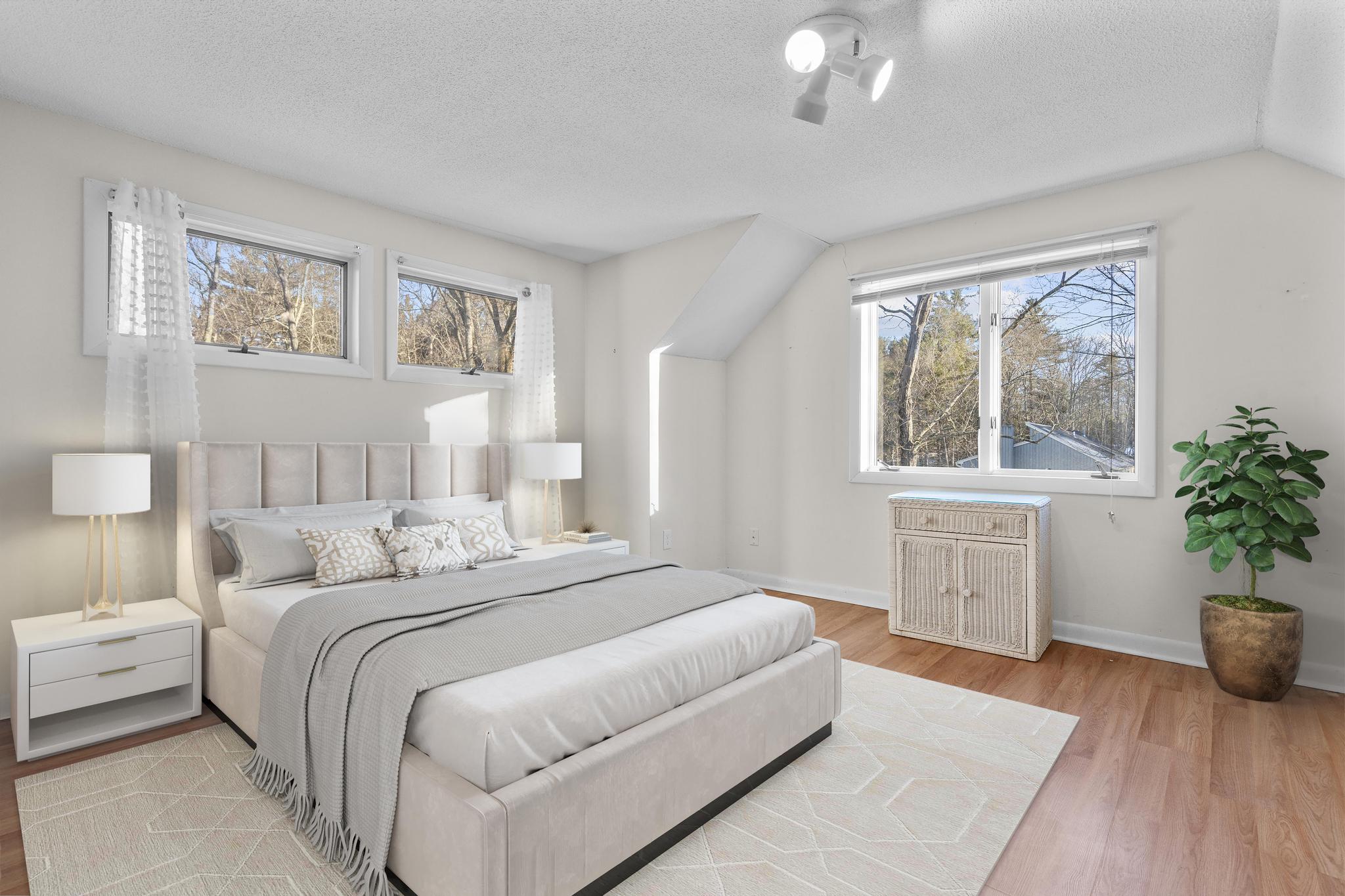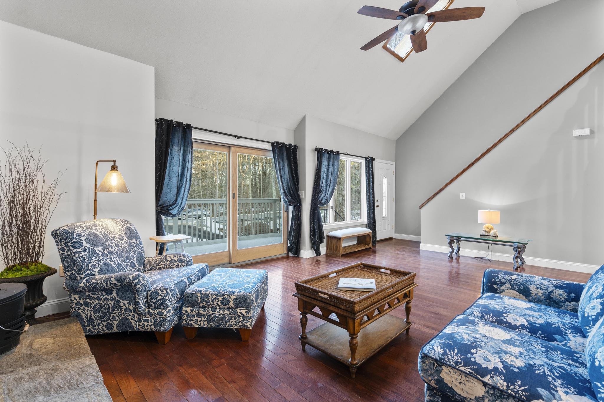 Set on a desirable second-tier lot within the Woodridge Lake community, this four-bedroom, two-and-a-half-bath residence offers peaceful lake views and a private wooded backdrop. The home's main level is thoughtfully designed for comfortable living and effortless entertaining, featuring a spacious primary suite with a walk-in closet and ensuite bath. The light-filled living room is the centerpiece of the home, with vaulted ceilings, skylights, and sliding doors that open to the front deck-an ideal setting to take in tranquil lake views. A wood-burning fireplace adds warmth and character to the space. The living area flows seamlessly into an expansive kitchen with stainless steel appliances, a large island with breakfast bar seating, and generous cabinetry. Just beyond, the dining area provides direct access to the rear deck, creating a natural extension of the living space for indoor-outdoor gatherings. The upper level offers additional bedrooms with flexibility for guests, family, or a home office. Outdoor spaces include both a front deck overlooking the lake and a private backyard with a second deck surrounded by mature trees. Recent improvements include a newly paved asphalt driveway, updated stonework, and new garage doors, enhancing both curb appeal and functionality.
