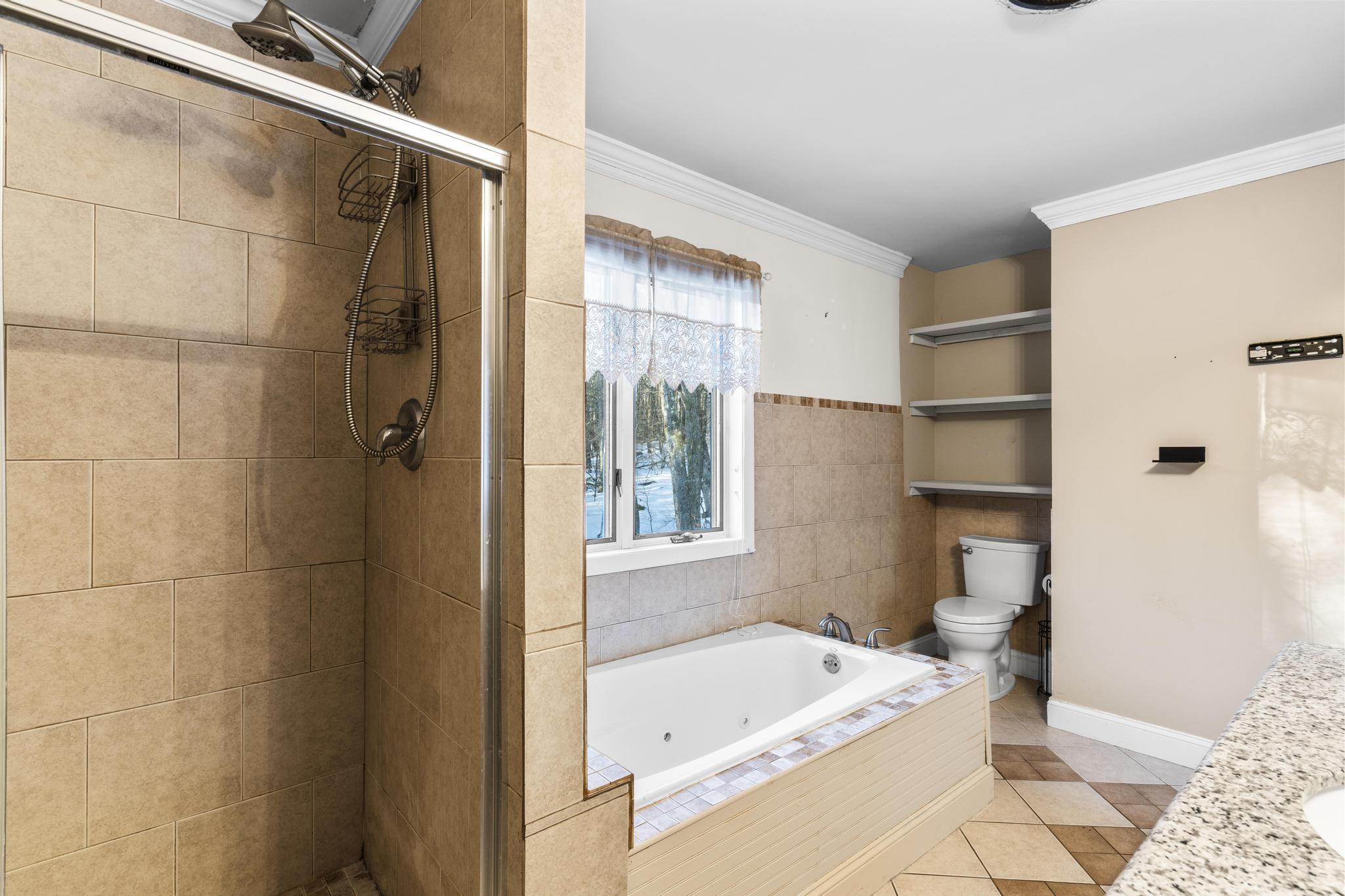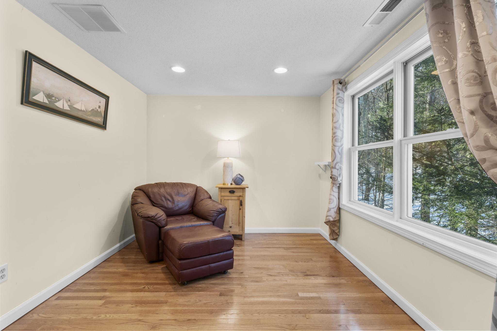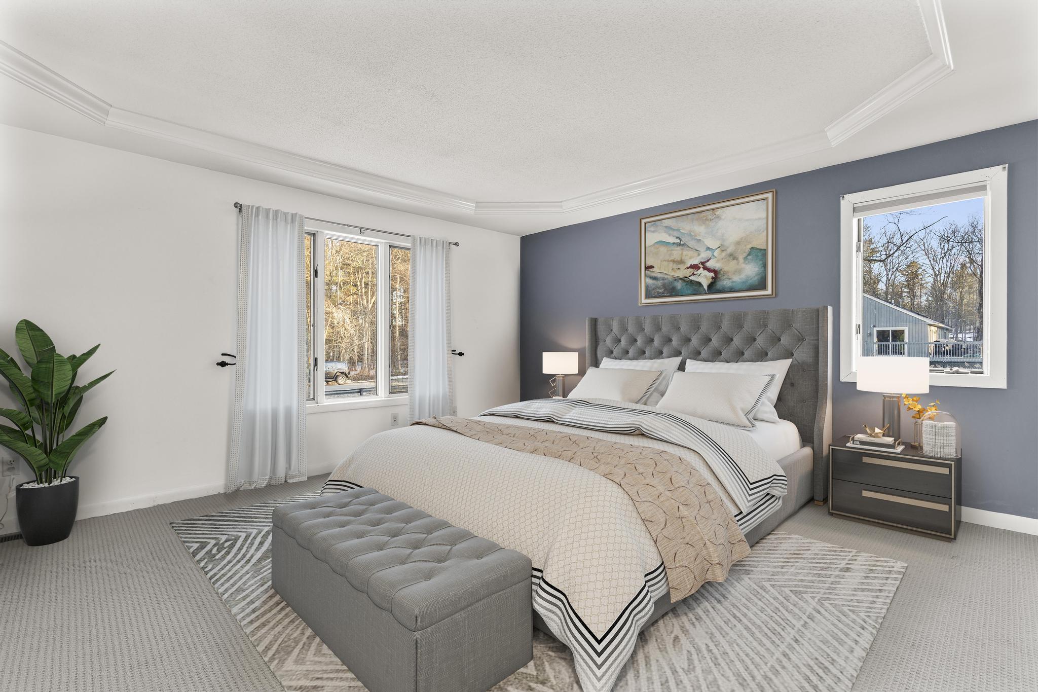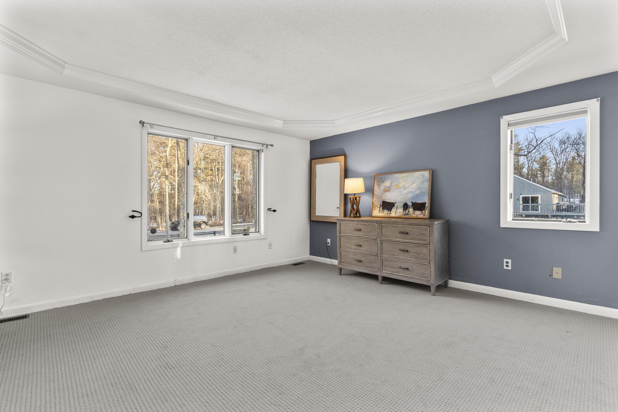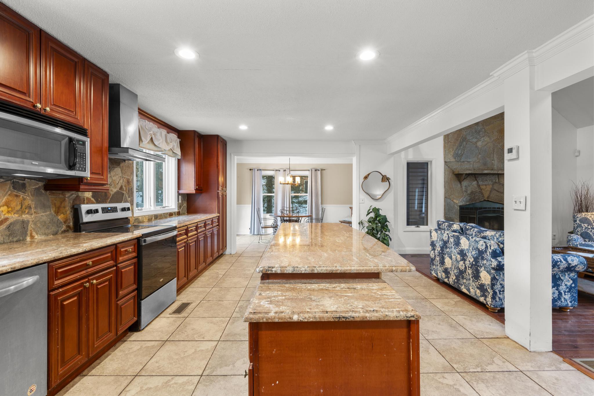 Set on a desirable second-tier lot within the Woodridge Lake community, this four-bedroom, two-and-a-half-bath residence offers peaceful lake views and a private wooded backdrop. The home's main level is thoughtfully designed for comfortable living and effortless entertaining, featuring a spacious primary suite with a walk-in closet and ensuite bath. The light-filled living room is the centerpiece of the home, with vaulted ceilings, skylights, and sliding doors that open to the front deck-an ideal setting to take in tranquil lake views. A wood-burning fireplace adds warmth and character to the space. The living area flows seamlessly into an expansive kitchen with stainless steel appliances, a large island with breakfast bar seating, and generous cabinetry. Just beyond, the dining area provides direct access to the rear deck, creating a natural extension of the living space for indoor-outdoor gatherings. The upper level offers additional bedrooms with flexibility for guests, family, or a home office. Outdoor spaces include both a front deck overlooking the lake and a private backyard with a second deck surrounded by mature trees. Recent improvements include a newly paved asphalt driveway, updated stonework, and new garage doors, enhancing both curb appeal and functionality.