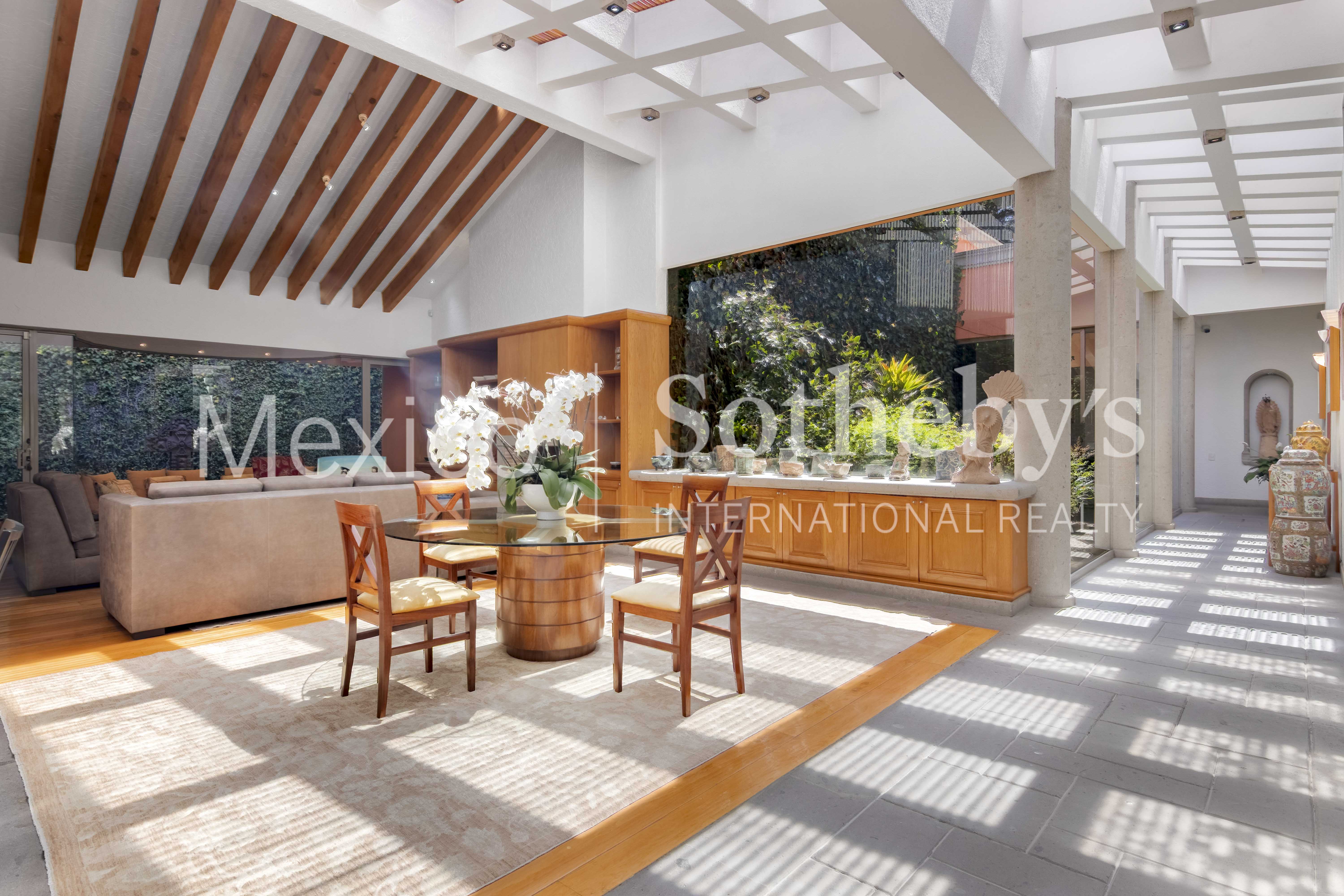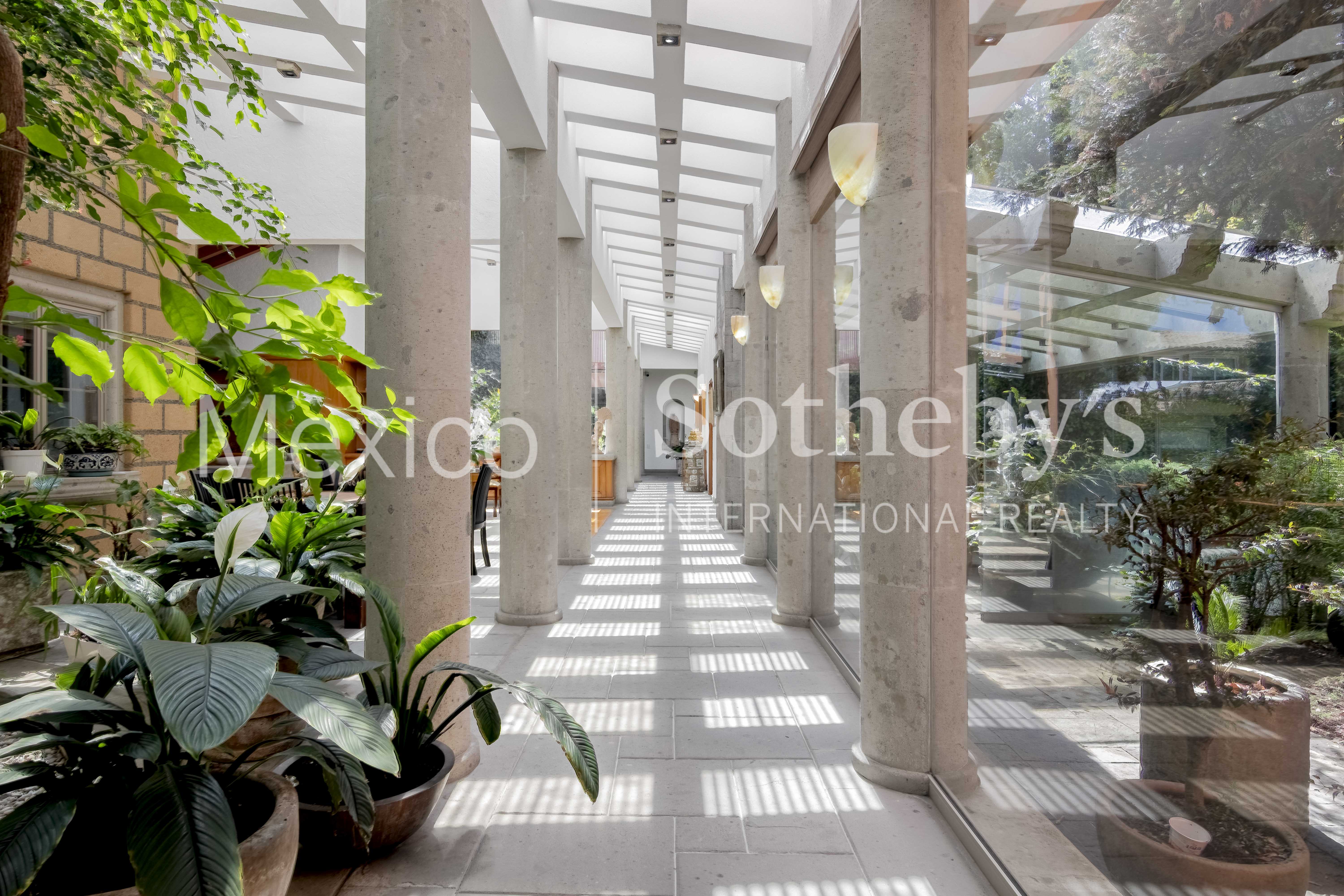 The property stands out for its remarkable natural light, enhanced by interior planters and a design that