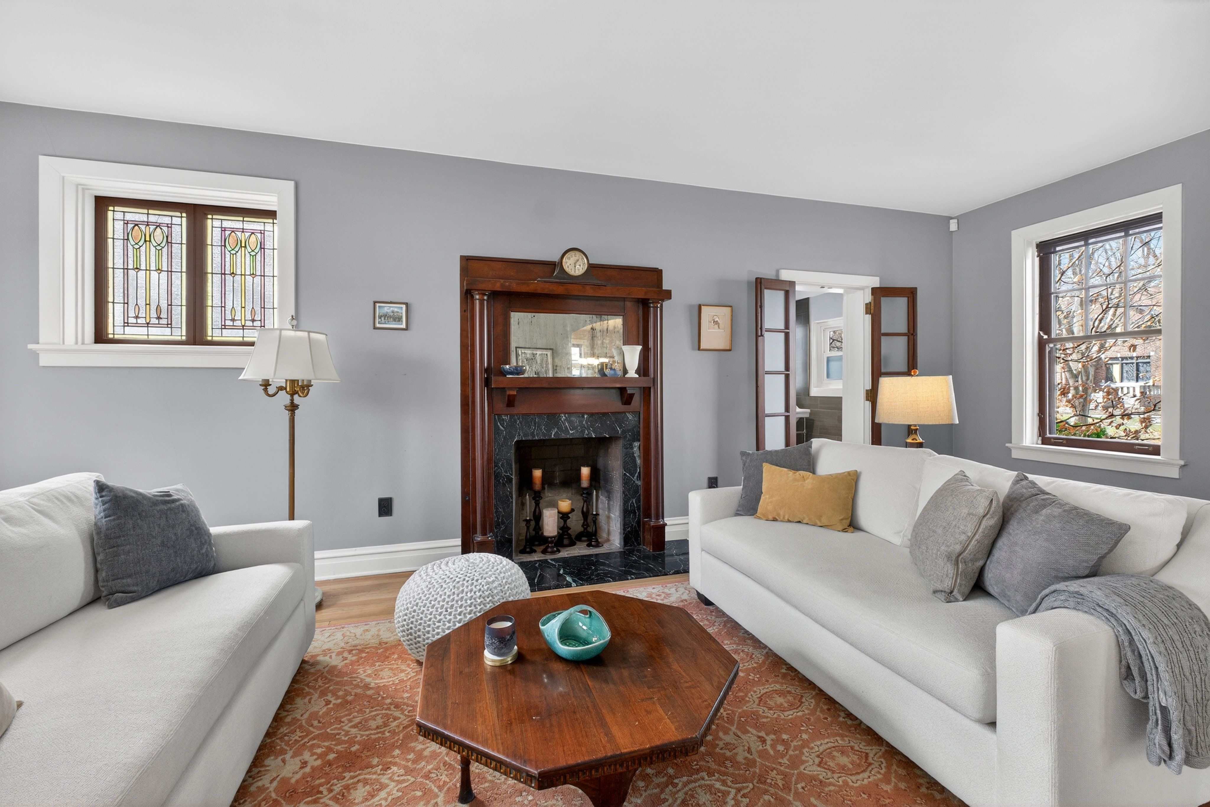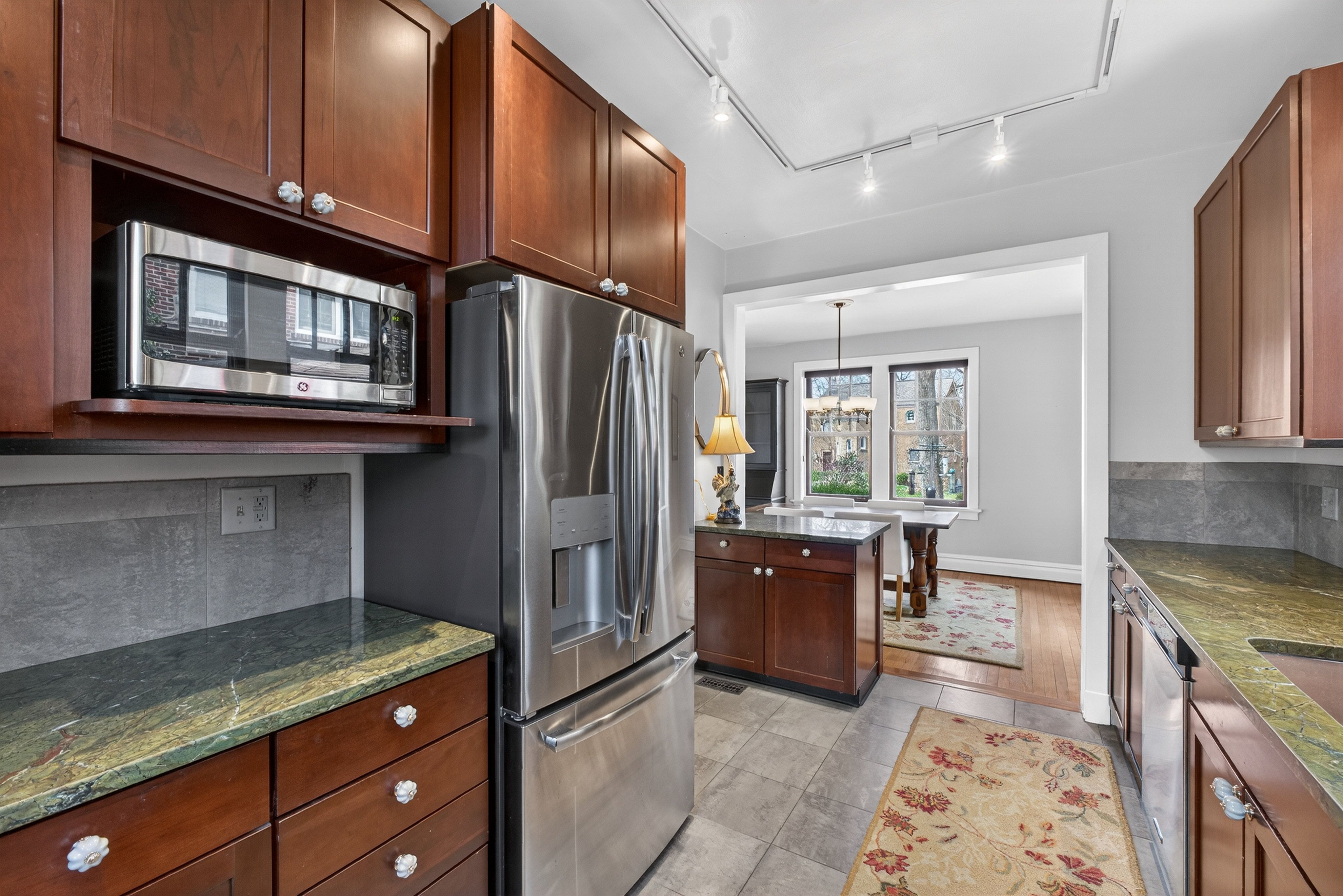 This beautifully maintained 1774 sq ft. University Heights home features a classic all-brick architecture, 9-foot ceilings, beautiful wood floors & fresh paint throughout, combining timeless character with modern updates. The chef's kitchen boasts an oversized dual oven with professional hood, stainless-steel appliances, premium granite countertops & custom wood cabinetry with pullout shelving. The kitchen opens to a well-appointed dining room and expansive living room with loads of natural light, colorful art deco stained glass windows and a decorative mahogany fireplace mantel. The property features 4 bedrooms, an open staircase & 2 full bathrooms designed w/ floor to ceiling tile throughout. A clean, dry basement provides ample storage space as well as a laundry area with a charming laundry chute accessible from all floors. Step outside to enjoy multiple patios whether in the front or back of the house. A quaint fully fenced backyard garden equipped with attractive hardscaping is perfect for relaxing, hosting, or cultivating your own outdoor oasis. A full 2 car garage is conveniently situated steps from the back door. This move-in ready home provides a layout balancing functionality with impeccable warmth, updated for today’s lifestyle. A rare opportunity in a prime location walking distance to local parks, Wash U, The Loop and more.