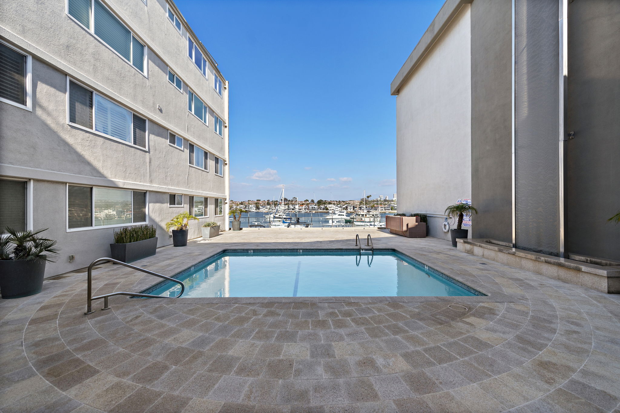 Ocean and Bay Views! Welcome to your dream coastal retreat, where every day begins with a spectacular sunrise over the Newport Beach Harbor. An open-concept living area bathed in natural light sets the tone for this beautifully updated 1-bedroom, 2-bath condo, showcasing a spacious primary suite with a king-size bed and a queen-size sleeper sofa in the living room, offering comfortable accommodations for visiting guests. Featuring new porcelain tile flooring, motorized blinds, a gorgeous kitchen, and a seamless flow to a private balcony overlooking the water. Residents of Newport Bay Towers enjoy priority access to boat slips accommodating a Duffy or vessels up to approximately 65 feet, a rare and highly sought-after privilege in Newport Beach. Community amenities include a sparkling pool and a rooftop deck with breathtaking 360° views of Newport Harbor, Fashion Island, and Catalina Island. Just moments from waterfront dining, shops and charming cafés, this turn-key condo blends simplicity, style, and prime harbor access. Whether you're looking for a serene escape or an active coastal lifestyle, this exclusive community and turn-key home offers the best of both worlds. Newport Beach living at its finest!
