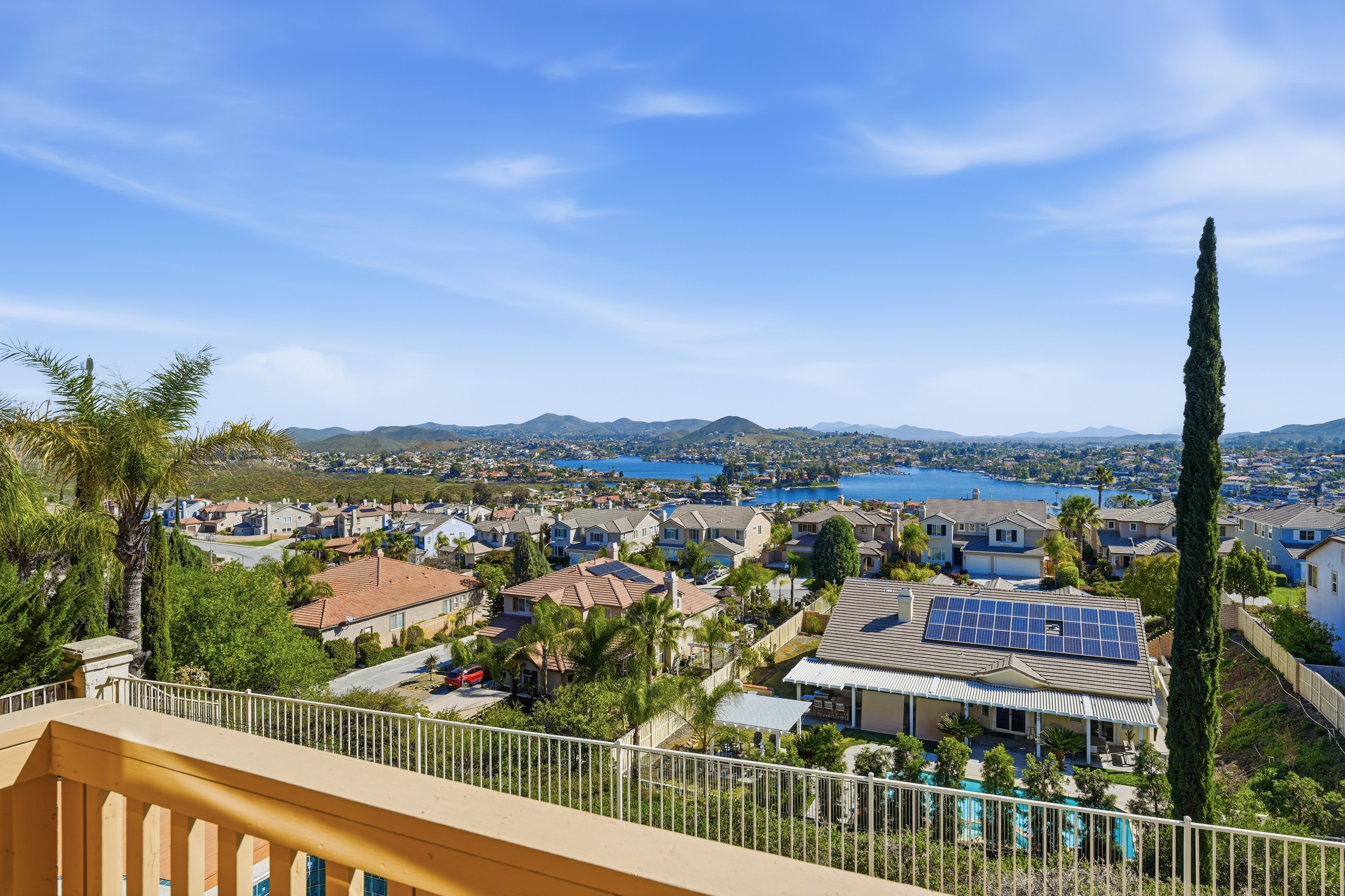 Experience sweeping panoramic views of Canyon Lake from this stunning 4-bedroom remodeled Mediterranean beauty. Freshly, tastefully & neutrally upgraded less than a year ago, this turnkey home offers a modern aesthetic with the benefit of energy-efficiency. From the moment you walk in, be awed by the airy 2 story, atrium style great room with its dramatic stairwell and picturesque windows framing the lake views. A bright white kitchen rests at the heart of the home featuring sleek quartz counters and opening up to a cozy family room with fireplace. Downstairs there is a charming bonus room that can be used as office, music room, art studio or reading room. Located in the desirable Tuscany Hills community, you're just minutes away from the amenities of the resort-style recreation center with Junior Olympic-sized Pool, Fitness Club, Sports courts, Picnic Areas, Childrens' Playgrounds & a Grand Clubhouse...perfect for an active and social lifestyle. The private outdoor space is designed for ultimate relaxation, featuring a charming pool with trickling spouts, warm bubbling spa & large decks/balcony off master for enjoying the gorgeous lake views. Don't miss this opportunity to own one of the best view homes in Tuscany Hills!