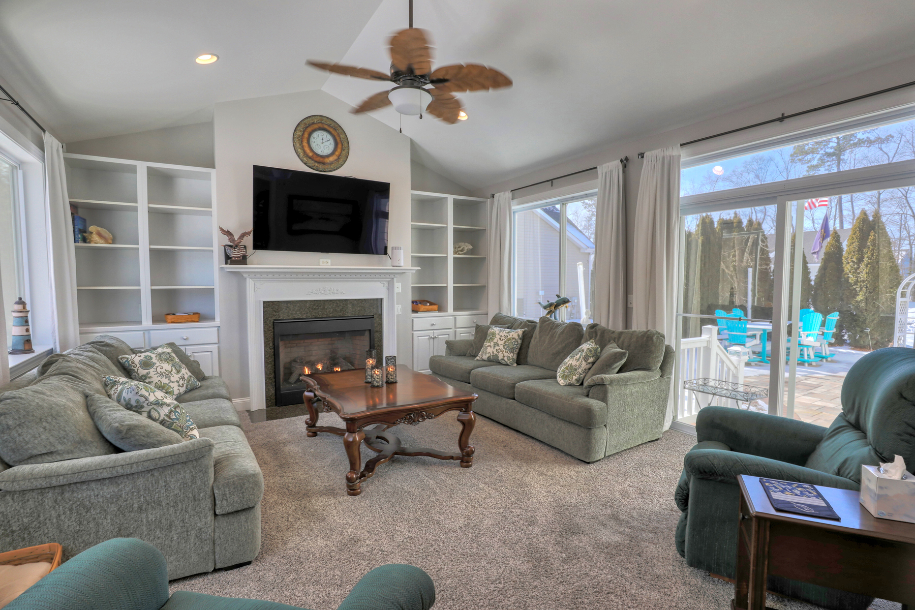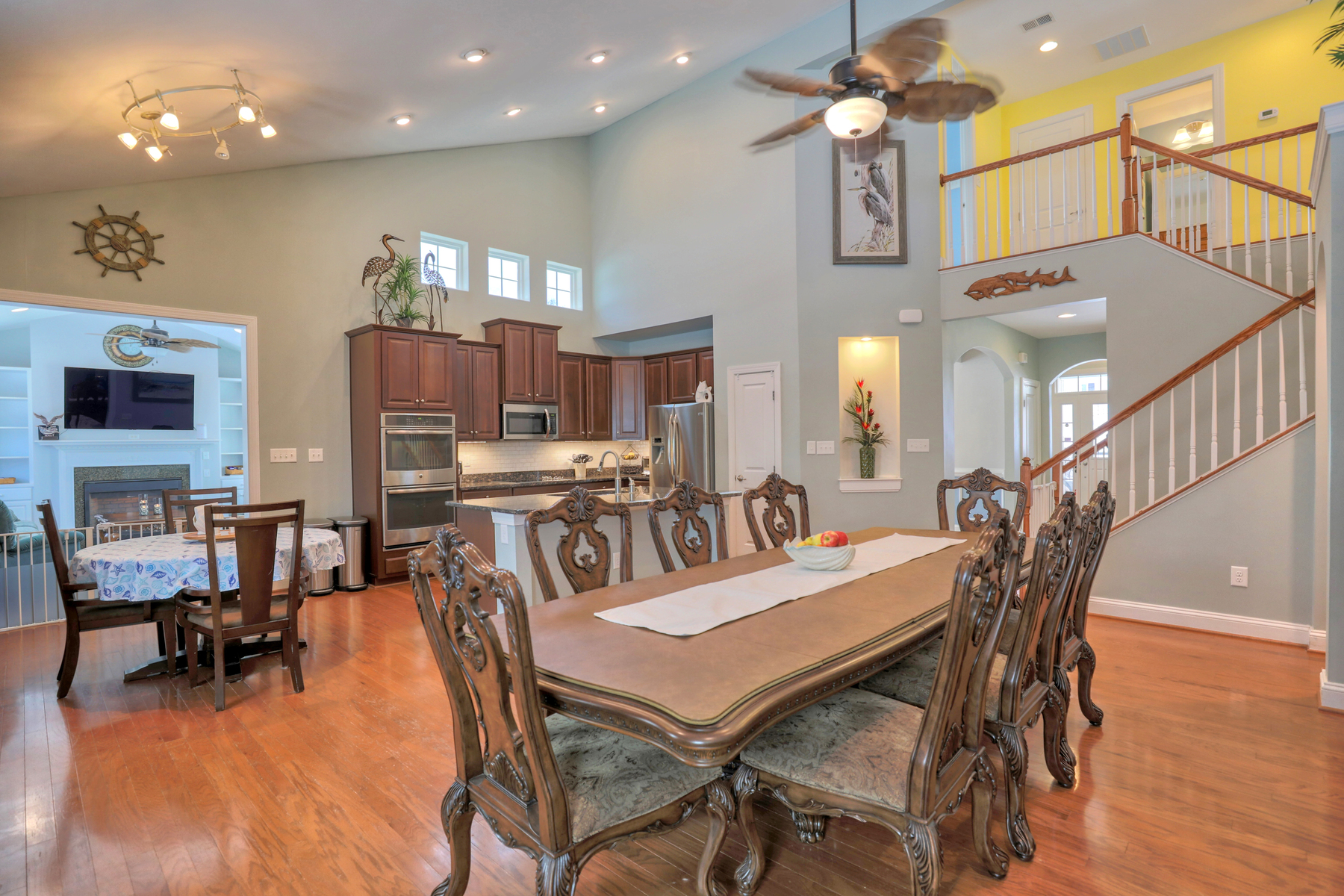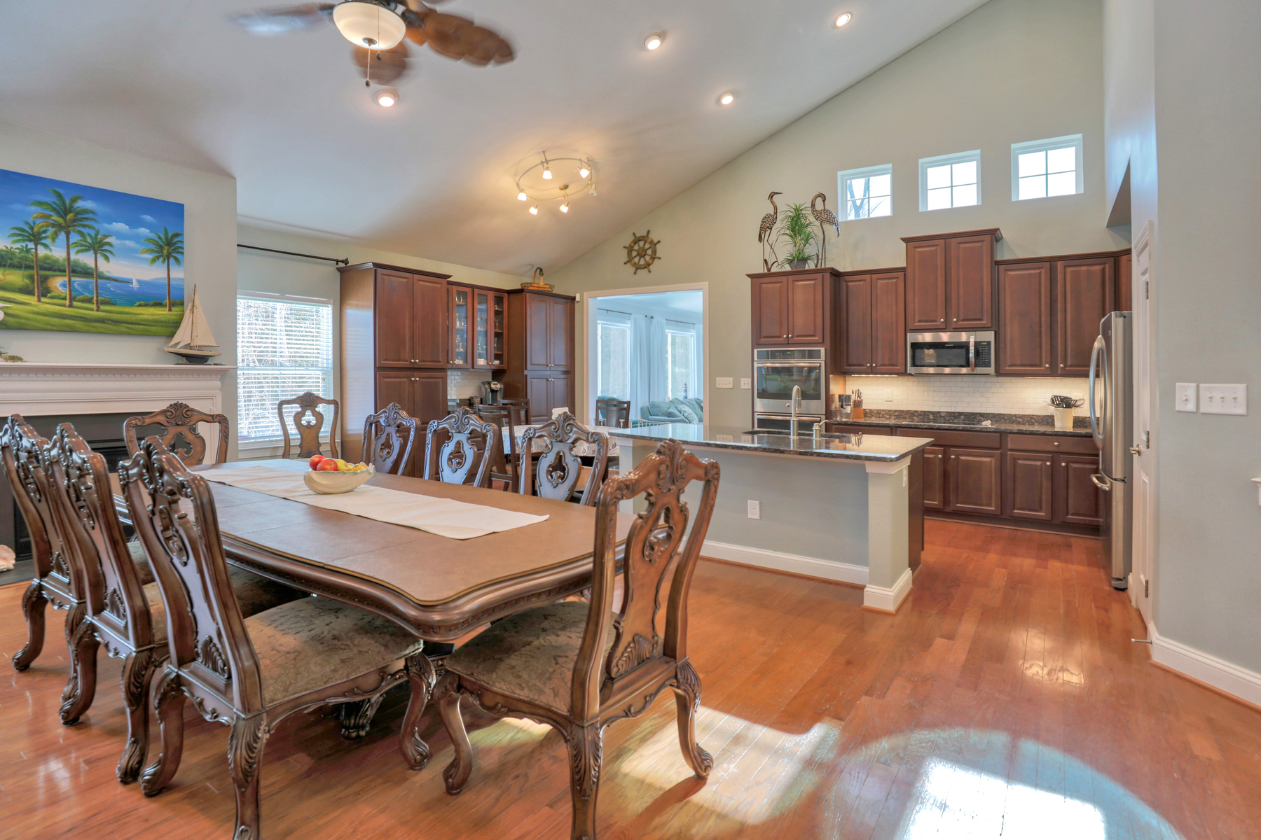 Welcome to 21379 North Acorn Way. Nestled in the community of Oakwood Village in Lewes, this beautifully maintained 4-bedroom, 4-bathroom home offers spacious, light-filled living and thoughtful upgrades throughout. The main great room features an open layout with hardwood floors, soaring ceilings, built-ins, and not just one, but two fireplaces that add warmth and character. The kitchen is well-appointed with abundant cabinetry, granite countertops, stainless steel appliances, and a large island.