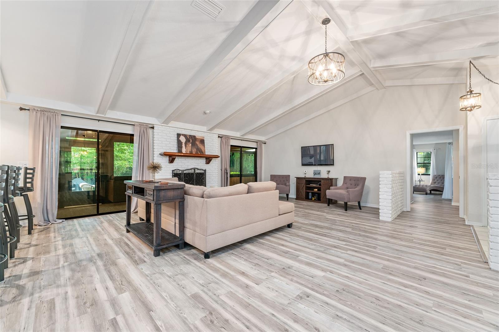 Nestled amidst the tranquility of the highly sought-after Forest of Golden Hills, this meticulously upgraded 3 bed | 2.5 bath home is an oasis ready to embrace you. As you enter, be captivated by the soaring vaulted ceilings adorned with elegant wood beams. Underfoot, newly installed luxury vinyl floors create an atmosphere of warmth and sophistication. The spacious living room invites you to relax by the cozy fireplace, while the adjacent dining area, currently transformed into a charming sitting area, offers a tranquil space to unwind. The well-equipped kitchen boasts all the essentials for culinary creations. Its convenient breakfast nook seamlessly connects to the expansive enclosed porch, where you can savor your meals amidst the mature landscaping. A laundry area and powder room complete the main hallway, providing utmost convenience. This home's split bedroom plan ensures privacy and comfort for all. The two guest rooms are generously proportioned and share a lovely bathroom with a dual sink vanity and subway tile combination tub shower. Tucked away on the opposite end of the home, the primary bedroom exudes tranquility. Drenched in natural light, it features a spacious walk-in closet, sliding glass doors leading to the screened-in porch, and an en-suite bathroom. Indulge in relaxation in the en-suite's double vanities, step-down soaking tub, and walk-in shower. Step outside to the fully fenced backyard, a sanctuary for your furry companions. This corner lot provides ample space for outdoor enjoyment. Your new home is ideally situated within minutes of shopping, dining, grocery stores, and the renowned World Equestrian Center. Enjoy the best of both worlds, a peaceful retreat and unparalleled convenience.Rental Rates:Annual Term (12 months): $3,950 monthly (includes grounds care)Off-Season (May 1 - October 31): $4,950 monthly (includes maintenance, Wi-Fi, trash collection, and grounds care)Season (November 1 - April 30): $6,750 monthly (includes maintenance, Wi-Fi, trash collection, and grounds care)