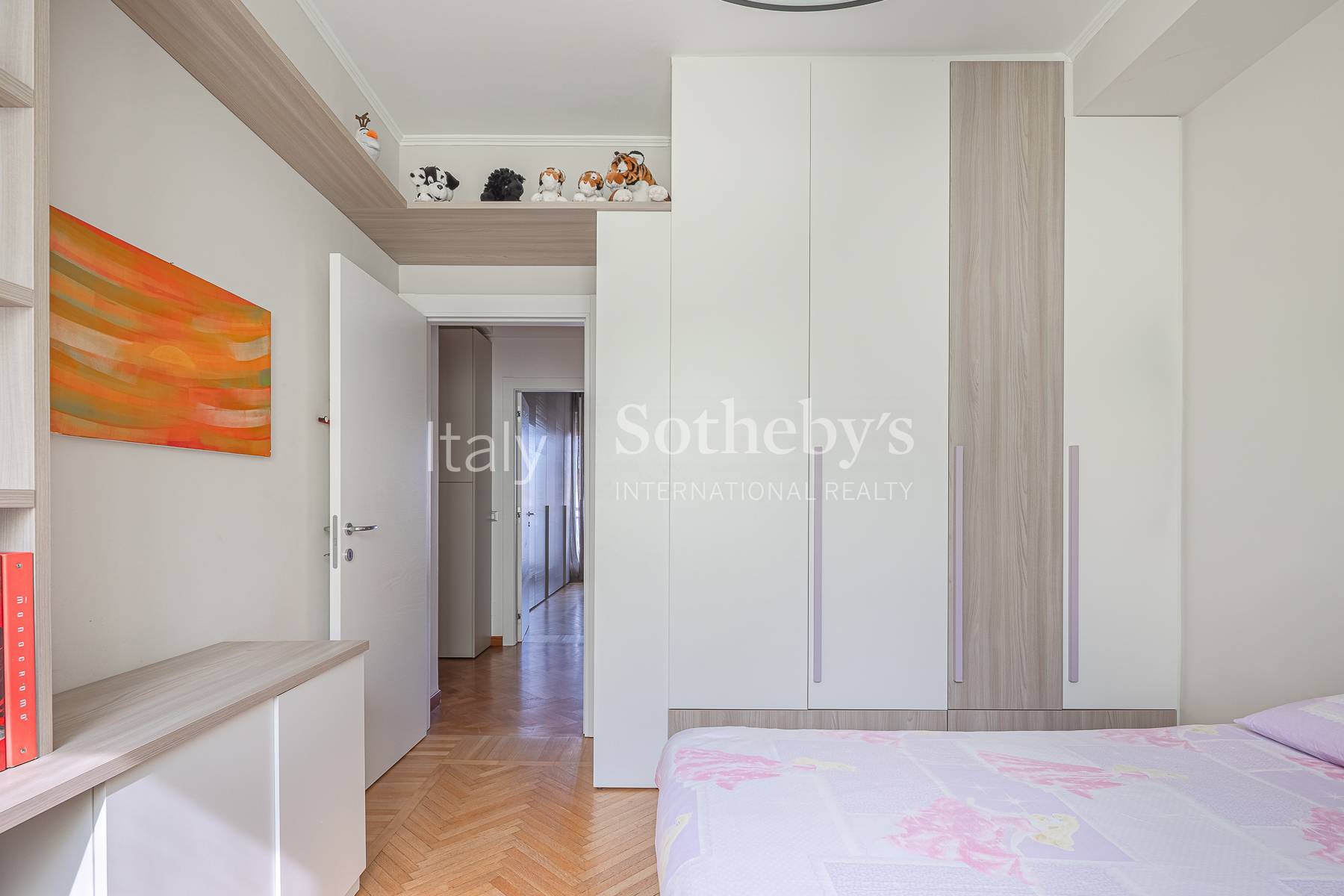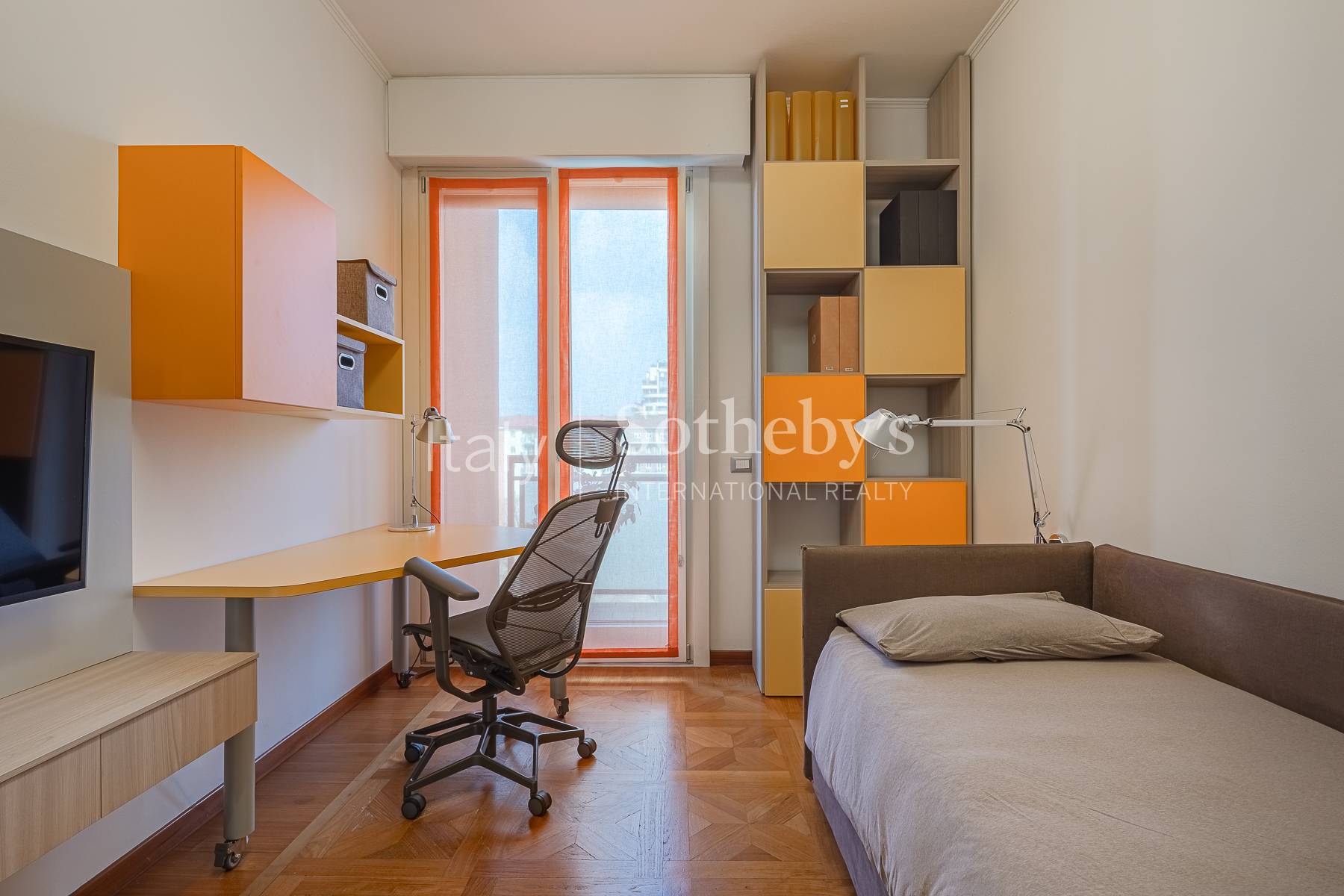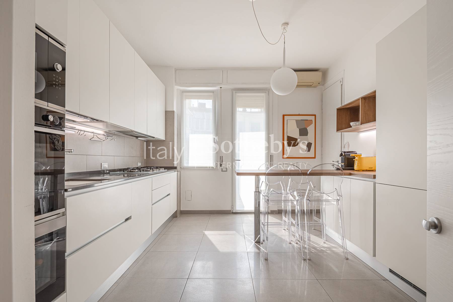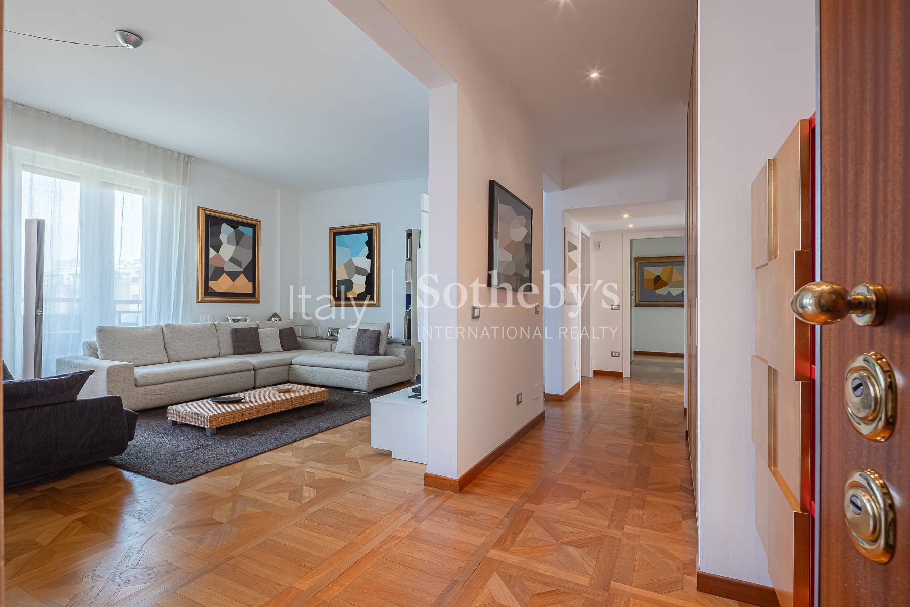 In one of Milan's most exclusive areas, just a short walk from CityLife and set in the prestigious Piazza VI Febbraio, bright apartment of approximately 170 sqm (1,830 sq ft ) located on the seventh floor of a building with concierge service.The property stands out for its generous spaces and functional layout. The entrance leads to an elegant and spacious living room, ideal for entertaining, with access to a pleasant balcony that ensures abundant natural light and open views. The kitchen is separate, fully habitable, and features a practical secondary balcony.The sleeping area comprises three spacious bedrooms, perfect for families or for those in need of versatile spaces such as a study or guest room.The property is completed by a staff bedroom with independent entrance, ideal for domestic personnel, as well as a convenient cellar. Available from June 10th, 2026
