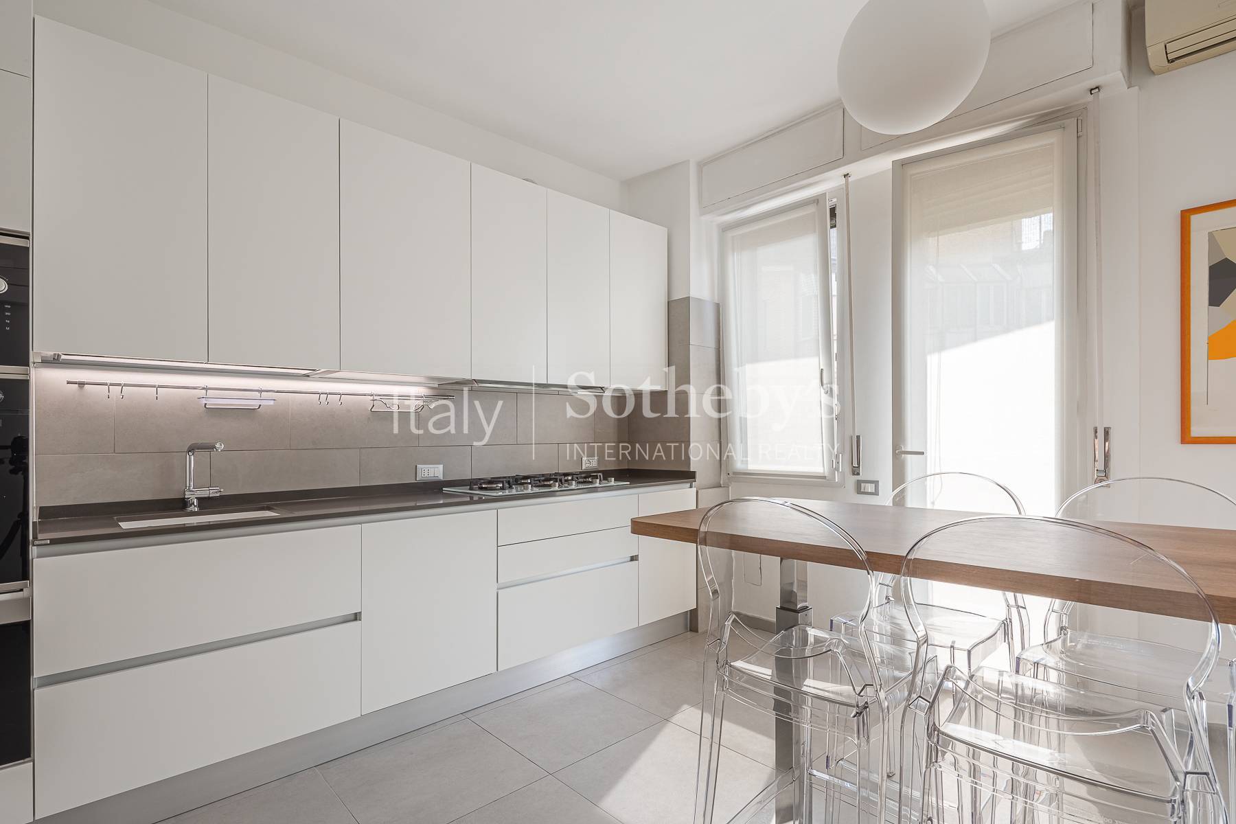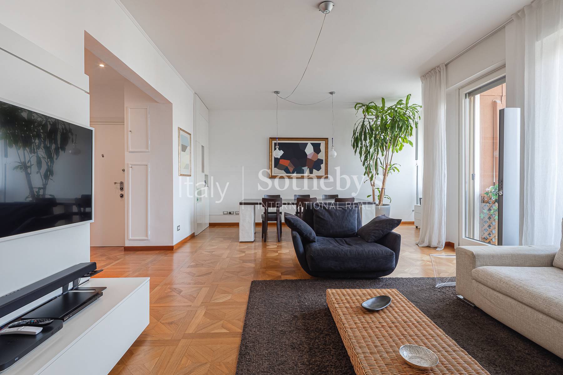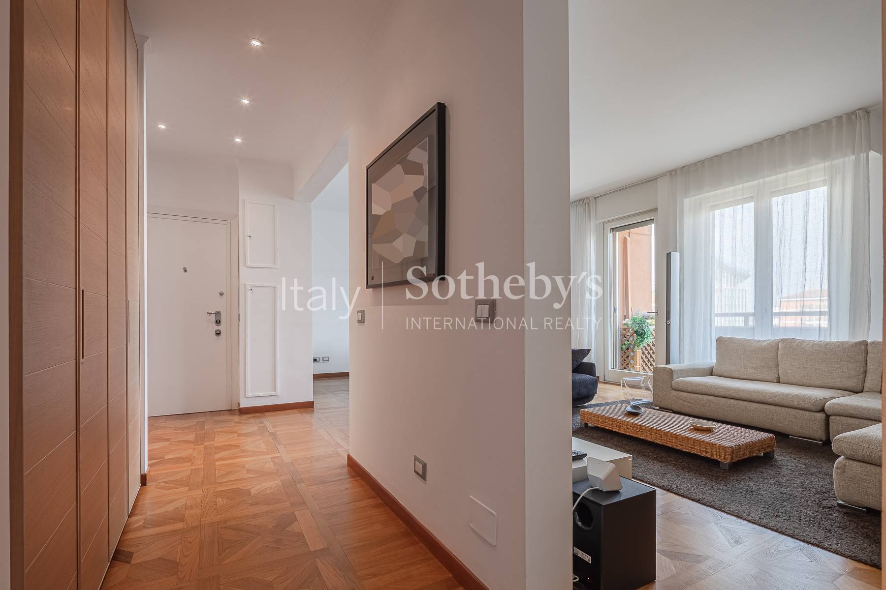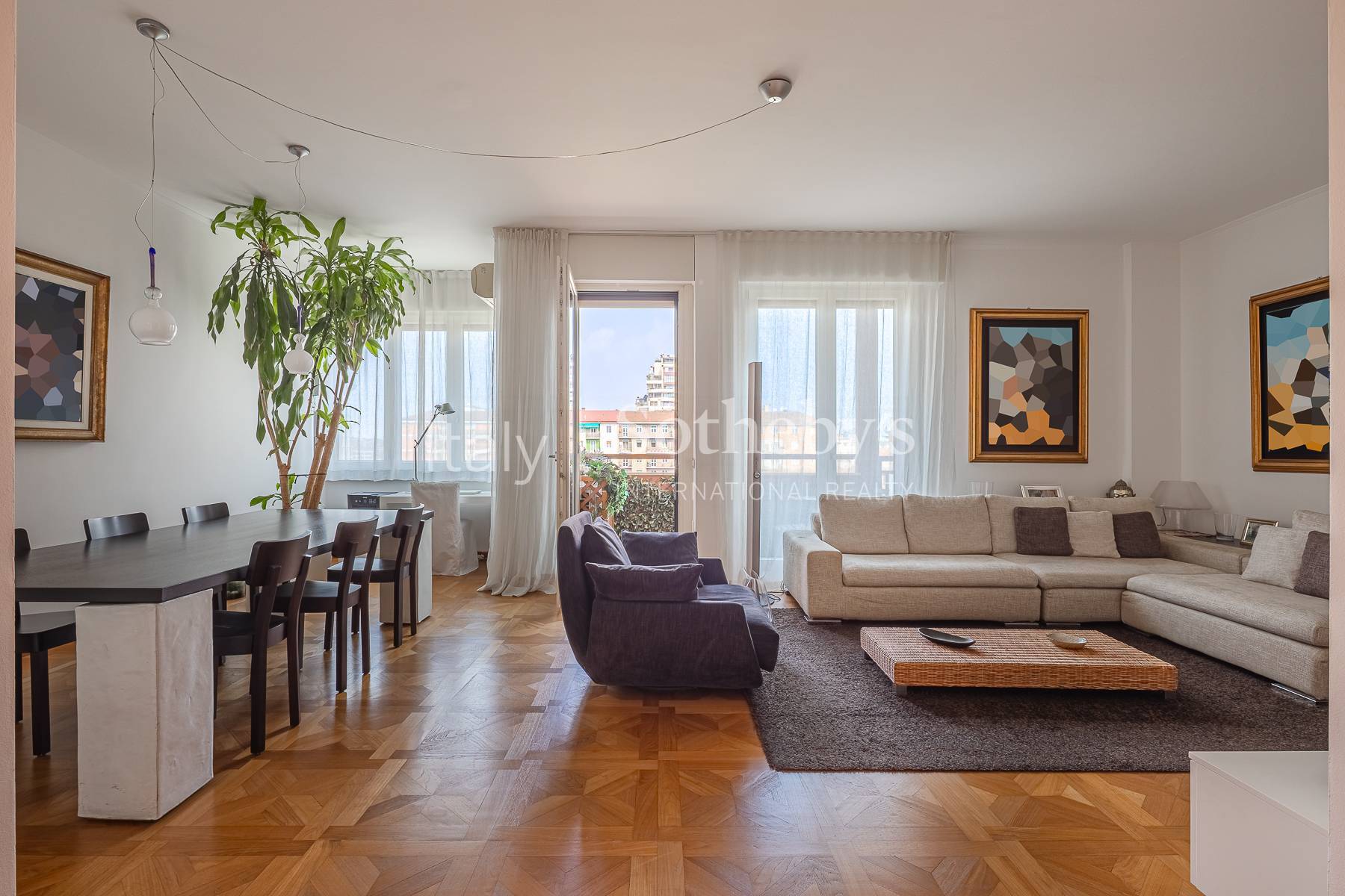 In one of Milan's most exclusive areas, just a short walk from CityLife and set in the prestigious Piazza VI Febbraio, bright apartment of approximately 170 sqm (1,830 sq ft ) located on the seventh floor of a building with concierge service.The property stands out for its generous spaces and functional layout. The entrance leads to an elegant and spacious living room, ideal for entertaining, with access to a pleasant balcony that ensures abundant natural light and open views. The kitchen is separate, fully habitable, and features a practical secondary balcony.The sleeping area comprises three spacious bedrooms, perfect for families or for those in need of versatile spaces such as a study or guest room.The property is completed by a staff bedroom with independent entrance, ideal for domestic personnel, as well as a convenient cellar. Available from June 10th, 2026