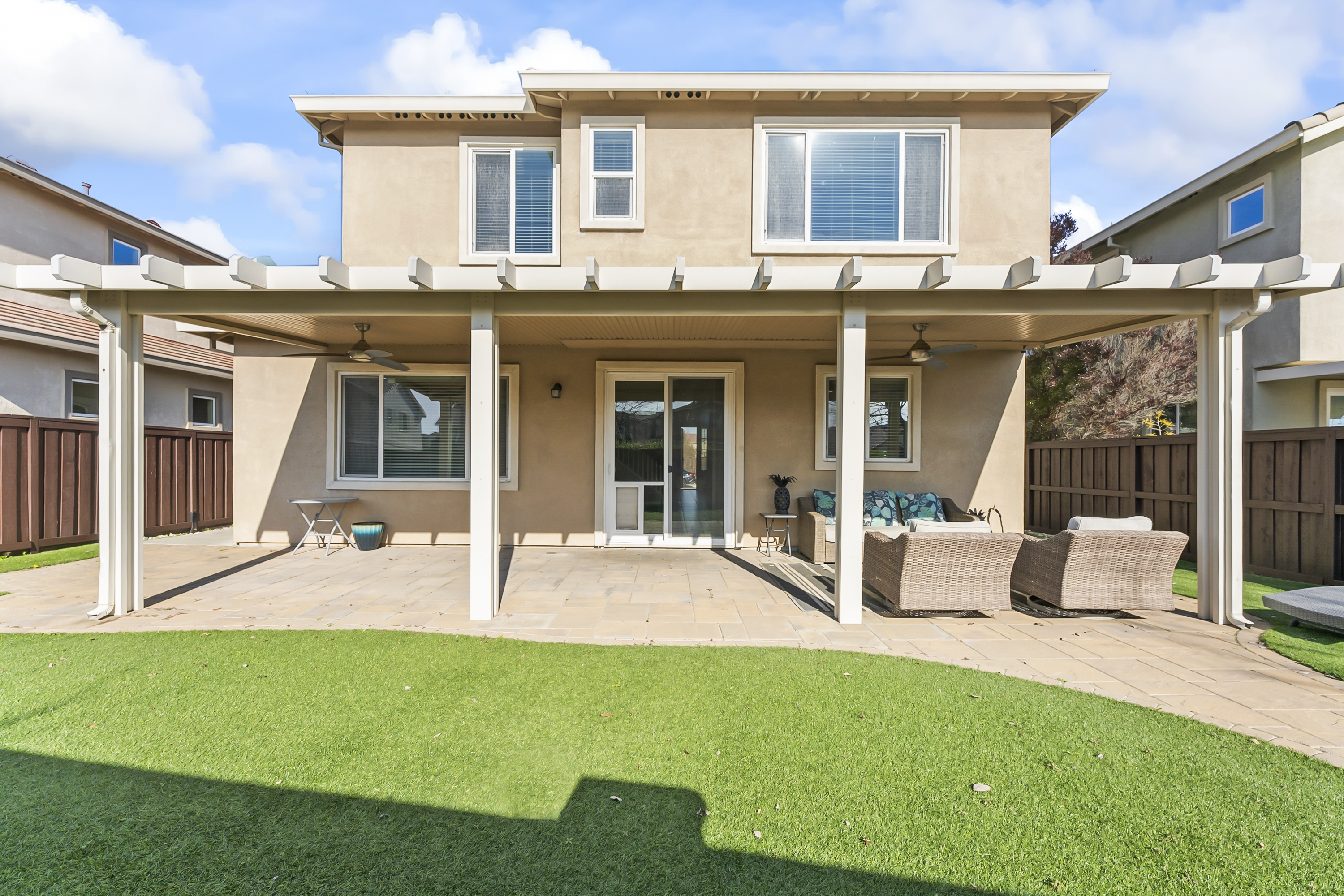 Welcome to North Village! As the former model home for this neighborhood by Seeno Homes, this estate comes with top-of-the-line upgrades, materials, and finishes. Spanning 2,745 square feet, this spacious 4-bedroom residence features premium upgrades throughout, including a gourmet chef’s kitchen with granite countertops, a versatile upstairs loft, and a convenient full bedroom and bathroom on the main level. As a flagship property, the home boasts professionally landscaped grounds and a private backyard with no rear neighbors. This home offers a perfect blend of suburban serenity and urban convenience, ideally located for professionals, just minutes from top employers such as Kaiser Permanente and Genentech. Residents will enjoy being a short drive from world-class shopping at the Vacaville Premium Outlets and local favorites at Nut Tree Plaza, while easy access to I-80 and I-505 ensures a smooth commute to both Sacramento and the Bay Area. Experience the "model home" difference and a peaceful lifestyle in one of Vacaville’s most sought-after subdivisions.
