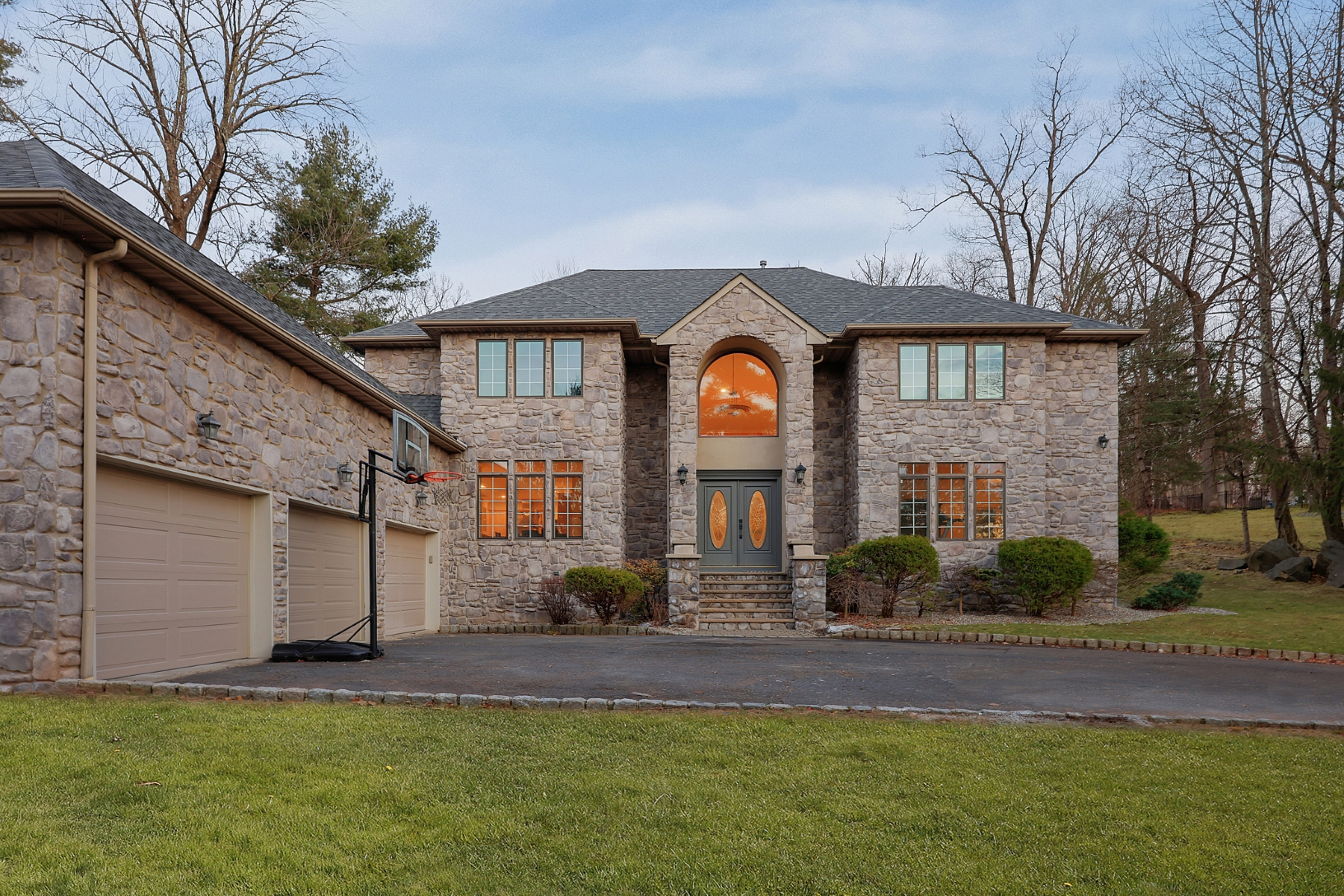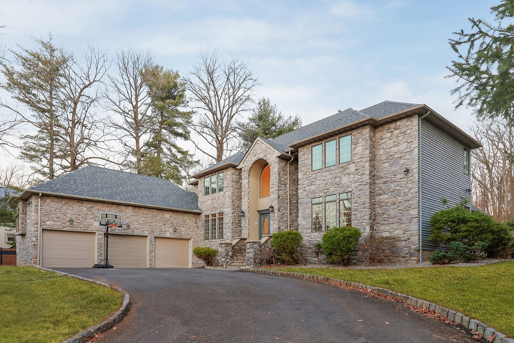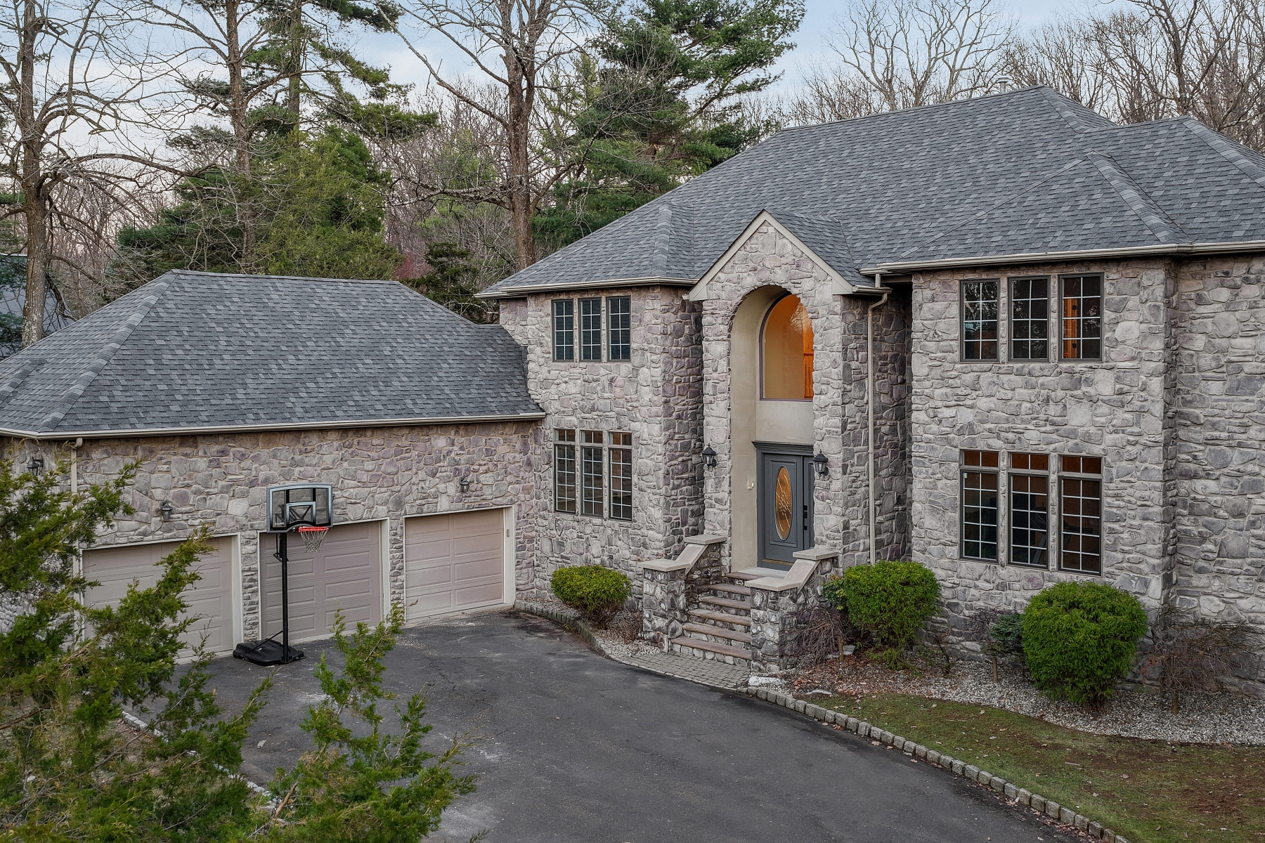 Nestled on a quiet cul-de-sac and set on a private wooded lot, this elegant Colonial home boasts a striking stone exterior and timeless curb appeal. A dramatic two-story foyer opens gracefully to the second floor, creating a bright and welcoming entrance. Hardwood floor runs throughout the home, adding warmth and elegance to every room. The spacious living room offers a walkout to a private patio, perfect for relaxing outdoors or entertaining while enjoying the peaceful wooded surroundings. The thoughtfully designed layout features a desirable first-floor primary suite, complete with a spacious walk-in closet and a private full bath for ultimate comfort and convenience. The remodeled bathrooms feature updated fixtures, contemporary finishes, and a fresh modern feel. The second floor offers three additional generously sized bedrooms, provides ample space for guests or home office. The home is also equipped with a whole-house generator, offering dependable backup power and ensuring comfort and functionality even during unexpected outages.