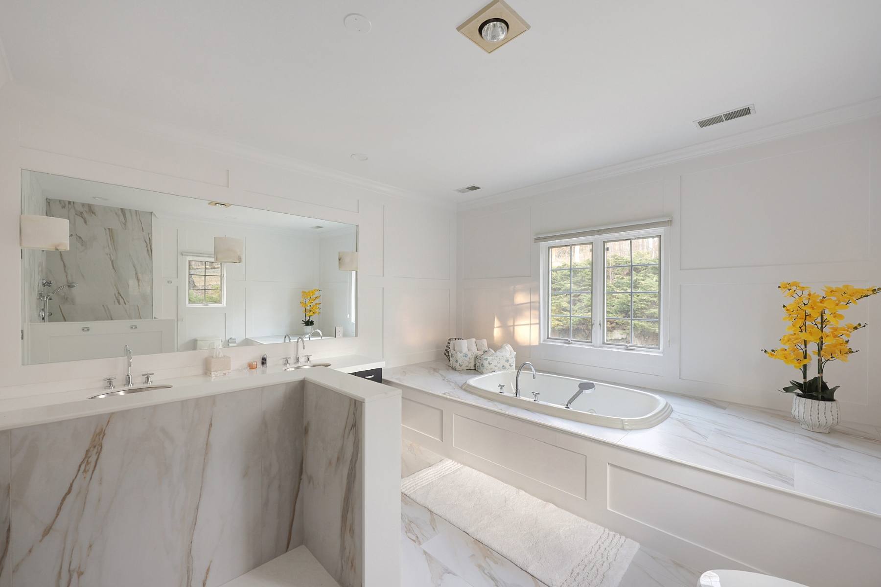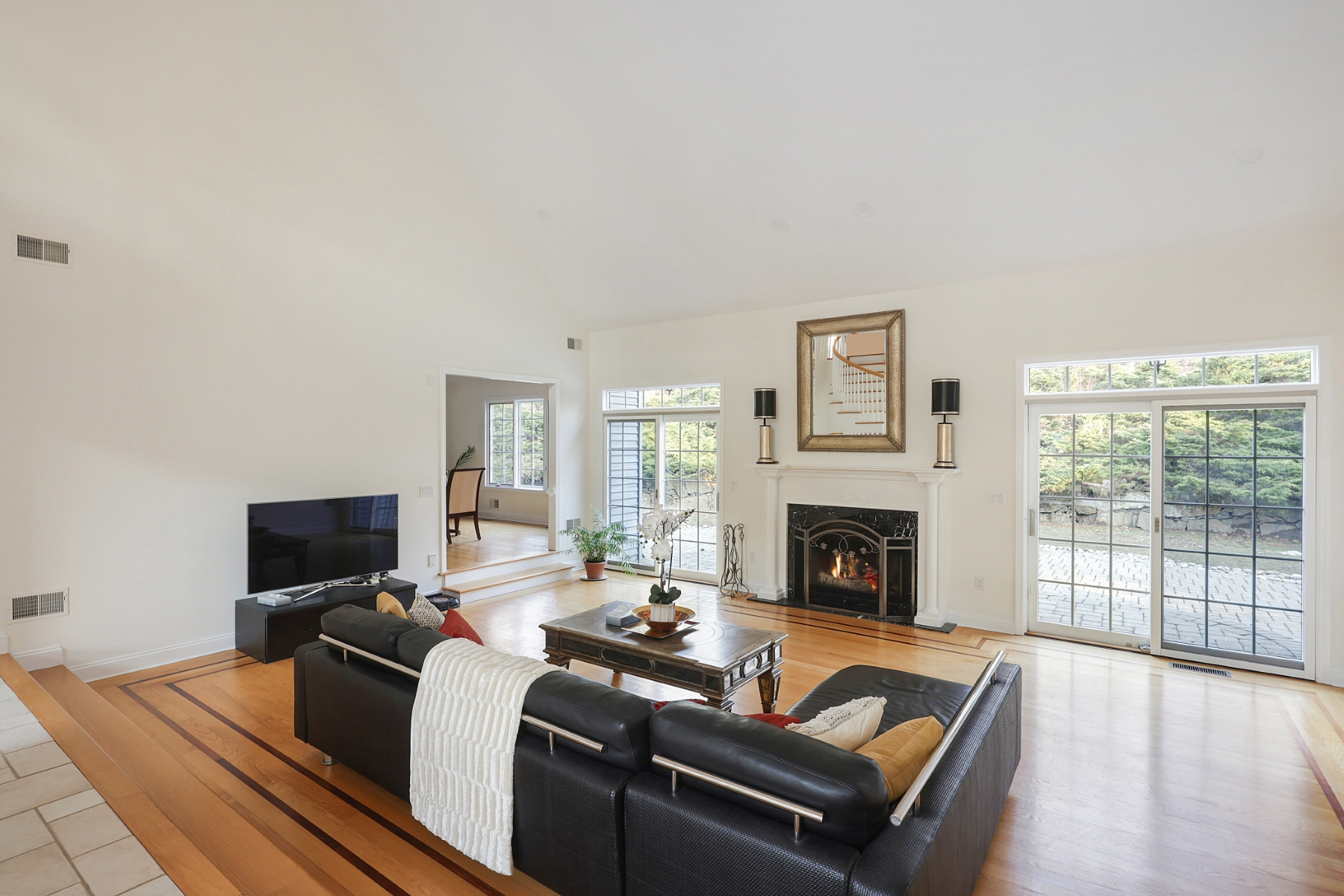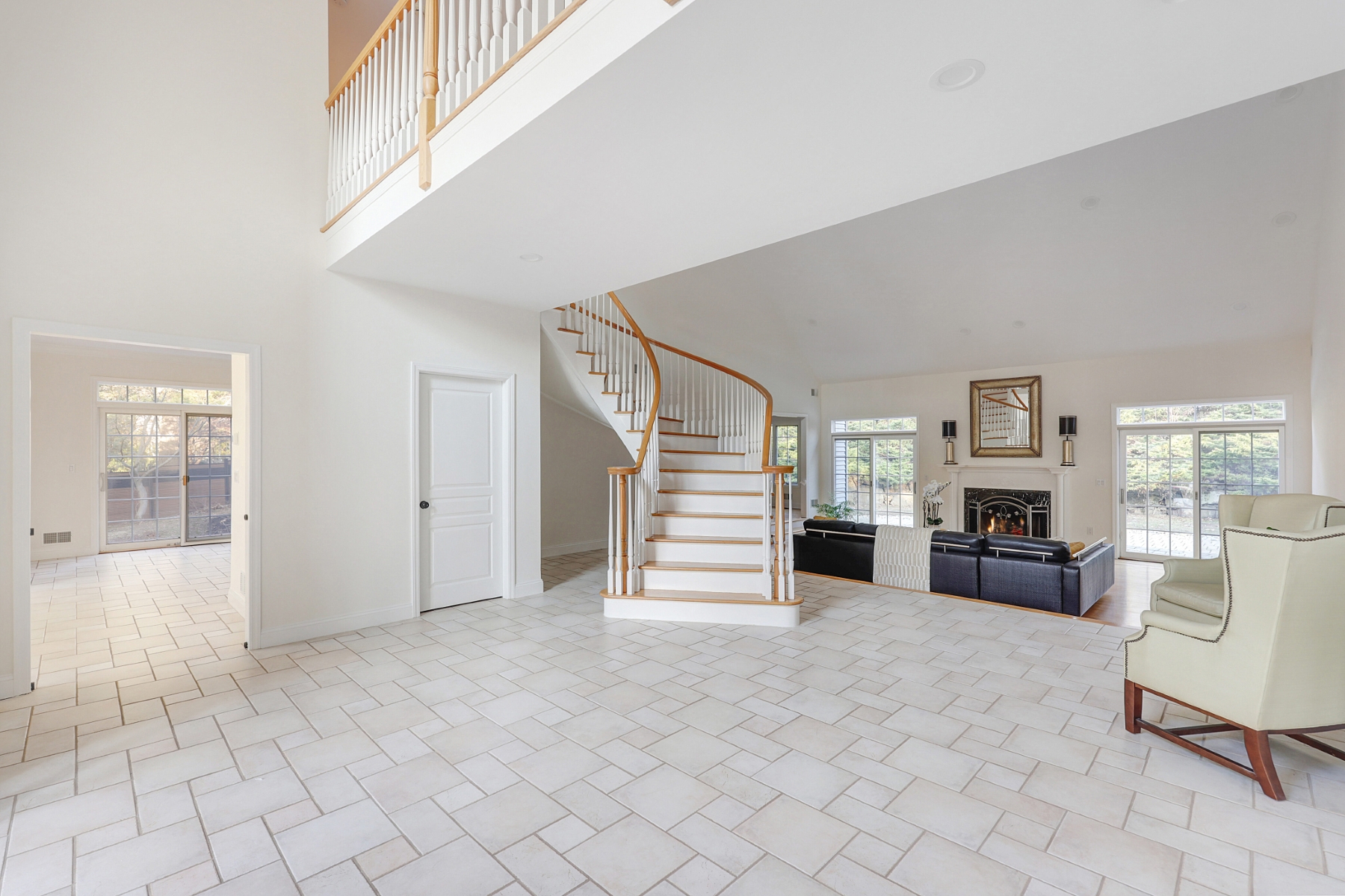 Nestled on a quiet cul-de-sac and set on a private wooded lot, this elegant Colonial home boasts a striking stone exterior and timeless curb appeal. A dramatic two-story foyer opens gracefully to the second floor, creating a bright and welcoming entrance. Hardwood floor runs throughout the home, adding warmth and elegance to every room. The spacious living room offers a walkout to a private patio, perfect for relaxing outdoors or entertaining while enjoying the peaceful wooded surroundings. The thoughtfully designed layout features a desirable first-floor primary suite, complete with a spacious walk-in closet and a private full bath for ultimate comfort and convenience. The remodeled bathrooms feature updated fixtures, contemporary finishes, and a fresh modern feel. The second floor offers three additional generously sized bedrooms, provides ample space for guests or home office. The home is also equipped with a whole-house generator, offering dependable backup power and ensuring comfort and functionality even during unexpected outages.