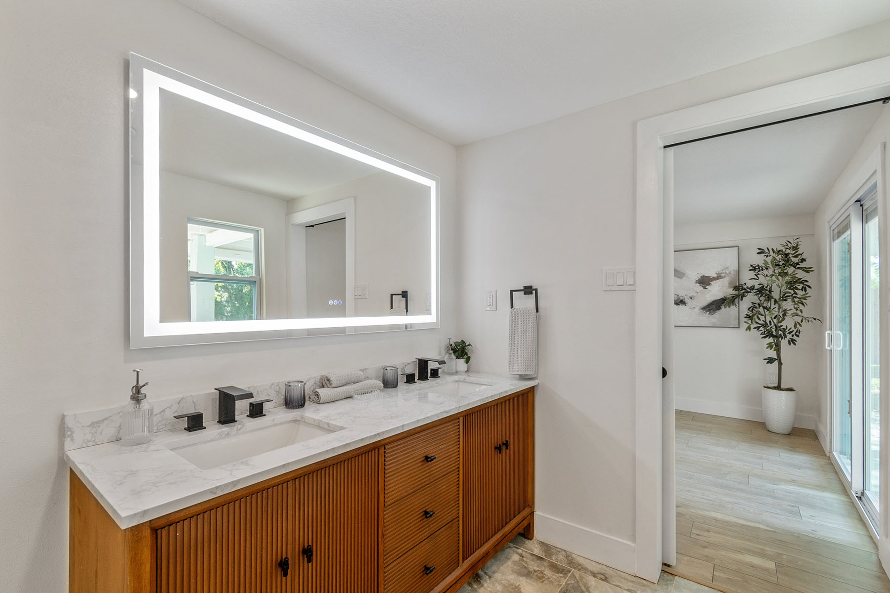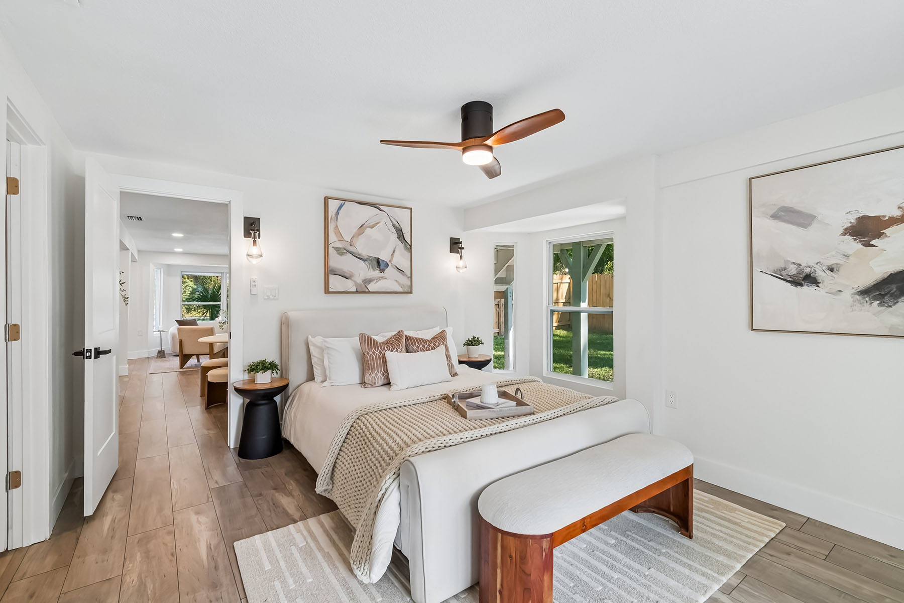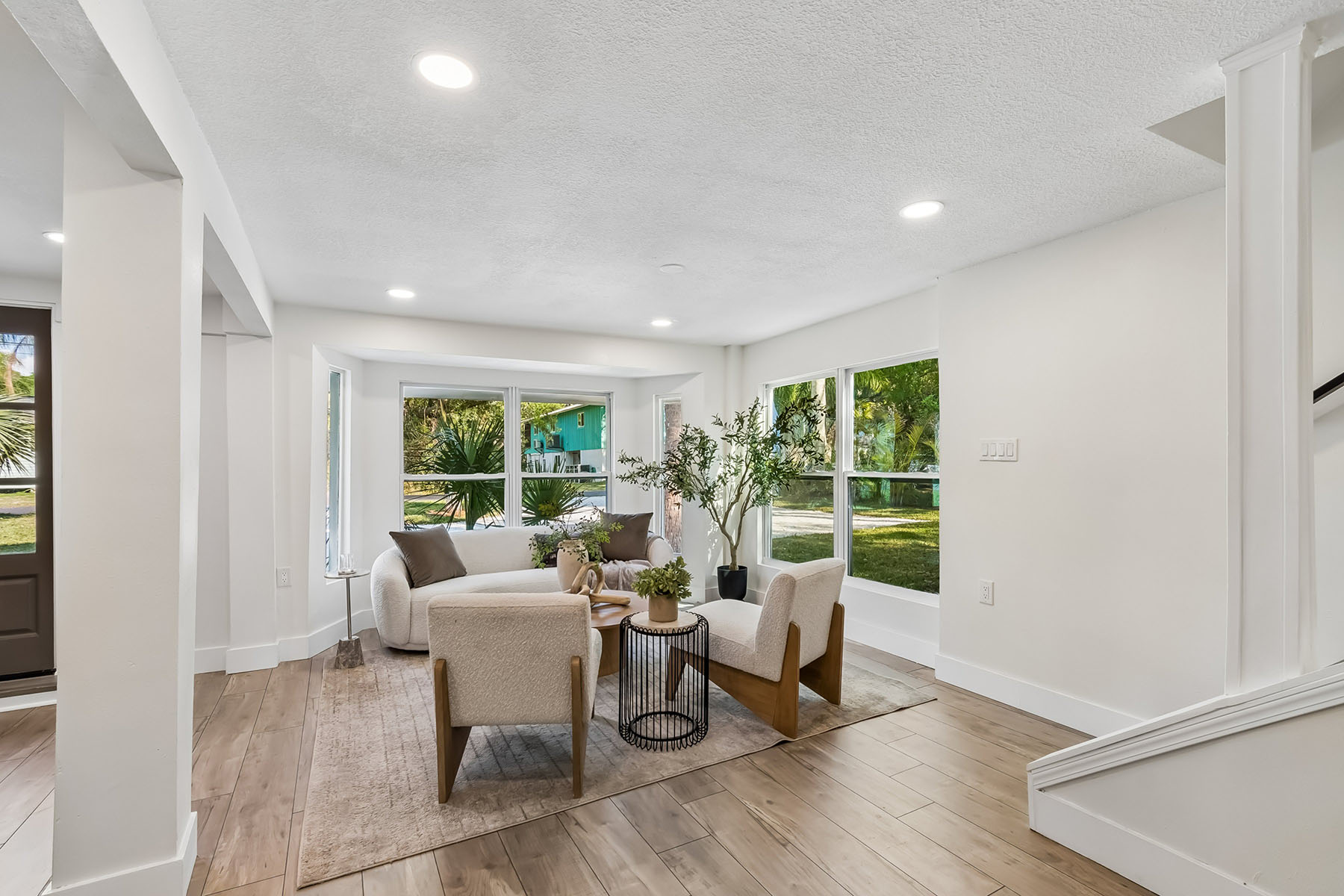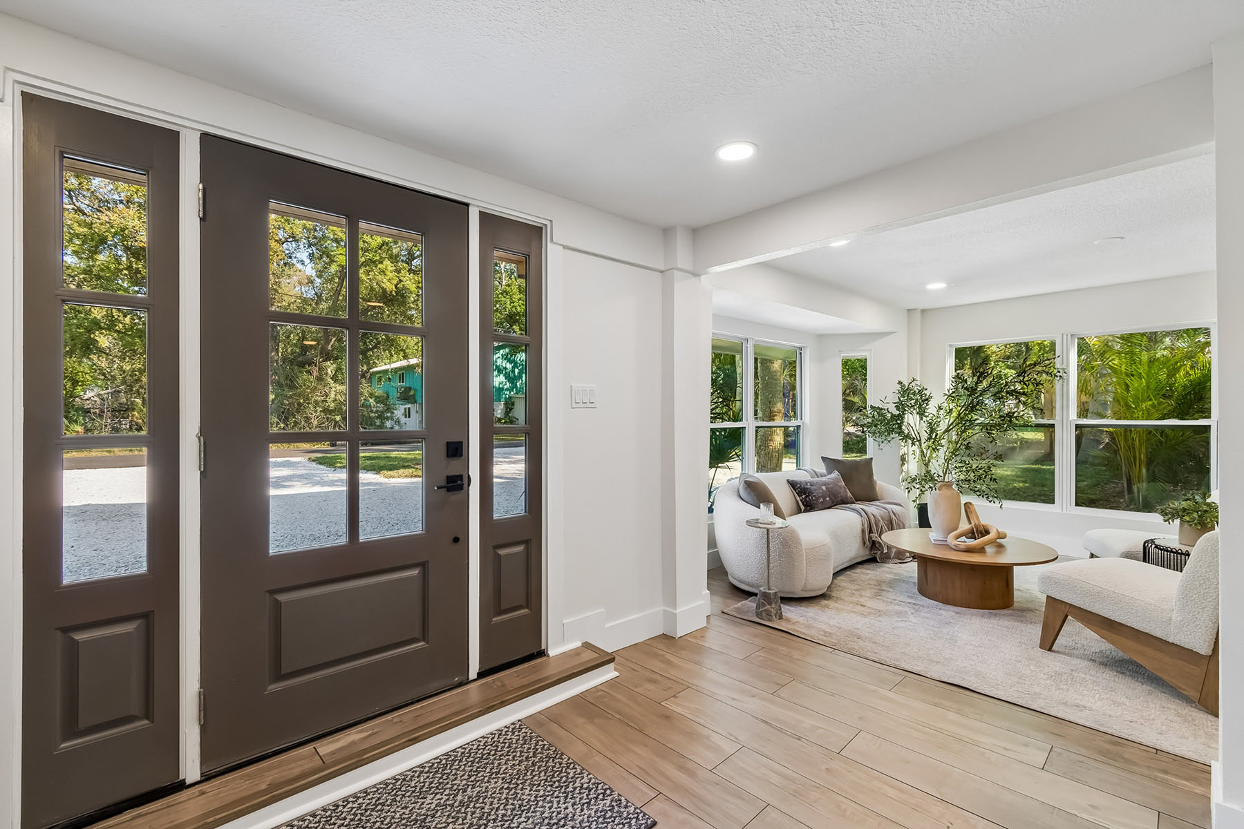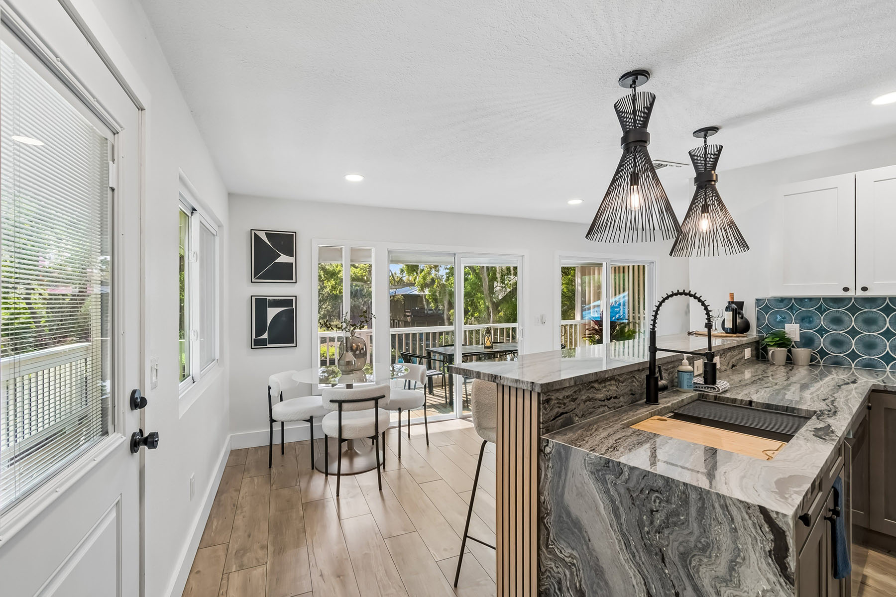 Waterfront living meets refined coastal design in this fully renovated residence with direct access to Mobbly Bay and Tampa Bay. Thoughtfully designed for seamless indoor-outdoor living, the home features sliders that open to a spacious paver lanai complete with fire pit, lighted private dock for a kayak, paddleboard or low draft boat, and room for a future lift ideal for embracing Florida waterfront lifestyle. A second-floor screened deck offers an elevated setting for alfresco dining, framed by tranquil water views and unforgettable sunsets. The main level is anchored by a private primary suite with direct lanai access, a walk-in closet, and a spa-inspired en suite featuring stunning tile, dual vanities and a rainfall shower. A well-appointed family room with dry bar creates the ideal space for entertaining or a relaxed retreat with guest bath. Upstairs, the heart of the home unfolds with an open-concept living and dining area, highlighted by a beautifully appointed kitchen with shaker cabinetry, striking tile backsplash and granite countertops with waterfall edge. Oversized sliders flood the space with natural light and frame picturesque water views, while two additional bedrooms and a full bath complete the upper level. Updates include a tankless water heater, electrical, plumbing, windows, drywall and more (2025), and roof (2014). On a quiet dead-end street in a unique golf cart and horse-friendly community, residents enjoy access to nearby preserves, waterfront recreation, parks, dining and Tampa Bay Downs. Ideally within a short drive to downtown Tampa, MacDill Air Force Base, Tampa International Airport and the Gulf's world-renowned beaches, this property offers a rare combination of privacy, lifestyle and convenience.