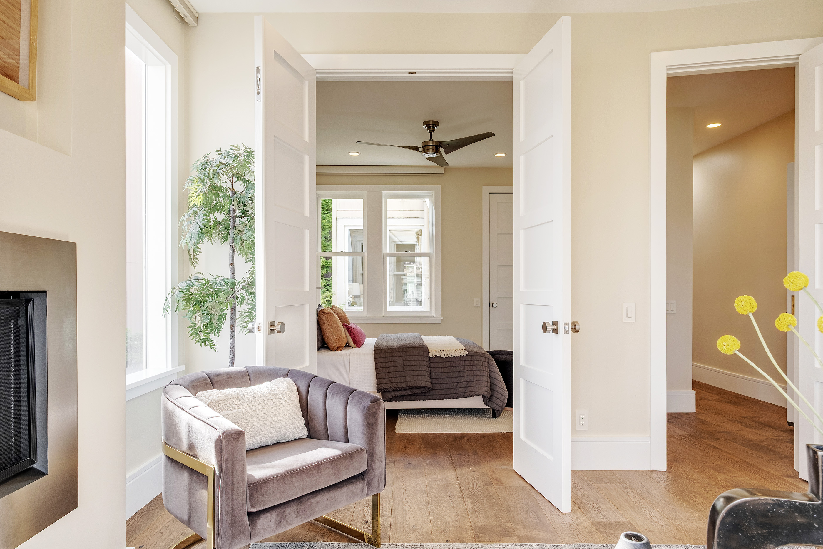 Second bedroom-- separated by a giant barn-style door making both spaces very flexible