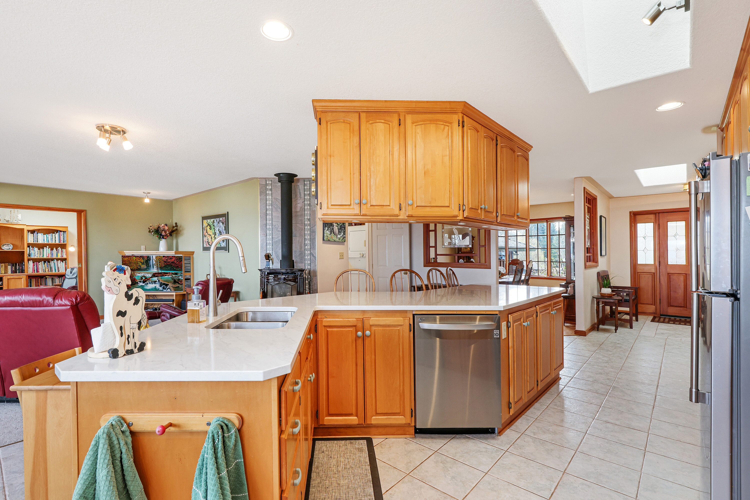 Check out this fabulous Shelter Point four-bedroom four-bathroom main entry home. Sitting on 0.66 acres, an ocean and mountain view rancher has an open floorplan in the main living areas. In the kitchen, quartz countertops, a central island, stainless steel appliances, well-lit with fantastic views. A cozy stove adds to the radiant floor heating. All windows are framed in wood and add to continuity. Well proportioned bedrooms and bathrooms, a bright office, two-car garage and two substantial workshops round out the interior amenities. Outside, a greenhouse, sizeable mature trees, and an expansive yard with grand potential. It is a short jaunt to the ocean and the Storey Creek Golf Course. Campbell River has world class recreation and a growing population. Bring your ideas and start enjoying the west coast lifestyle