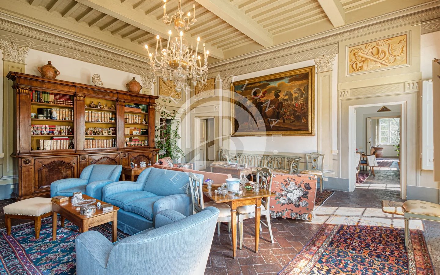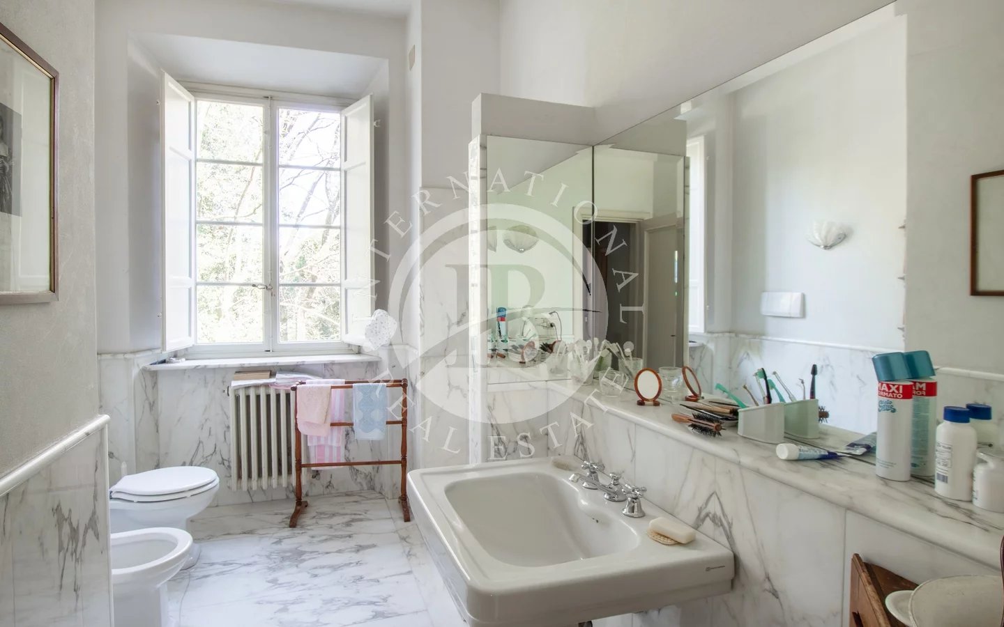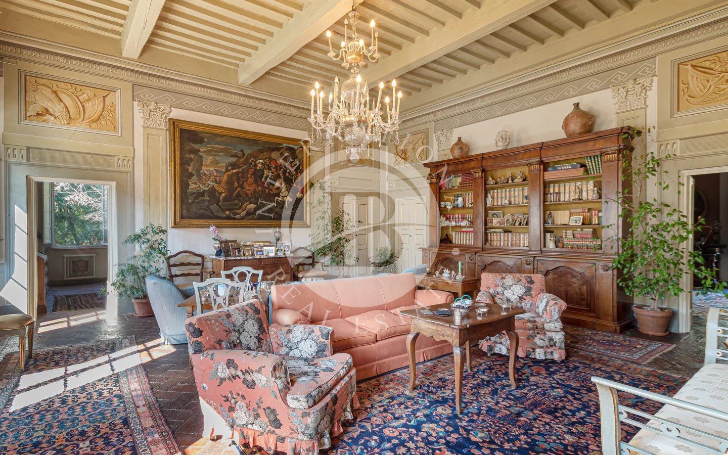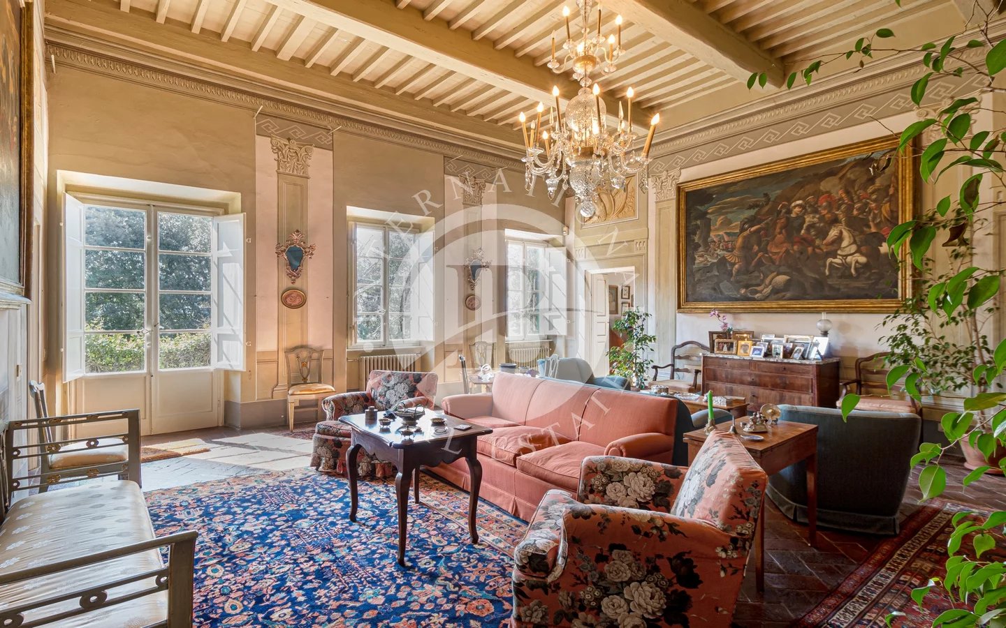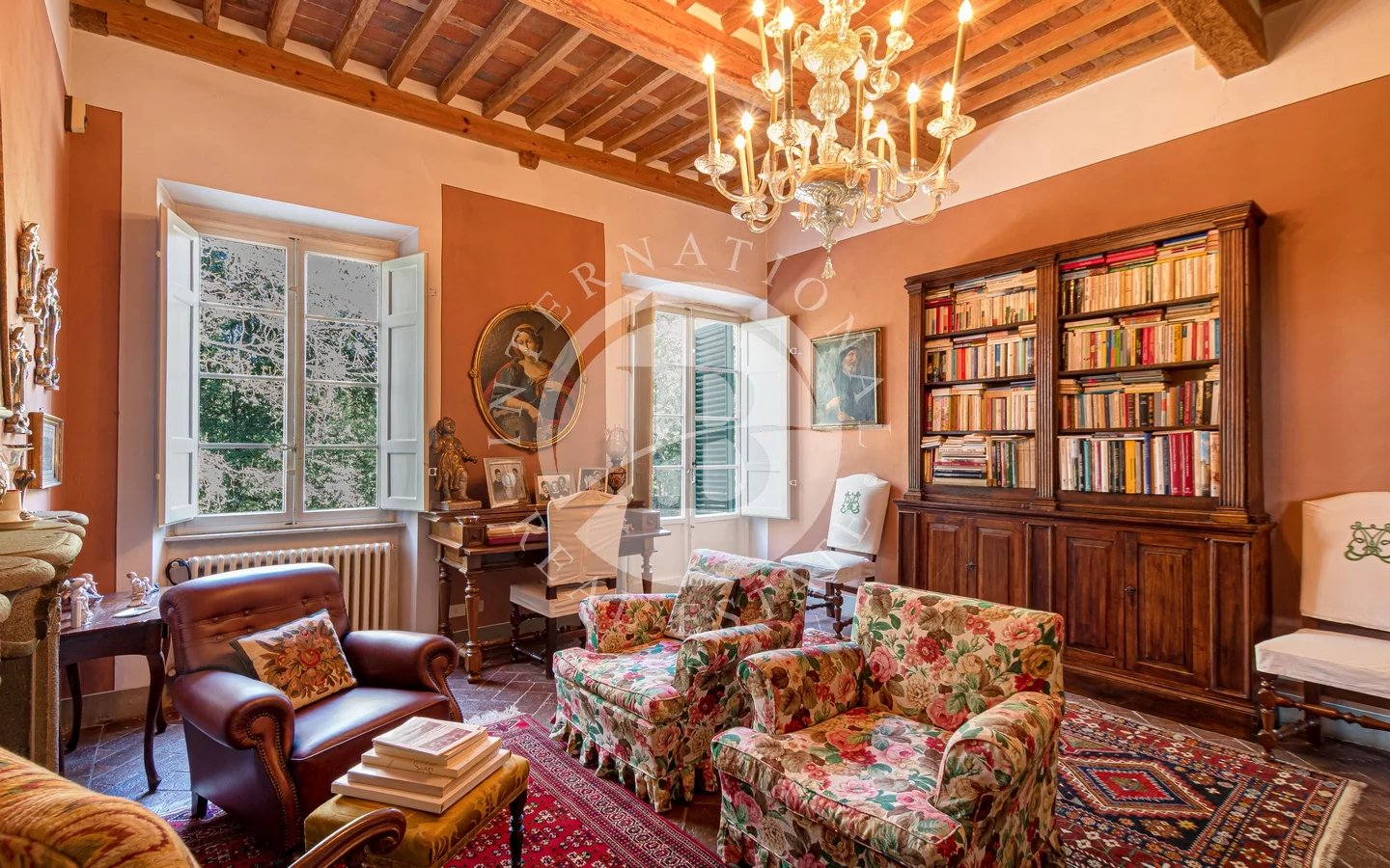 Situated in a privileged panoramic position on the first hills surrounding Lucca's historic center, this prestigious property is a superb example of Lucchese historical architecture. The main residence spans 900 sqm across three levels, all conveniently connected by an internal lift. The property underwent a meticulous restoration in the 1990s, which preserved the original materials and period details, such as the elegant frescoes in the main reception hall and numerous stone fireplaces.The villa stands out for its functional layout: the piano nobile, accessible via an external double staircase, hosts grand reception rooms and an initial sleeping area; the ground and second floors complete the residence with additional living rooms, eat-in kitchens, and several bedrooms.The estate is further enriched by various outbuildings offering significant development potential. These include a large barn and two smaller structures—all currently in need of renovation—providing flexible space for customization. The property is immersed in a 4-hectare park featuring centuries-old trees and a productive olive grove with 220 trees, ensuring maximum privacy and an atmosphere of absolute tranquility just a short distance from the city walls.Lucca is internationally renowned for its imposing Renaissance walls, which remain entirely intact and have been transformed into a striking elevated urban park encircling the entire historic center. Within the walls, the city preserves its untouched medieval fabric, characterized by numerous towers and iconic squares, most notably Piazza dell'Anfiteatro, built upon the ancient remains of a Roman structure and retaining its unique elliptical shape.5 km from Lucca30 km from Pisa Airport38 km from Forte dei Marmi84 km from Florence