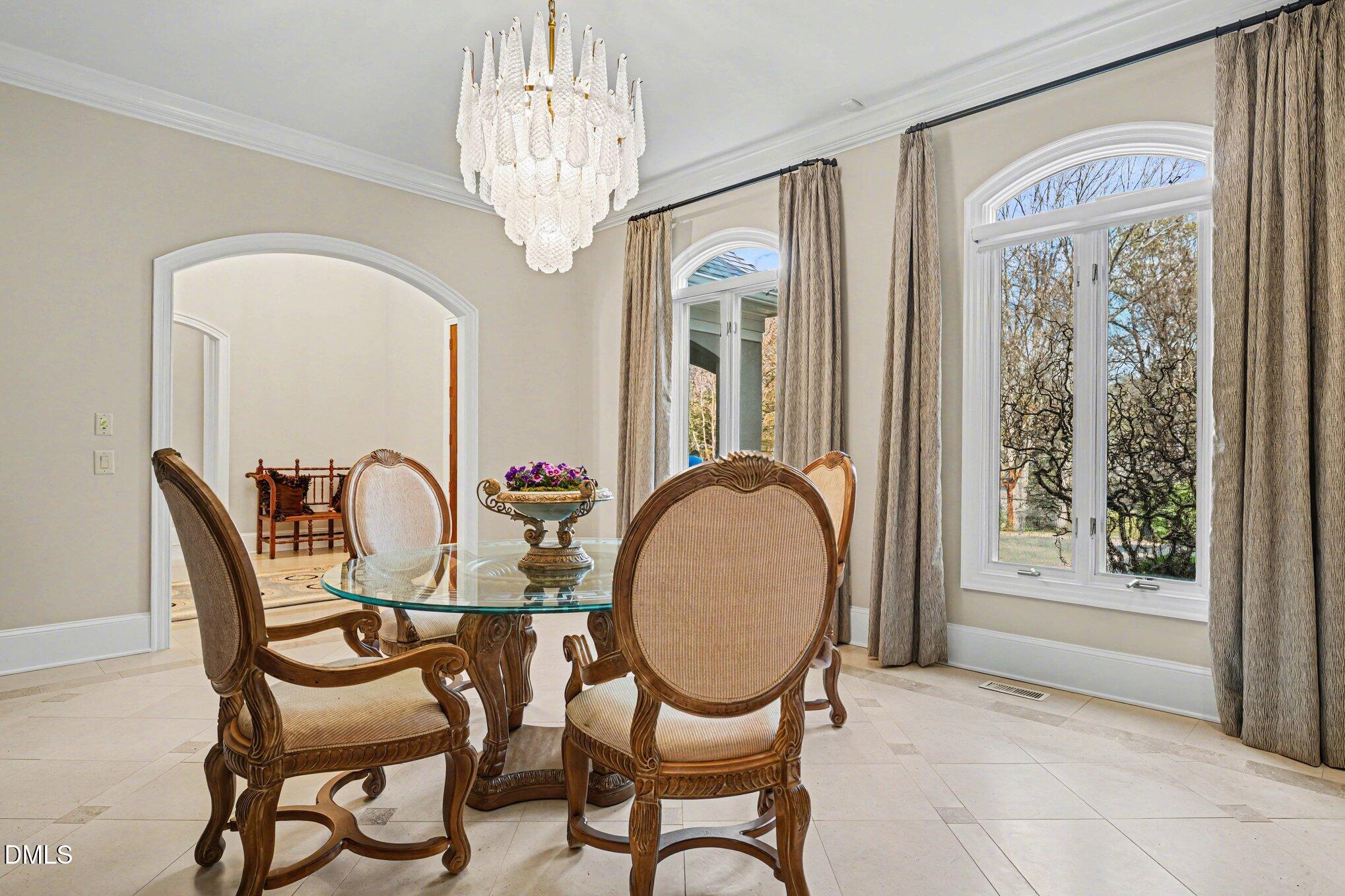 Exceptional custom-built 5,600 sq. ft. ranch home situated on a private .44-acre lot (100' x 195') offering the perfect blend of luxury, functionality, and primarily main-level living. Thoughtfully designed with 10' ceilings on the first floor and 9' ceilings on the second floor, this home provides expansive spaces ideal for both everyday living and entertaining. The chef's kitchen is the centerpiece of the home, featuring a large center island, breakfast room, and high-end appliances including a 64'' built-in Electrolux refrigerator/freezer, Wolf double ovens, Wolf 5-burner gas cooktop, GE microwave, two dishwashers (full-size and drawer), and a warming drawer. Additional functional spaces include a scullery, dedicated kitchen office/workstation, wine cellar, and mudroom. The main-level primary suite offers a private retreat with a spacious walk-in closet featuring a built-in center island with drawers, and a luxurious bath complete with garden tub, curb less walk-in shower, and separate water closet. The suite also provides direct access to the covered back porch. A first-floor guest bedroom with en-suite bath and large closet offers ideal accommodations for visitors. Living spaces include a formal dining room, elegant living room with fireplace and built-ins, and an expansive 20 x 27 family room with wet bar, ice maker and two beverage coolers, perfect for entertaining. The second floor features two large bedrooms connected by a buddy bath, along with a 20 x 25 bonus room with wet bar and beverage coolers, offering flexible space for recreation, media, or additional living. Outdoor living is equally impressive with a screened porch featuring retractable screens, a large stone paver patio, and beautifully landscaped grounds with front and rear irrigation, landscape lighting, and outdoor fountain, creating a private and inviting setting. Additional features include three Trane HVAC systems (2018) with HEPA filtration, two Rinnai tankless water heaters, whole-house Briggs & Stratton Fortress generator, central vacuum system, and DogWatch invisible fence transmitter (no collars). This exceptional property combines quality craftsmanship, thoughtful design, and modern amenities in a highly desirable setting.