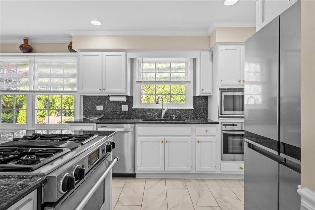 HIGHEST AND BEST OFFERS DUE BY MONDAY, MARCH 30, AT 12 NOON. Rare opportunity for single-level living on coveted Morningside Drive! This exceptional 3,221 sq ft all-brick ranch is set on a picturesque .5-acre lot framed by stately oaks in one of the area's most desirable neighborhoods, commonly known as Whispering Oaks. This gem offers spacious living with an updated, open layout and a private backyard oasis. Inside, enjoy solid oak hardwood floors throughout the living room, family room, dining room, and all bedrooms. The rest of the home (including the brightly finished 1,636 sq ft basement), features new white porcelain tile flooring. The eat-in kitchen is updated with white cabinetry, granite countertops, many newer stainless steel appliances (2023 & 2024), a center island, and a planning desk--perfect for everyday living and entertaining. It is wide open to a welcoming family room with a floor-to-ceiling stone fireplace, built-in bookshelves, and expansive windows overlooking the bluestone patio and huge backyard. The four bedrooms are unusually spacious, and the primary suite offers exceptional closet storage and access to the bluestone patio. Notable upgrades include premium Marvin windows throughout the entire home, a brand new 2025 high-efficiency Carrier furnace and AC, enhanced attic insulation for superior energy efficiency, a new roof and 5" seamless gutters (complete tear-off in 2023). Laundry is currently in the basement with optional hookups in the mudroom. Located in a walkable neighborhood with sidewalks, minutes from Lake Michigan beach access at Fort Sheridan, scenic bike and hiking trails, Metra, Starbucks, and TOP dining options!