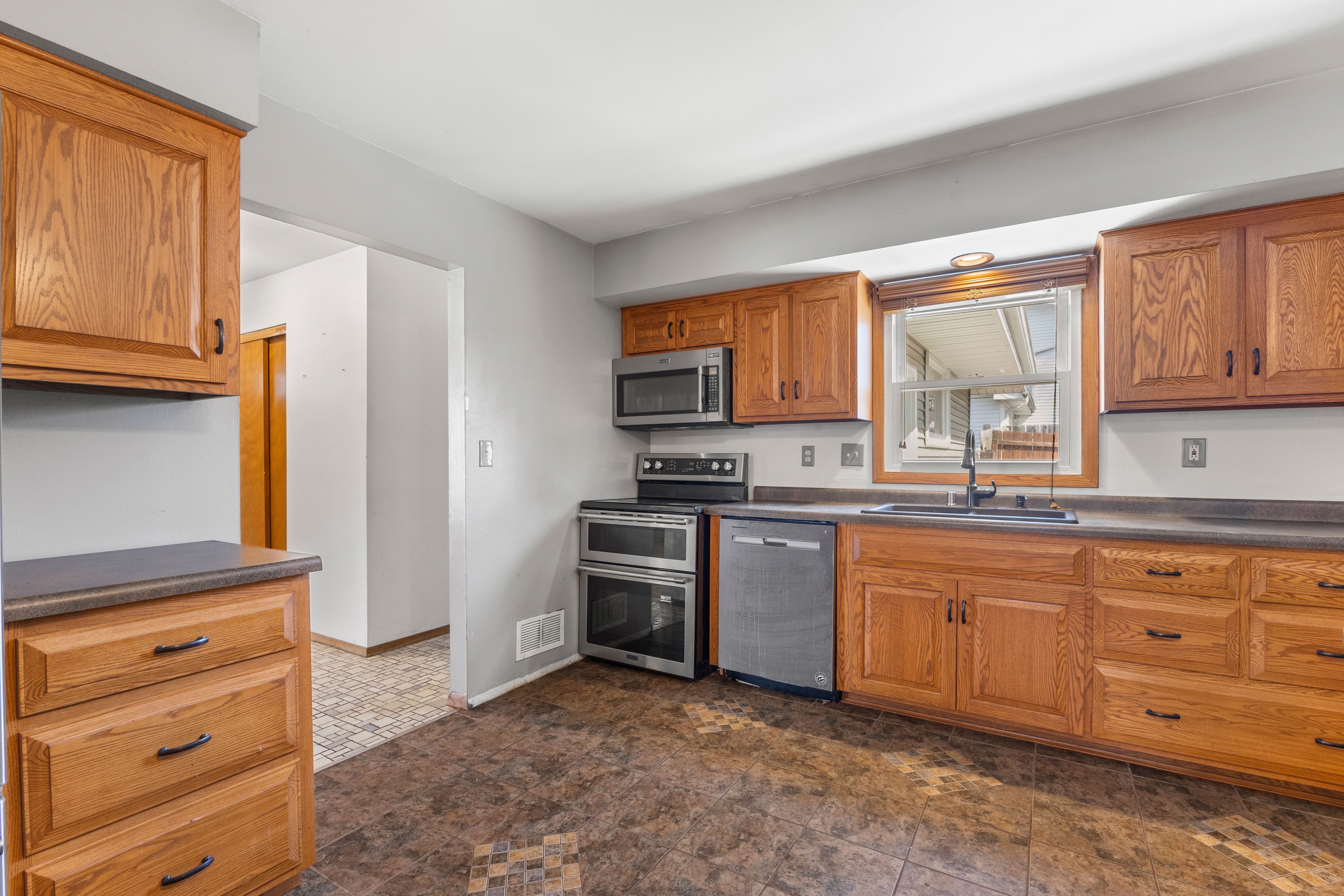Tucked away on a quiet, no-through street near the Menomonee River, this three-bedroom, two-bathroom brick ranch offers space, comfort, and a peaceful setting. The inviting home features hardwood floors in the living and dining rooms, with potential hardwood in the bedrooms. The kitchen offers plenty of storage and room for a center island. The primary bedroom includes a private bath with tile shower. The nearly finished lower-level adds 700 square feet of living space, perfect for a family room, home office or gym. Step outside to a huge, fenced yard with newly expanded concrete patio, hot tub, and fire pit. Peace of mind comes with updated copper plumbing, electrical, and sump pump; this home is just waiting for your modern updates. Complete with an attached garage and an off-the-beaten-path location, lots of potential here!
