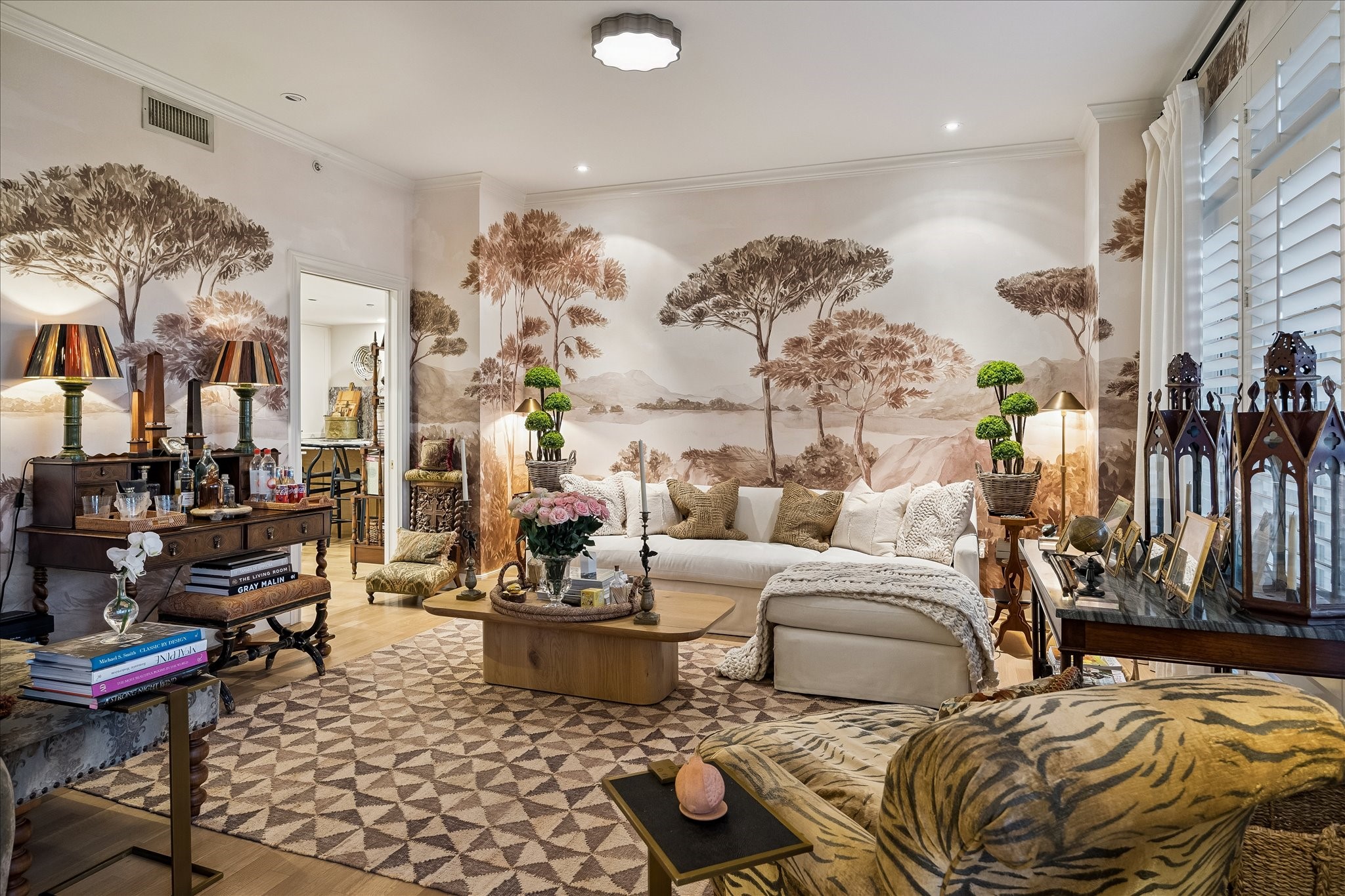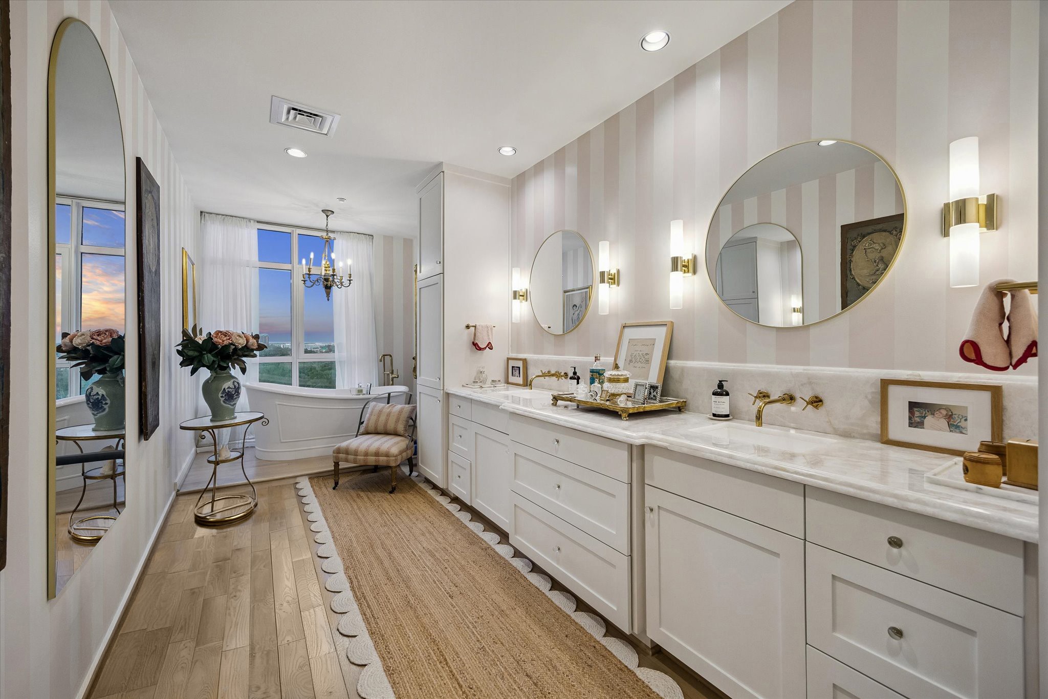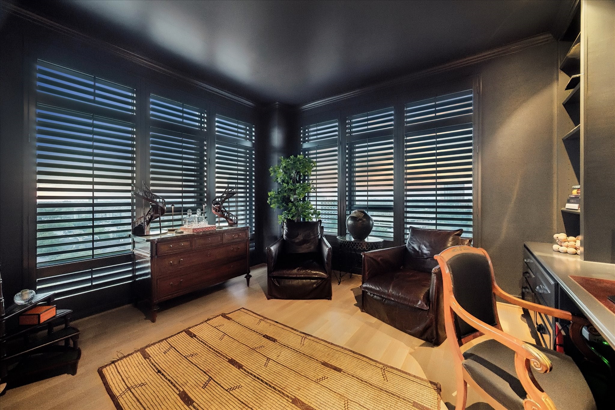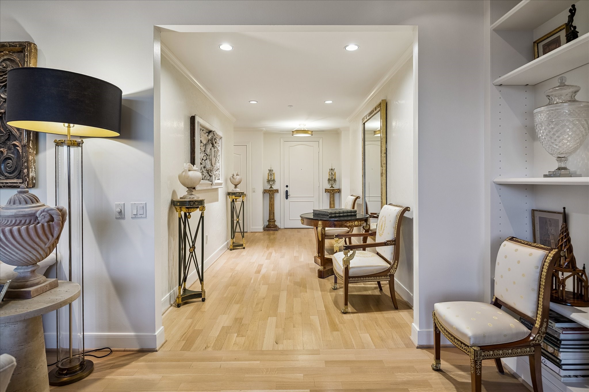 Chic 10th floor residence offering elegant and timeless European flare.Fully renovated with Segreto plaster accents,hardwoods,custom draperies,designer fixtures & lighting.Stunning Island kitchen with La Cornue induction range w/double ovens,Sub Zero,exquisite Viola Carrera slab marble,Chambord farmhouse sink & custom cabinetry w/abundant storage.Dining area w/private balcony access.Formal entry,expansive living room w/built-in shelving,den w/designer landscape mural,balcony access,custom shutters & library w/built-in desk,shelving & cabinetry.Luxurious primary suite w/sitting area,island walk-in closet,renovated primary bathroom w/natural white Onyx counters,freestanding tub & separate shower.Beautifully manicured grounds, fitness center,pool, tennis,dog park,private walking tralls,party rooms all within walking distance to shopping & dining at Uptown Park. Full service staff - 24 hour guarded entry, doorman, valet, porter & concierge. Panoramic Northwest sunset views.