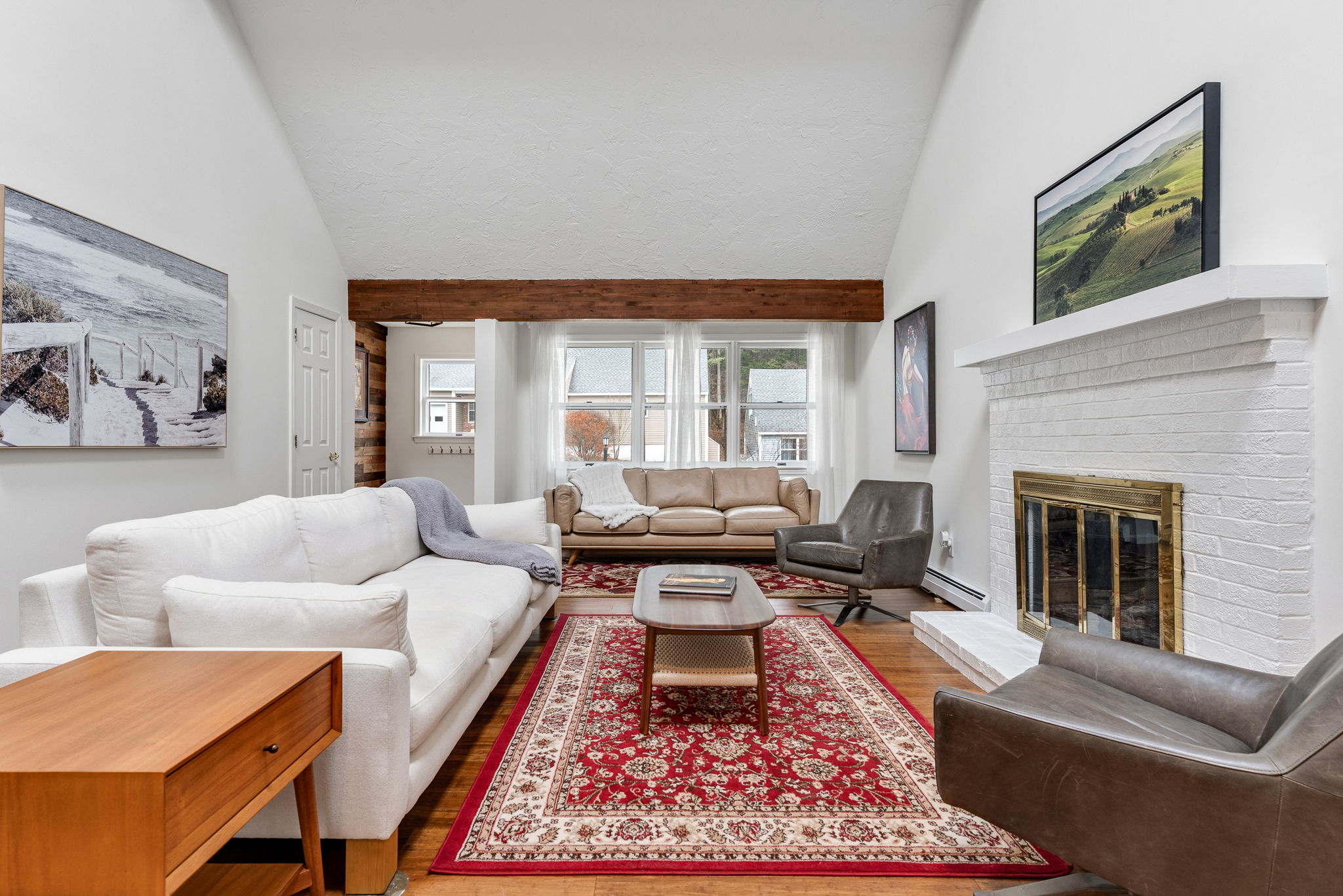 Pinewood Village is a highly desirable neighborhood located at 6 Oak Ridge Road in Lebanon. It is conveniently situated just under 1.5 miles from the Hanover Inn. This spacious, bright home offers an ideal blend of comfort and convenience. Guests enter through a welcoming foyer with stone floors into a large living and dining area featuring a gas fireplace and hardwood floors. Two sizable skylights flood the space with natural light, highlighting its openness. The home includes a kitchen with skylights, stainless steel appliances, a standalone prep table, ample cabinet space, and breakfast nook. The primary suite features an en-suite full bathroom and a walk-in closet. A second bedroom with a hallway full bath completes the main level. Upstairs, a large, flexible space with another full bath and a walk-in closet is perfect for a third bedroom, home office, guest quarters, or media room. All bedrooms and the living area feature hard wood floors. Upgrades include a Wi-Fi ready Energy Star Viessmann boiler with an efficiency rating of 95 and three mini-split units. The full basement offers ample storage, a workshop, or a hobby area, with outdoor access. The one-car garage provides direct access to the kitchen. A private back deck creates a peaceful outdoor dining or relaxation spot. The Advance Transit Sachem/Gould Road bus stop is conveniently located across the street from Oak Ridge Road. This is a beautiful home — in move-in condition. It’s in an excellent location an extremely well-run condo development community.