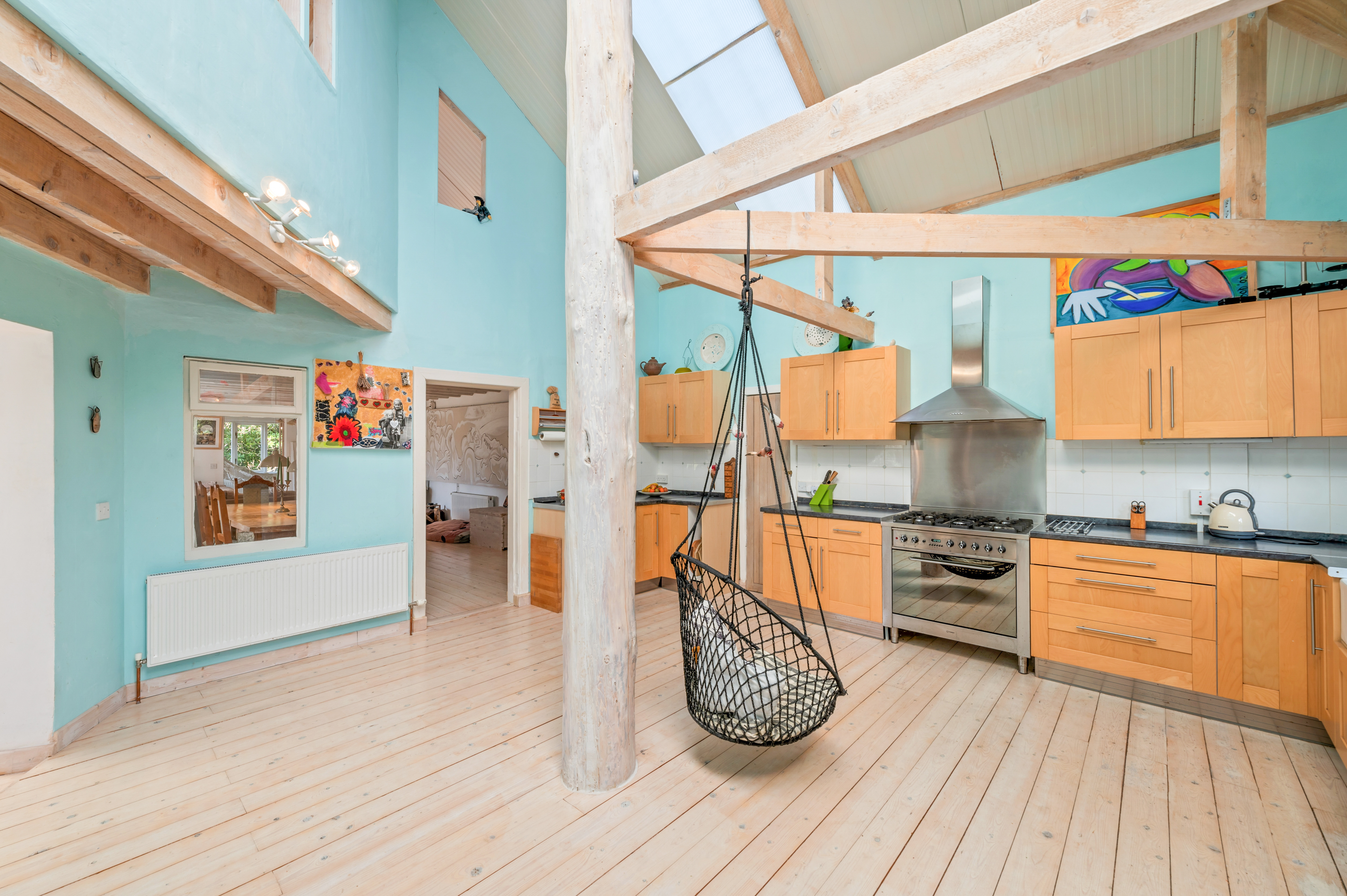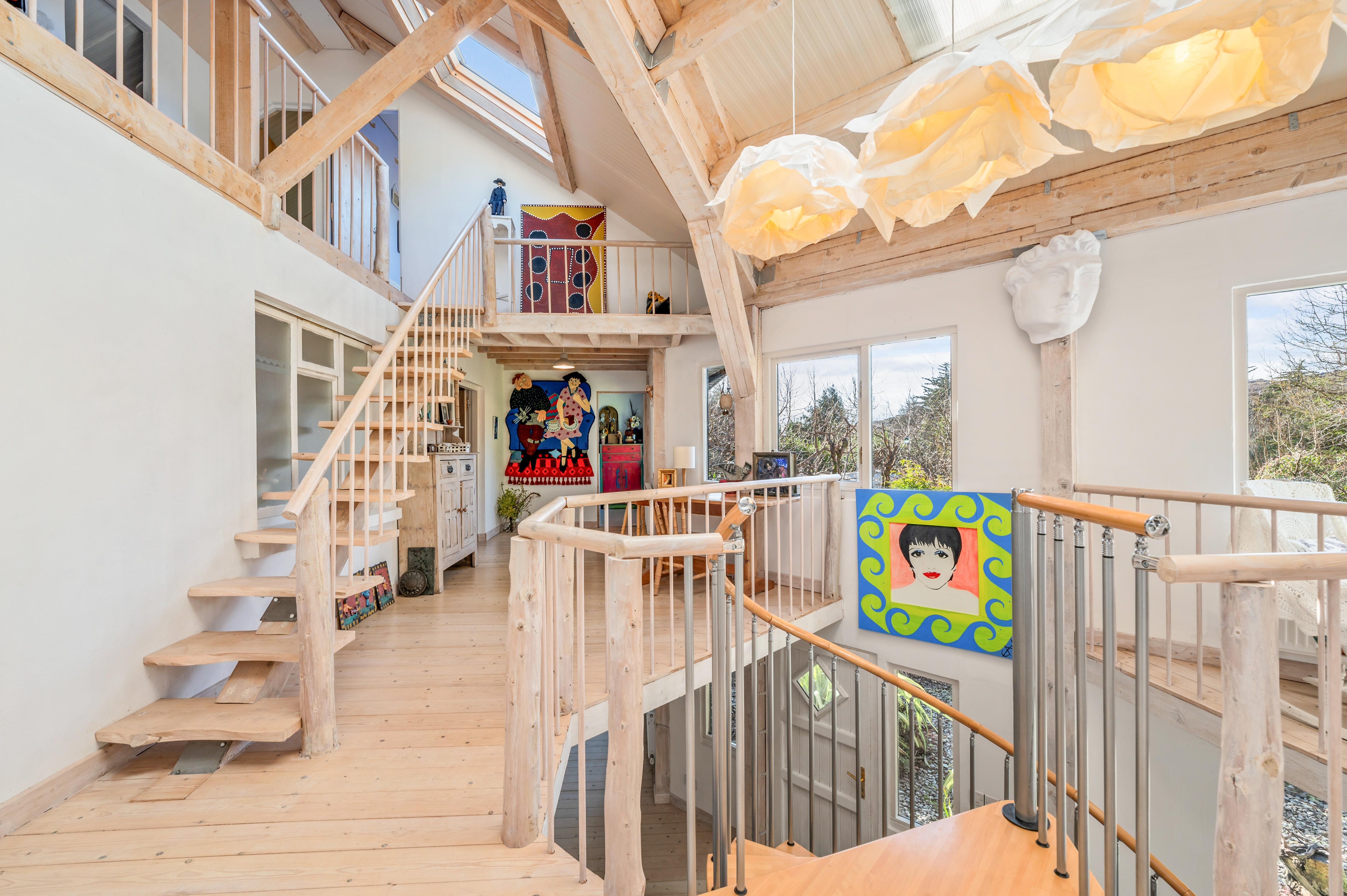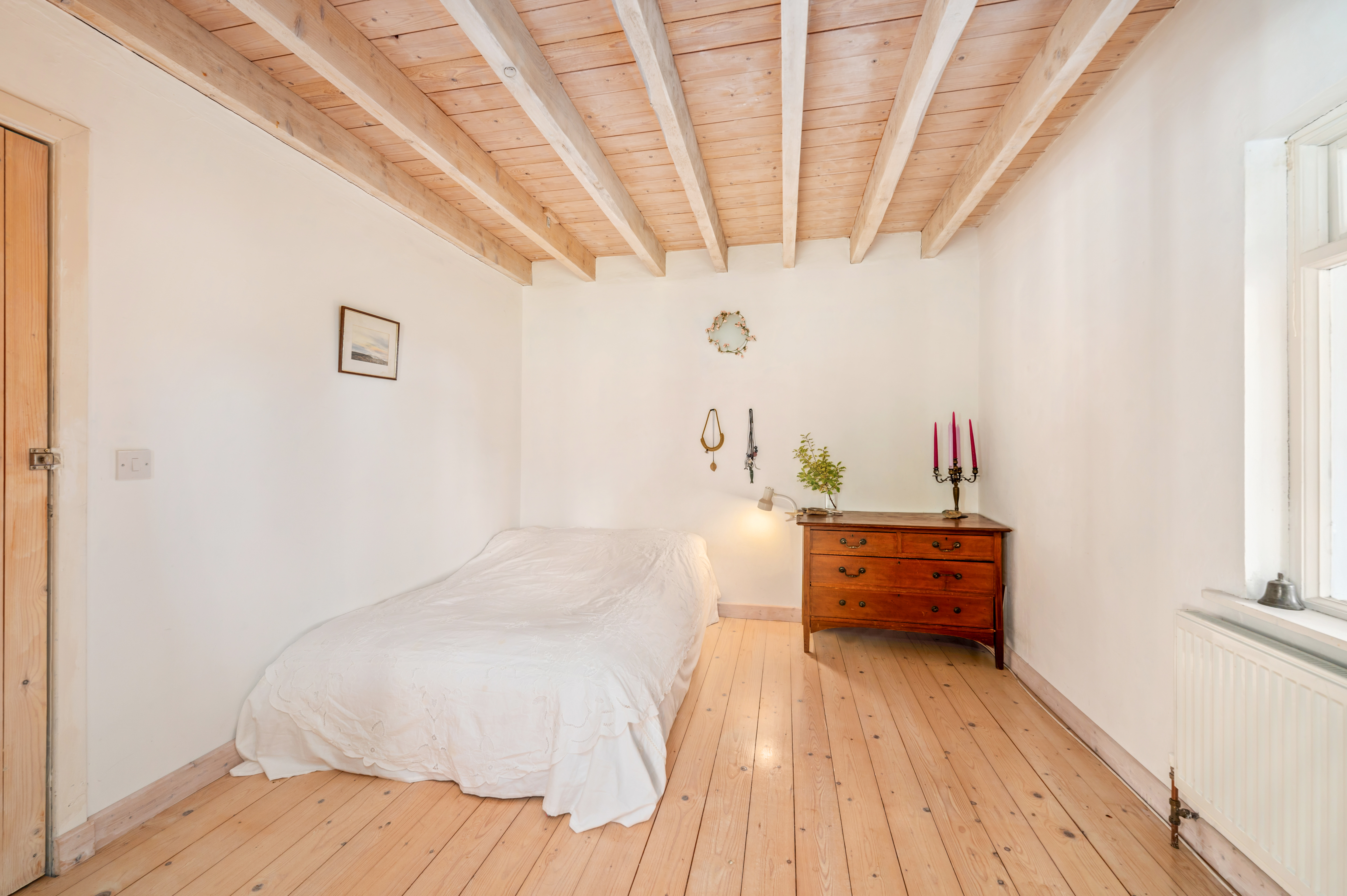 The second floor continues the theme of space and light, with three further bedrooms, a bathroom, a storeroom, and a large adaptable open area that could be used as a studio, reading space, or additional living accommodation.