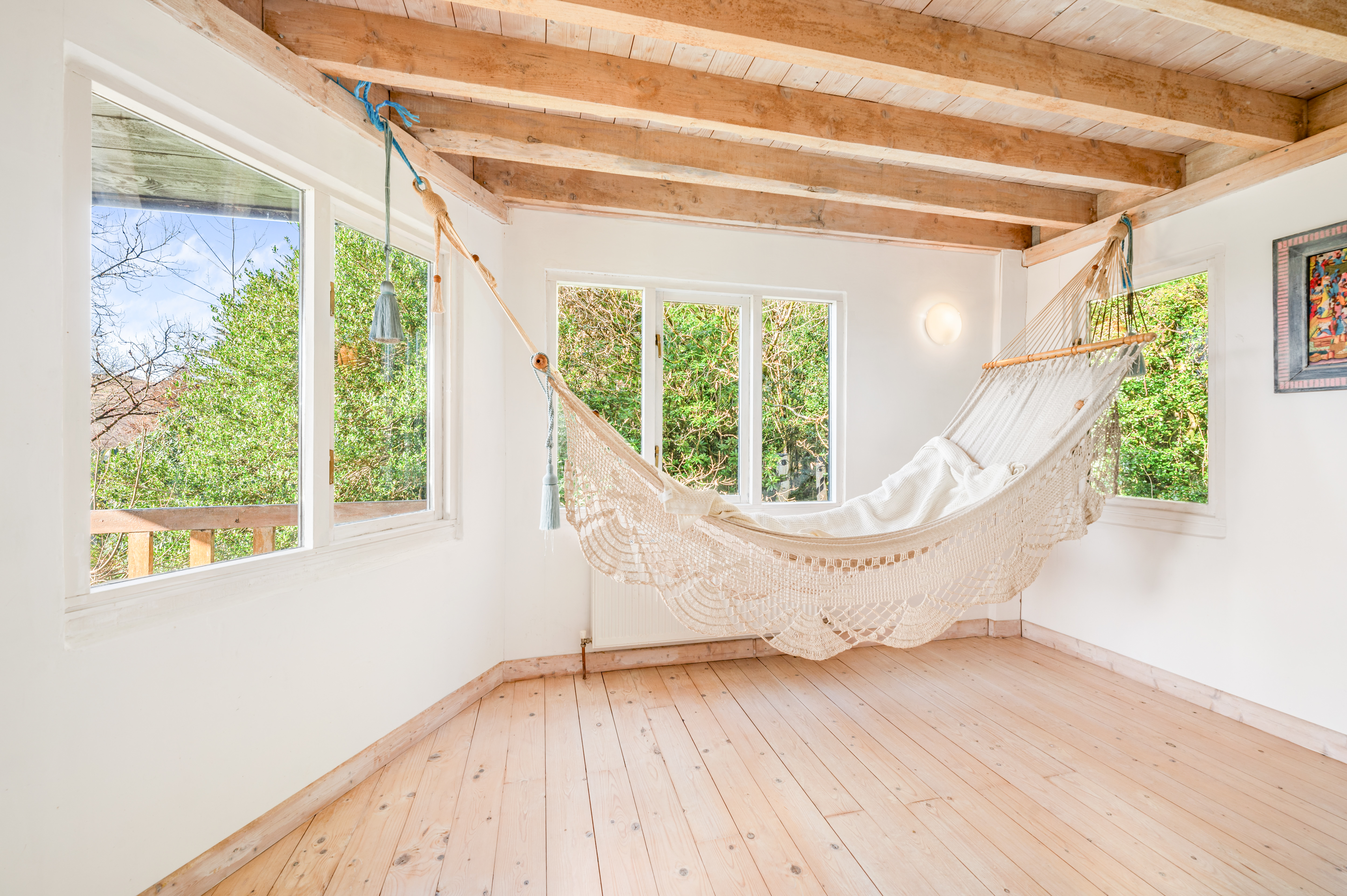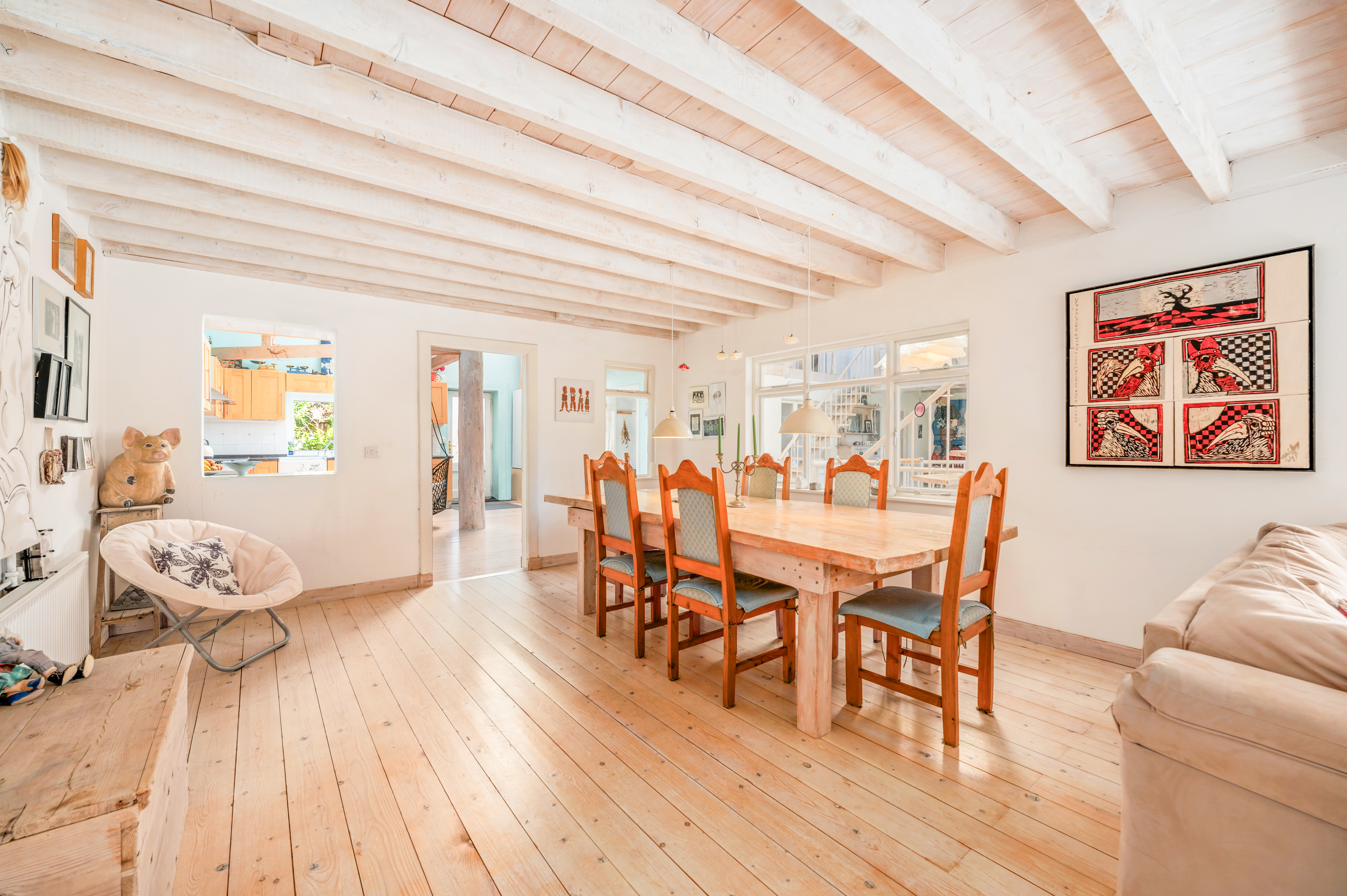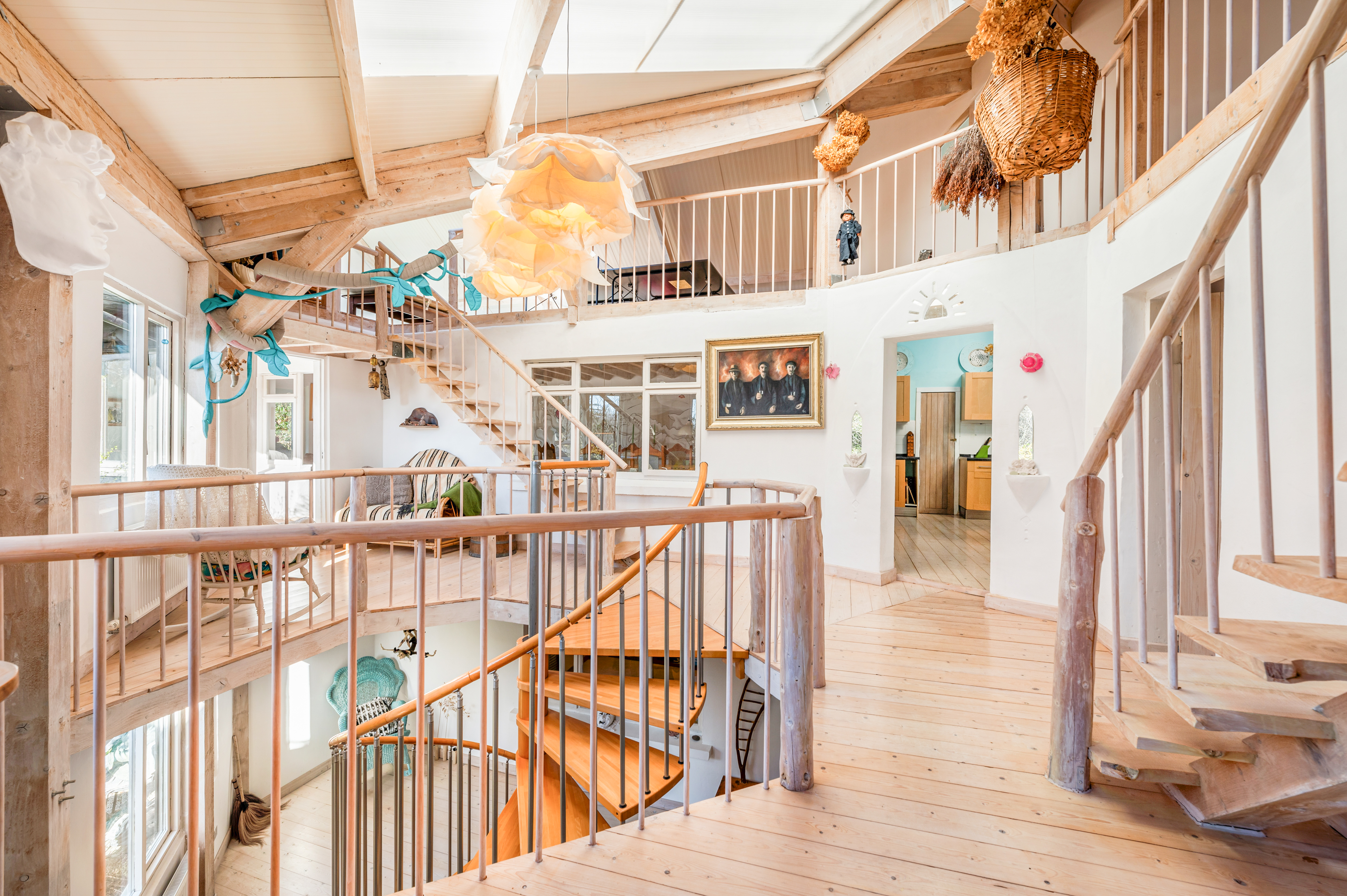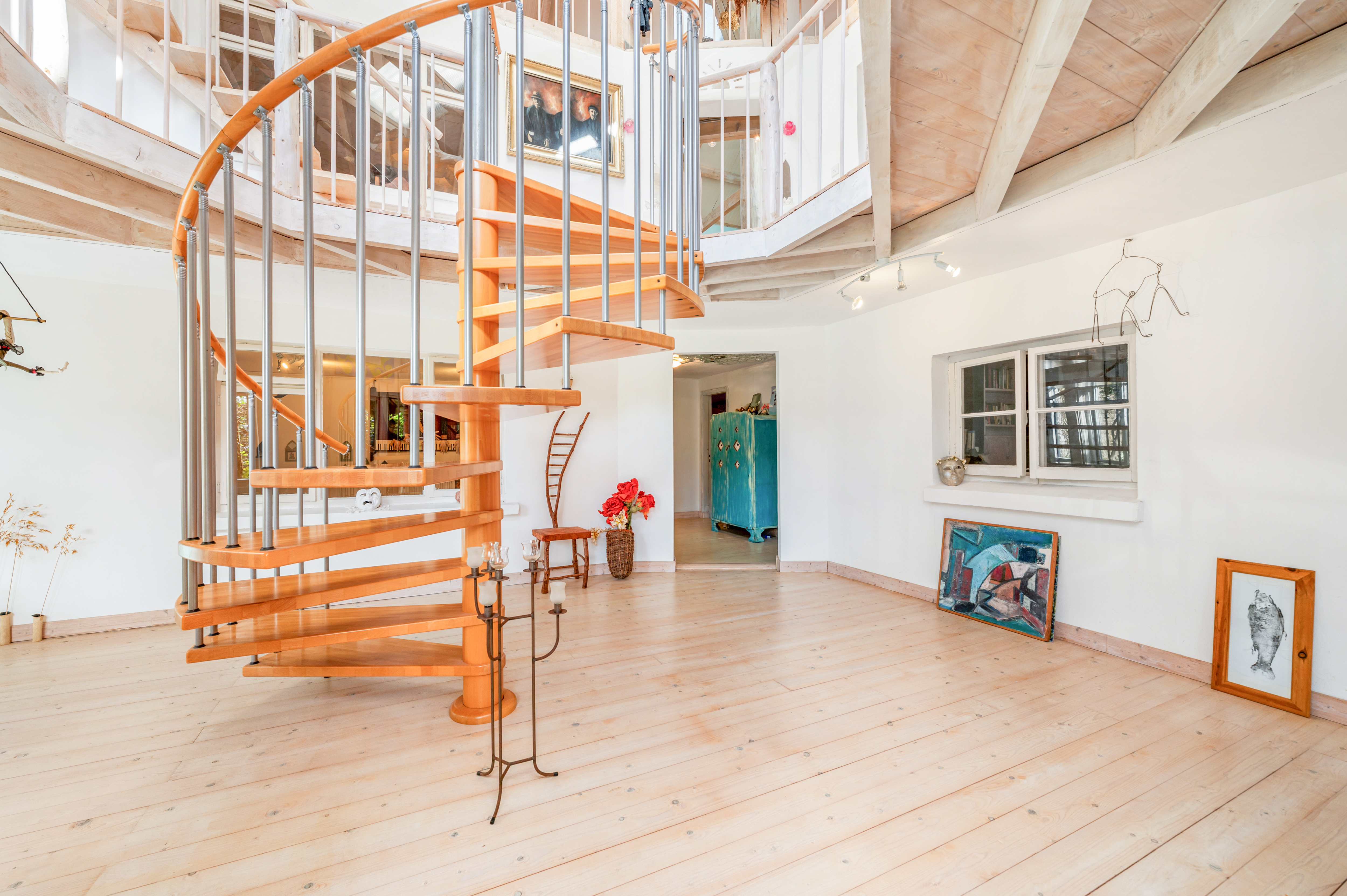 The second floor continues the theme of space and light, with three further bedrooms, a bathroom, a storeroom, and a large adaptable open area that could be used as a studio, reading space, or additional living accommodation.