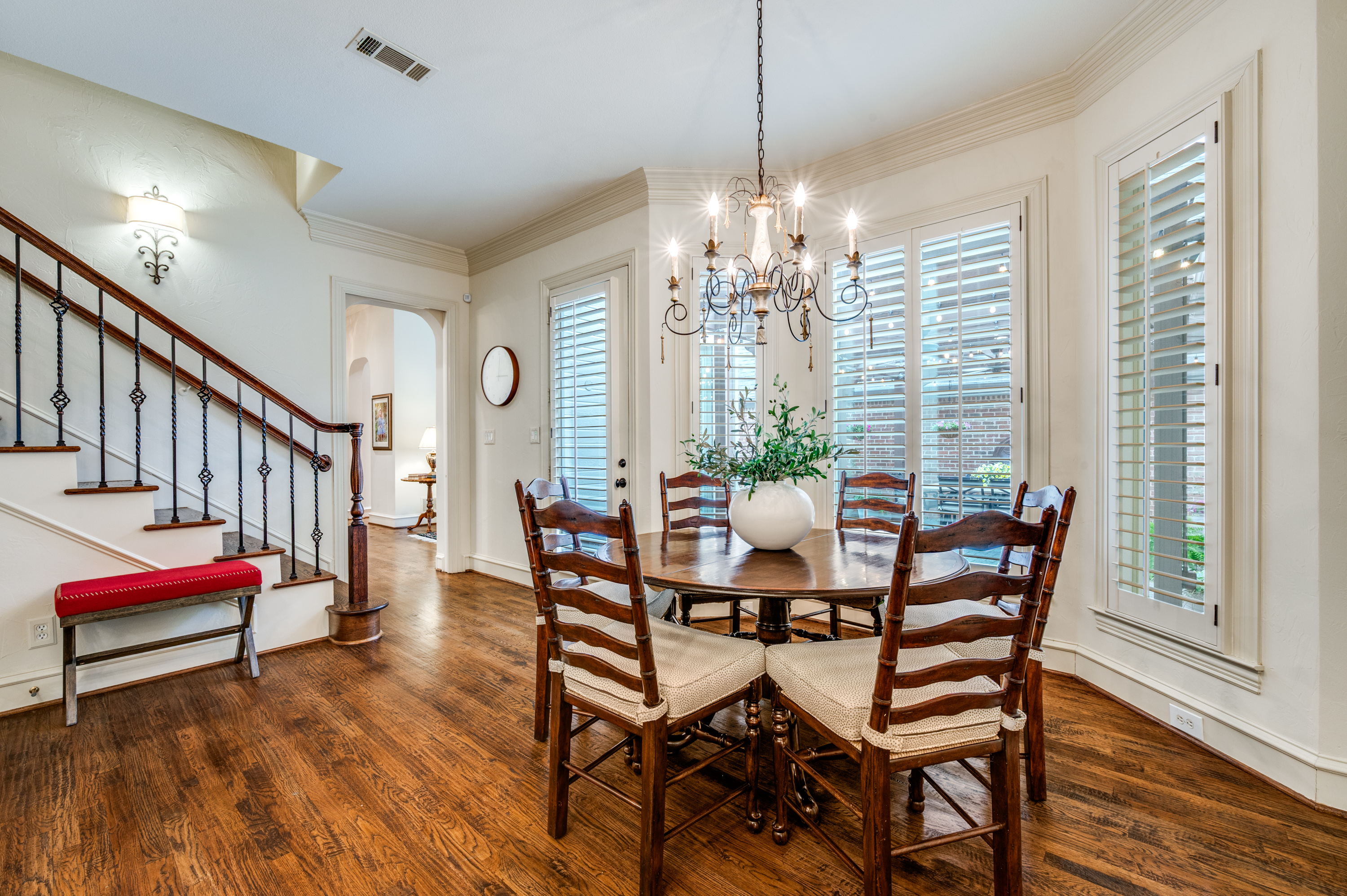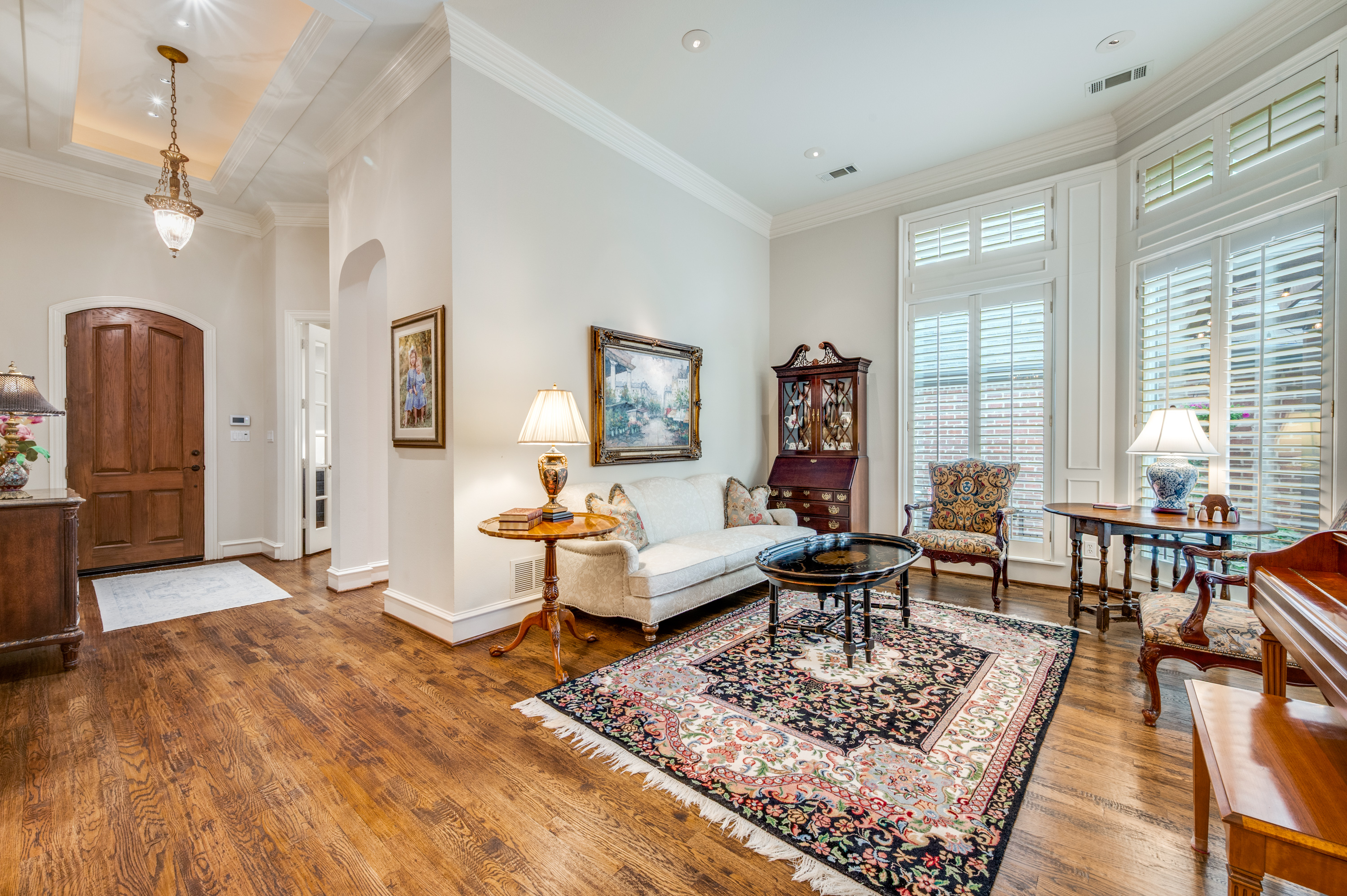Tucked within the coveted Willow Bend Polo Estates, this refined residence blends timeless architecture with modern comfort in one of Plano’s most desirable settings. Surrounded by lush green spaces and minutes from premier shopping, dining, and major thoroughfares, the home offers both convenience and a sense of quiet retreat.Inside, soaring ceilings and rich architectural details create an inviting, light-filled atmosphere. The reimagined chef’s kitchen serves as the heart of the home, appointed with granite surfaces, a Viking six-burner gas range, dual refrigerator drawers, and natural light streaming through overhead skylights. It opens seamlessly to expansive living spaces enhanced by plantation shutters, custom millwork, designer lighting, and a charming window seat. The main level is anchored by a private primary suite, thoughtfully designed with skip trowel textured walls, an antique glaze finish, and a spa-inspired bath adorned in marble. A dedicated study offers flexibility for work or retreat, while the designer powder bath makes a statement with custom wallpaper, curated lighting, and refined fixtures. Upstairs, two spacious bedrooms are connected by a beautifully appointed Jack-and-Jill bath, creating a comfortable and private retreat.Outdoors, an expanded courtyard, extended patio, upgraded grilling area, and tranquil water feature create an ideal setting for both intimate evenings and effortless entertaining. Throughout the home, every surface has been thoughtfully elevated designer lighting, bespoke wallpaper, refined hardware, and curated finishes come together to create a cohesive and polished aesthetic. Extensive enhancements and system improvements further ensure a truly turnkey experience, balancing beauty with everyday ease. Additional highlights include a two-car garage with generous, accessible storage.Opportunities in this highly sought-after community are rare, and when they do arise, they are quickly secured.