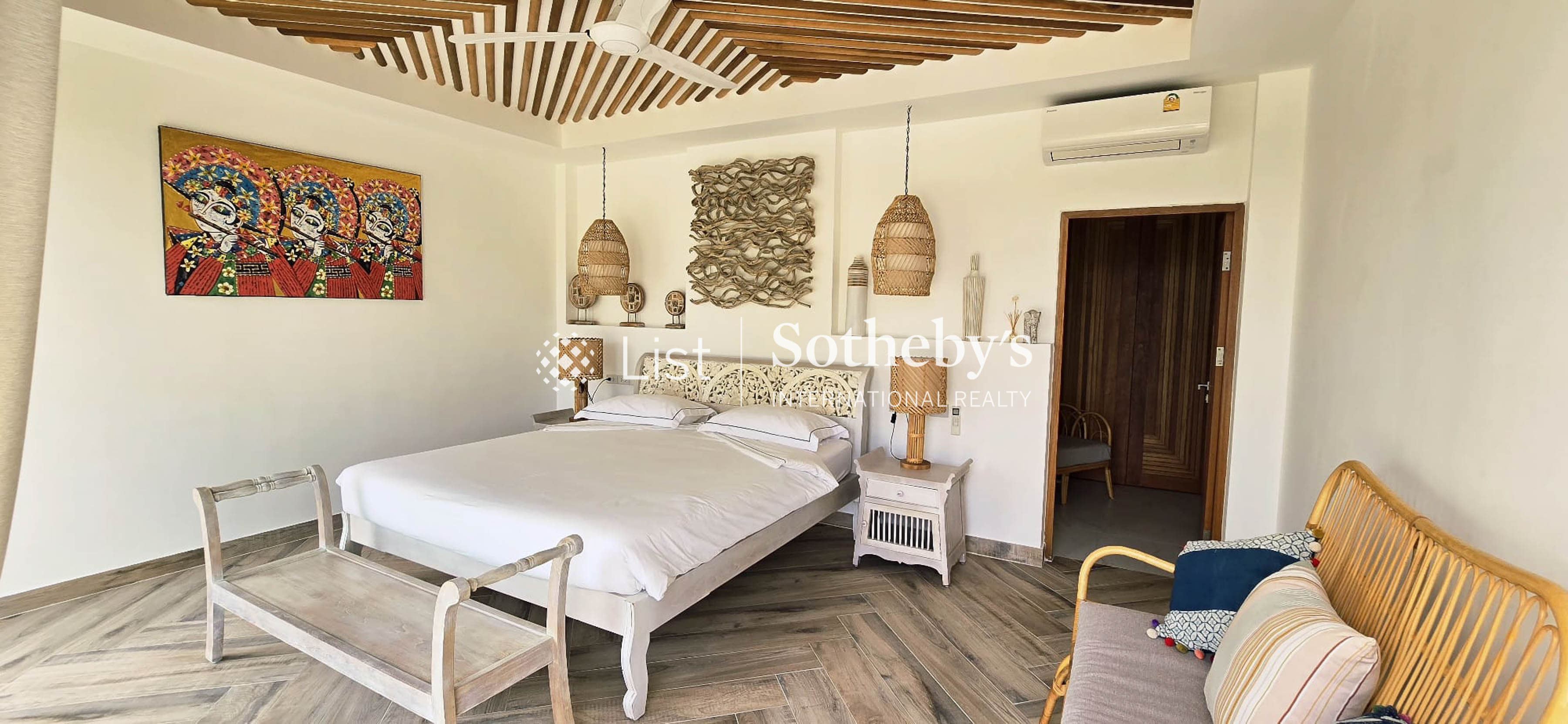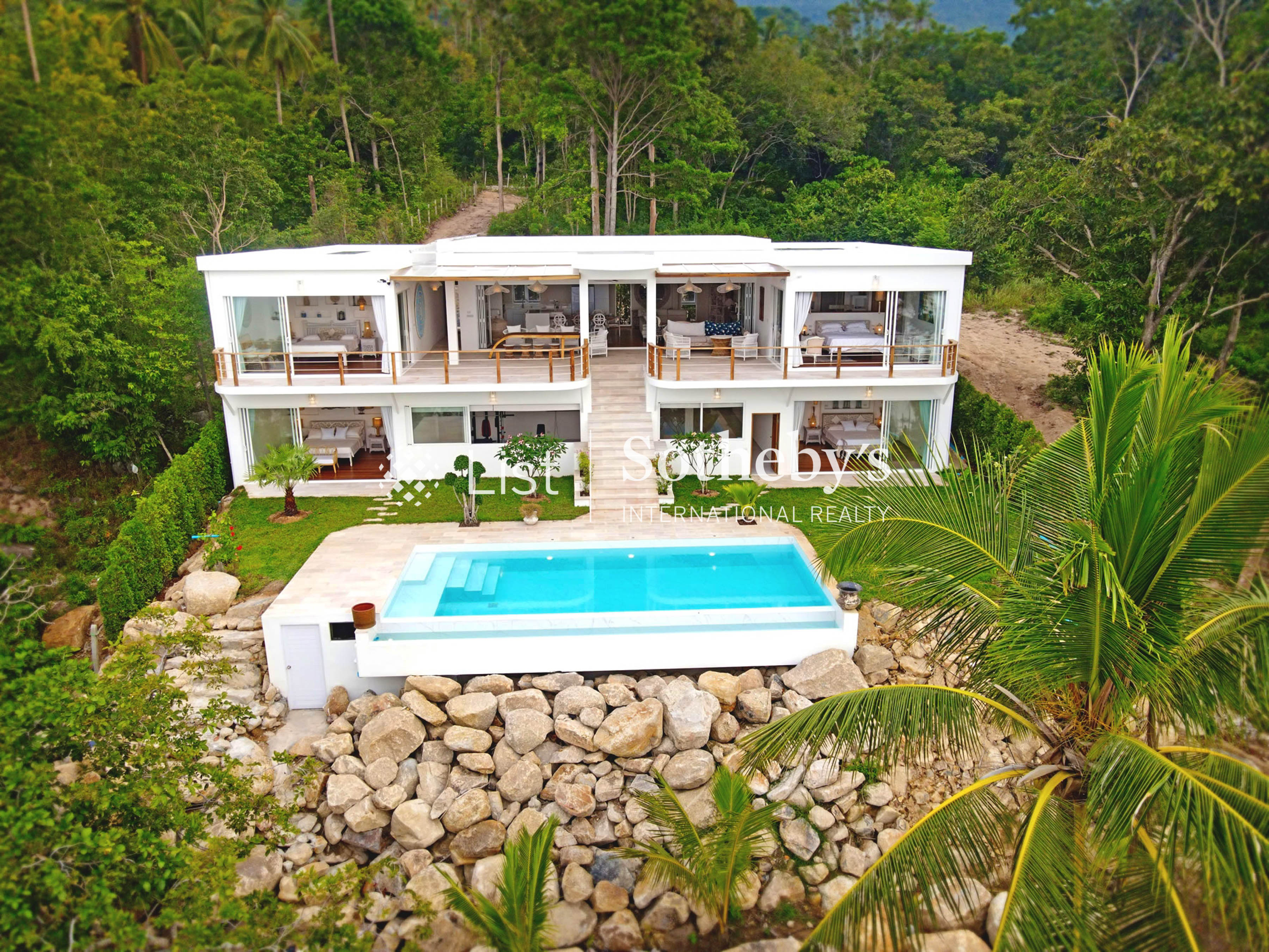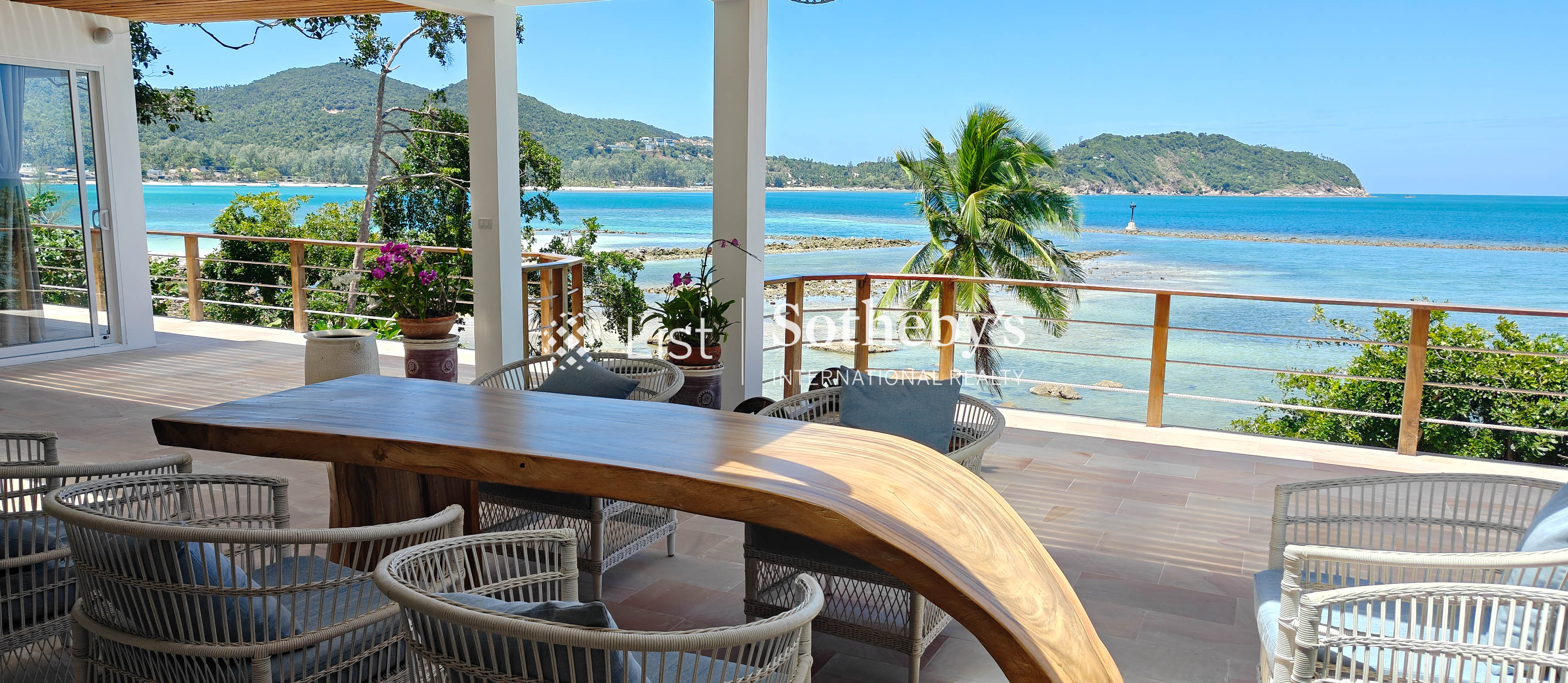 An Enchanting Beachfront Residence | Chaloklum, Koh Phangan Set along the quiet shores of Chaloklum, this private beachfront villa offers a rare stretch of approximately 24 metres of direct frontage, opening onto calm, swimmable waters and uninterrupted sea views. Positioned on a land plot of approximately 600 sqm, the residence offers around 360 sqm of built space, complemented by generous terraces and landscaped outdoor areas designed for relaxed coastal living. The villa features four en-suite bedrooms, arranged to provide both privacy and fluid connection to the surrounding environment. The main living areas open toward the sea, creating a natural extension between indoor spaces and the beachfront setting. At the heart of the outdoor areas, a 4 x 10 metre swimming pool is framed by approximately 150 sqm of landscaped garden, while terraces of around 80 sqm offer multiple spaces for dining, entertaining, or simply enjoying the horizon. Additional features include a private fitness room and cinema room, enhancing the property’s functionality as both a full-time residence and a refined island retreat. The villa has been carefully maintained and presents as a genuine private home, with a sense of warmth and continuity that distinguishes it from typical rental-oriented properties. With its combination of direct beach access, substantial frontage, and balanced living spaces, this property represents a rare opportunity to acquire a beachfront residence in one of Koh Phangan’s most established coastal enclaves. Asking Price: THB 53,000,000
