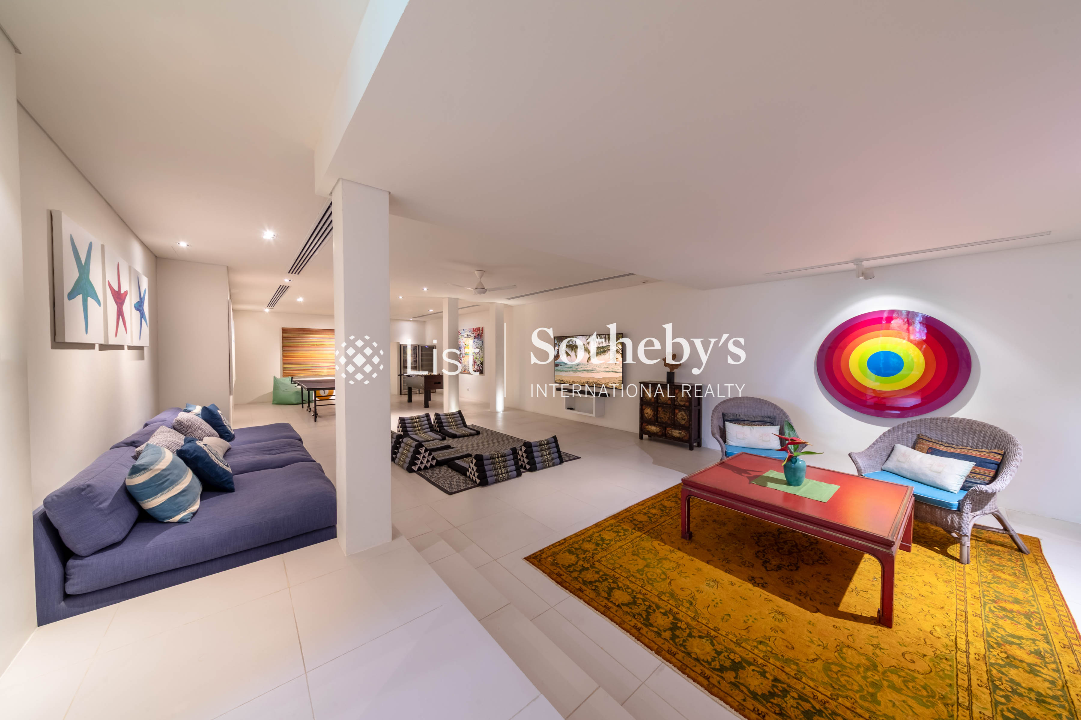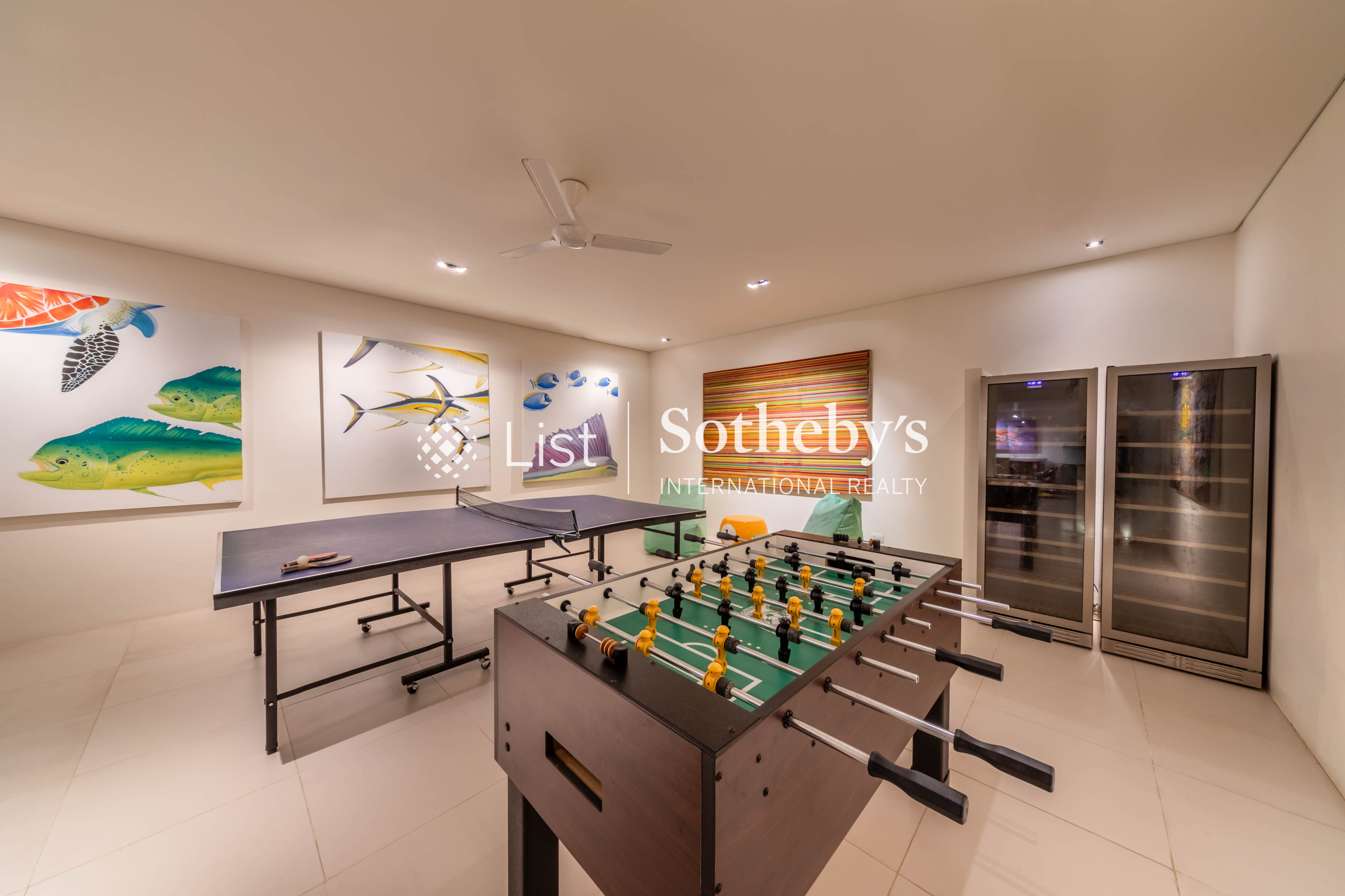 s private chef, while a nearby media and family room gives guests space to binge-watch their favorite shows and movies. Leisurely indoor pursuits come in the form of books, board games, foosball and table tennis, while the estate beach access allows guests the chance to try out kayaking and paddleboarding using the villa