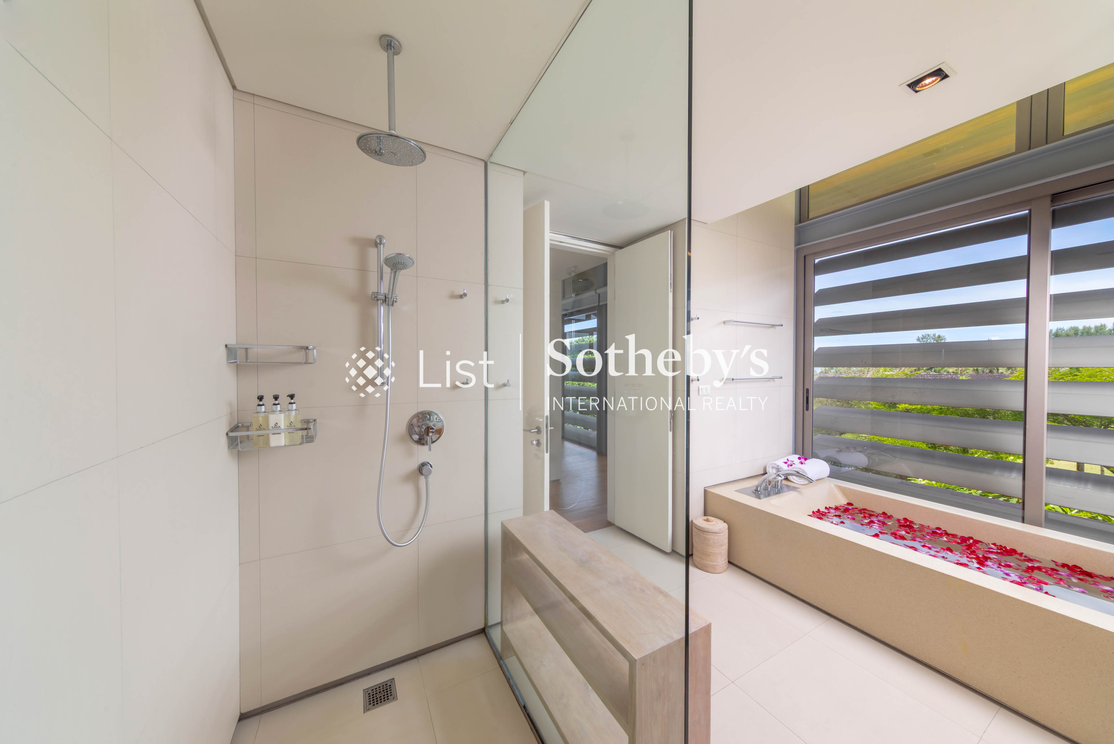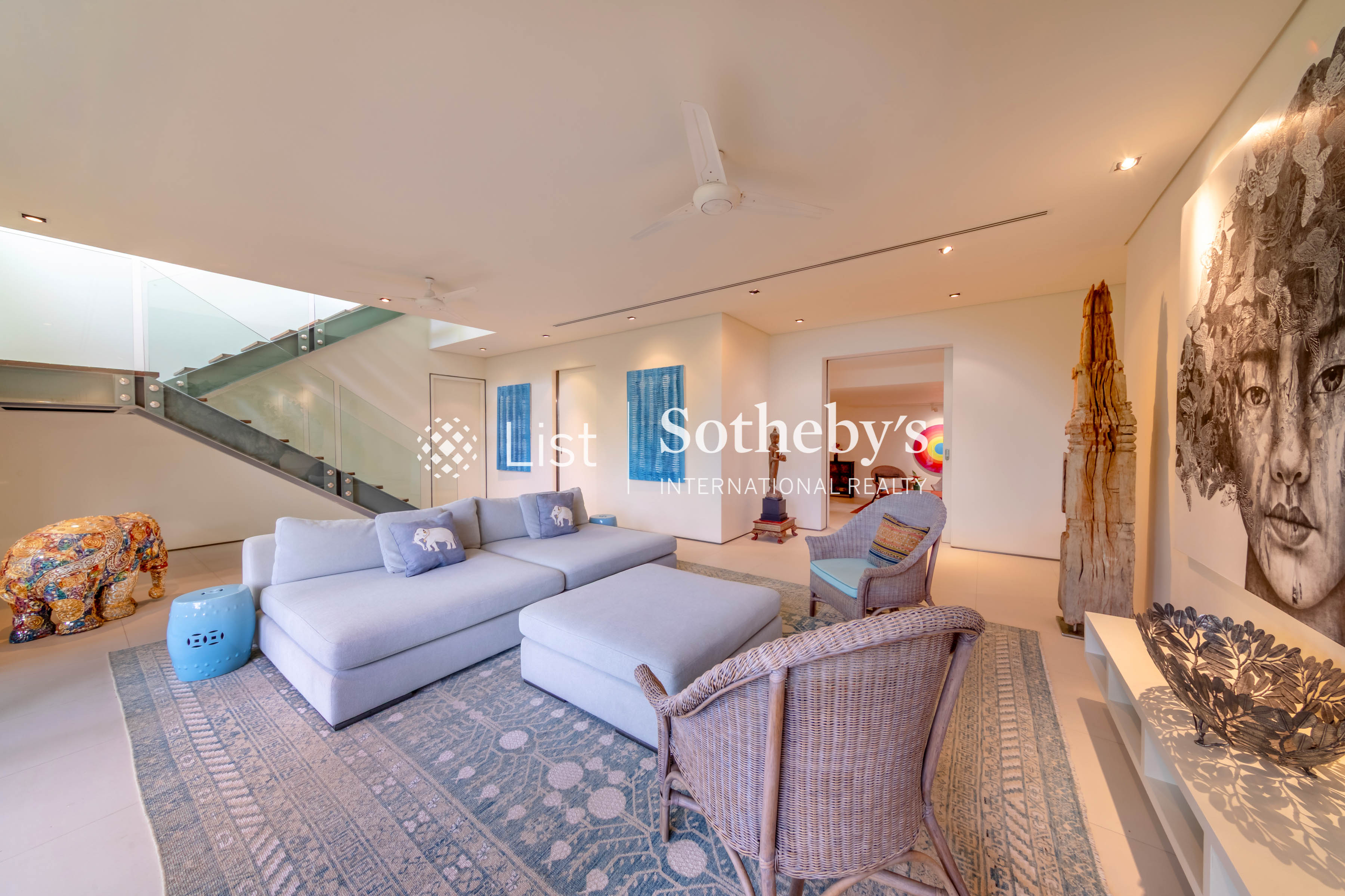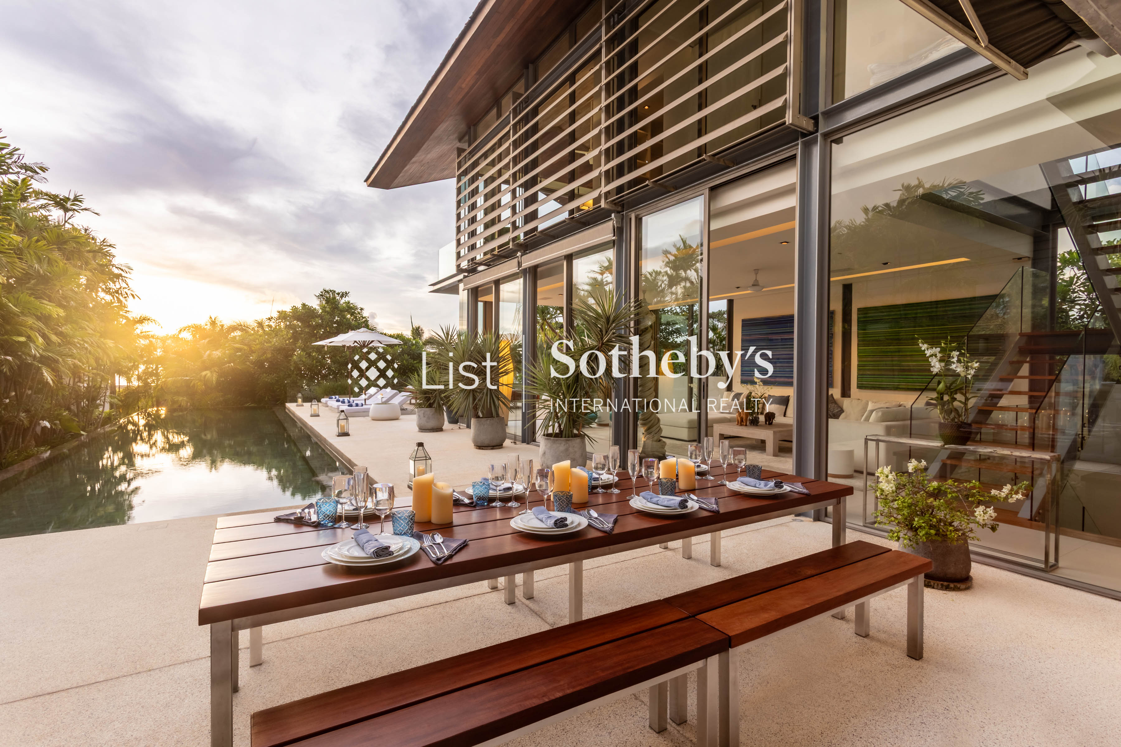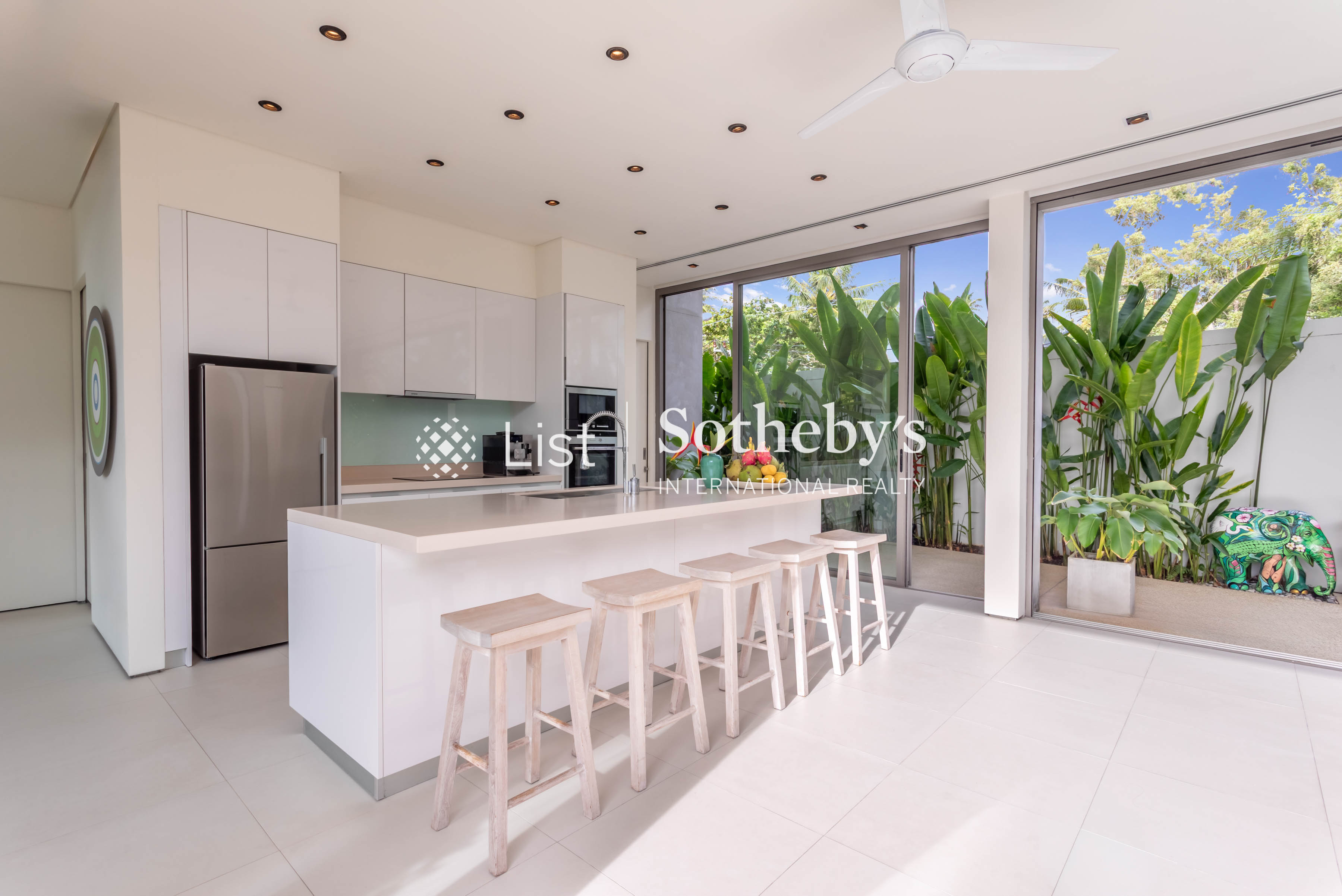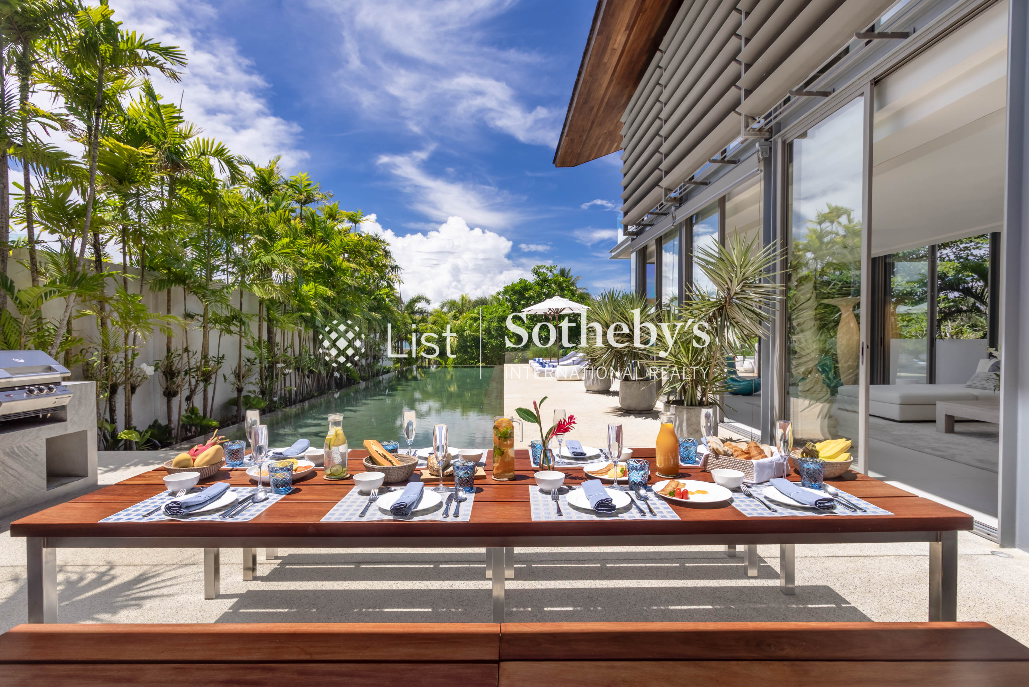 Both the indoor and outdoor living areas have views of the infinity swimming pool, with enough seating for guests to indulge in lively conversation. A spacious dining and kitchen area provides ample space for enjoying meals created by the villa