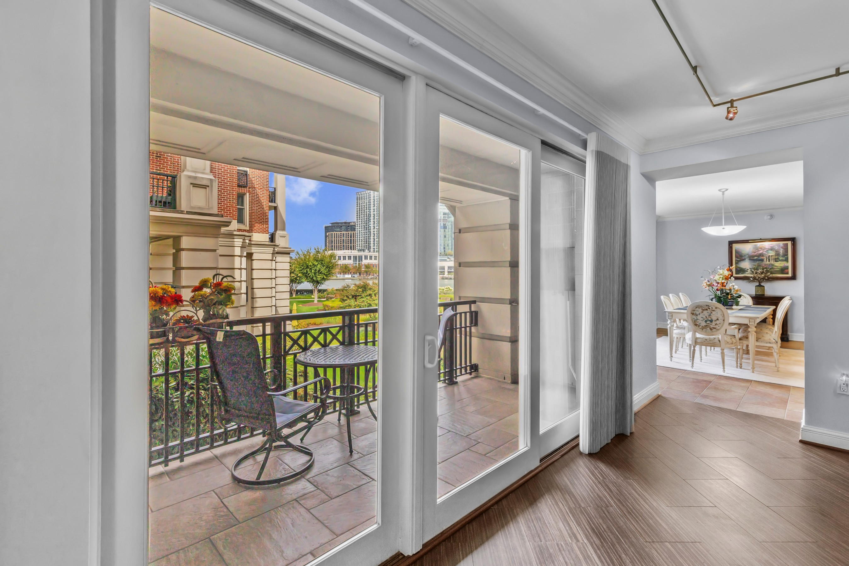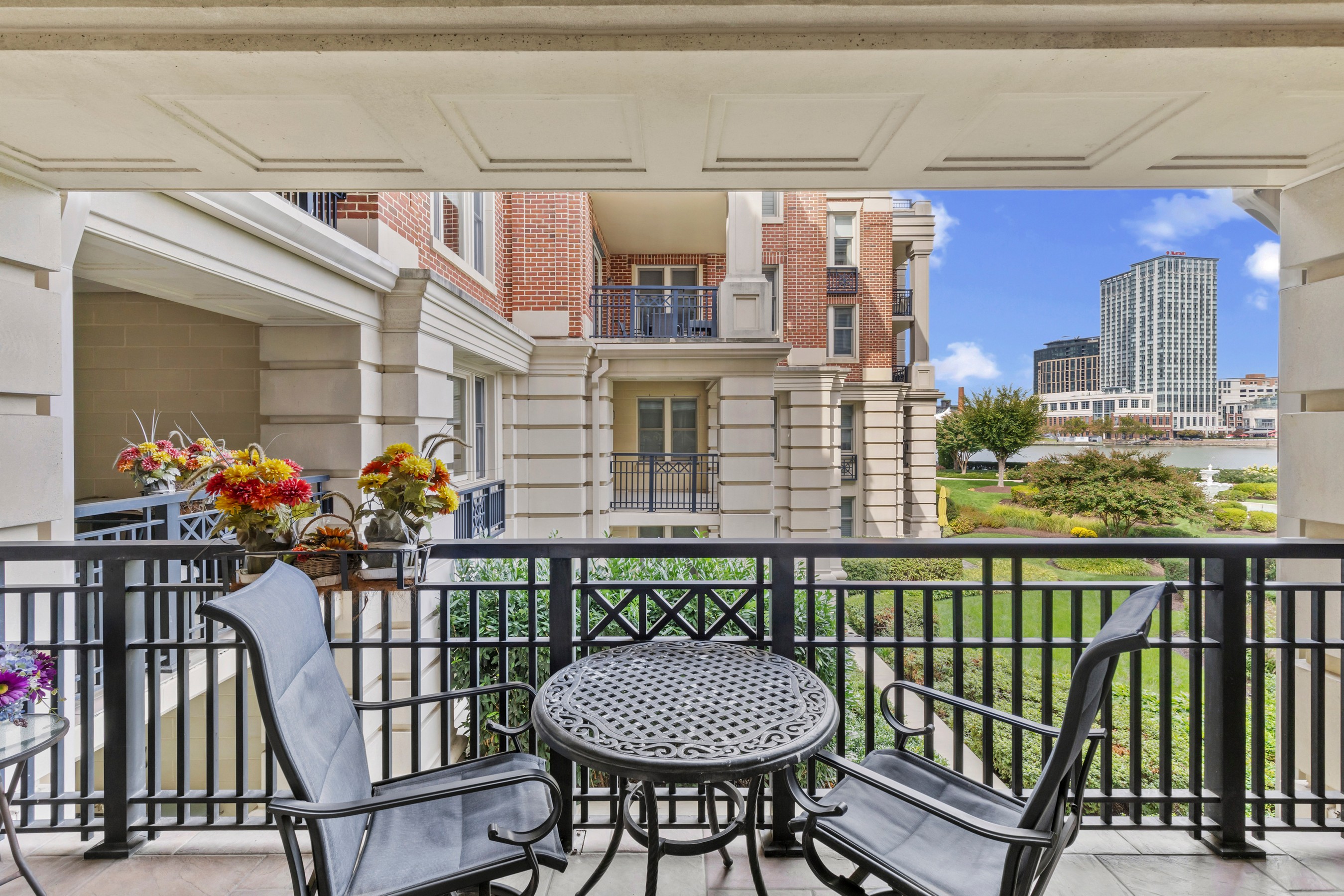 This gorgeous two-bedroom plus den, two full and one half bath second-floor residence at The Ritz-Carlton Residences Baltimore combines more than 2,900 square feet of beautifully finished interior space with two large private balconies overlooking the harbor and main garden. As one of the most spacious floor plans in the building, this residence offers an inviting layout that feels open while still providing distinct, well-defined living spaces. The incredible kitchen and dining area, complete with beautiful views, serves as a central gathering space and features Viking appliances, a center island with bar seating, and one of the only full-sized kitchen pantries in the building. The living room is anchored by a gas fireplace and includes a wet bar, along with access to a private balcony with stunning water views. An expansive den, ideal as a family room, home office, or library, flows seamlessly into the main living areas, offering exceptional versatility for both everyday living and entertaining. The very private primary suite is generously sized with space for a sitting area or office and opens to a covered balcony overlooking the water. It features abundant closet space and a luxurious en suite bath with a dual sink vanity, soaking tub, glass enclosed shower, and a private water closet with a bidet. The second bedroom is also spacious and includes its own en suite bath. A powder room, full-size laundry, and thoughtful storage complete the interior. Additional highlights include two deeded parking spaces and a separate storage area. Residents enjoy exclusive access to on-site fine dining, a full-service marina, and a state-of-the-art medical and wellness spa, along with twenty-four-seven concierge, valet, doorman, and porter services that define The Ritz-Carlton standard. Lifestyle amenities include an indoor pool, fitness center, theater, six private guest suites, and beautifully appointed event and entertaining spaces set within manicured gardens. Ideally positioned along the Baltimore Waterfront Promenade, the residence offers direct access to the waterfront, water taxis, and nearby cultural landmarks. Conveniently located just minutes from the city's art scene, major stadiums, Penn Station, and BWI Airport, this home delivers an exceptional blend of luxury, comfort, and accessibility. Schedule your private showing today.
