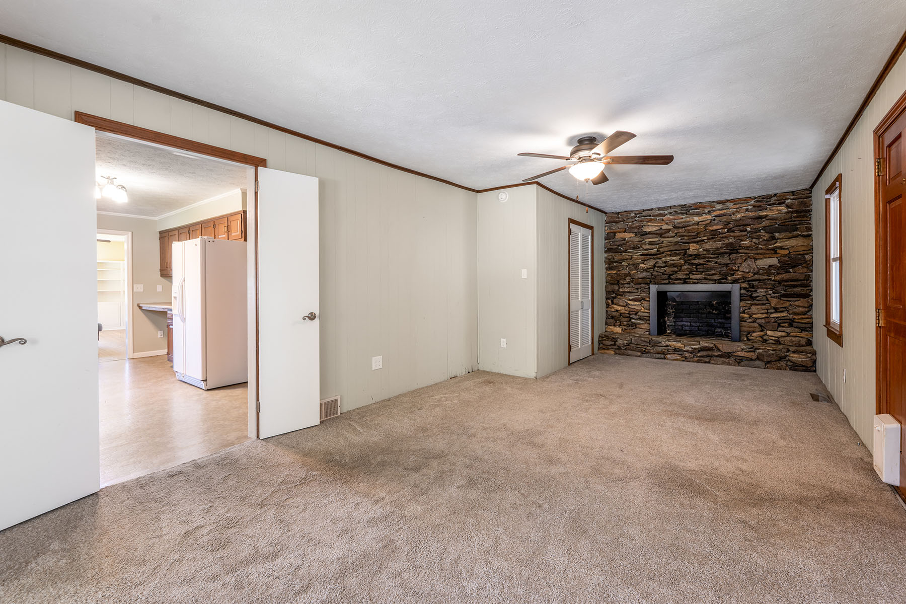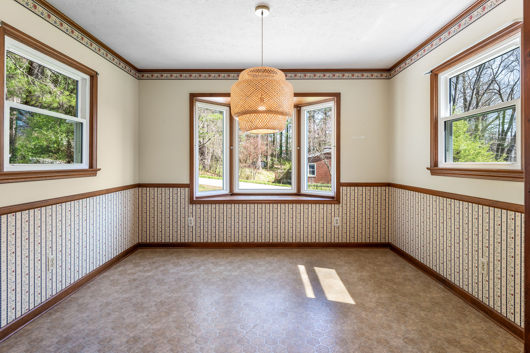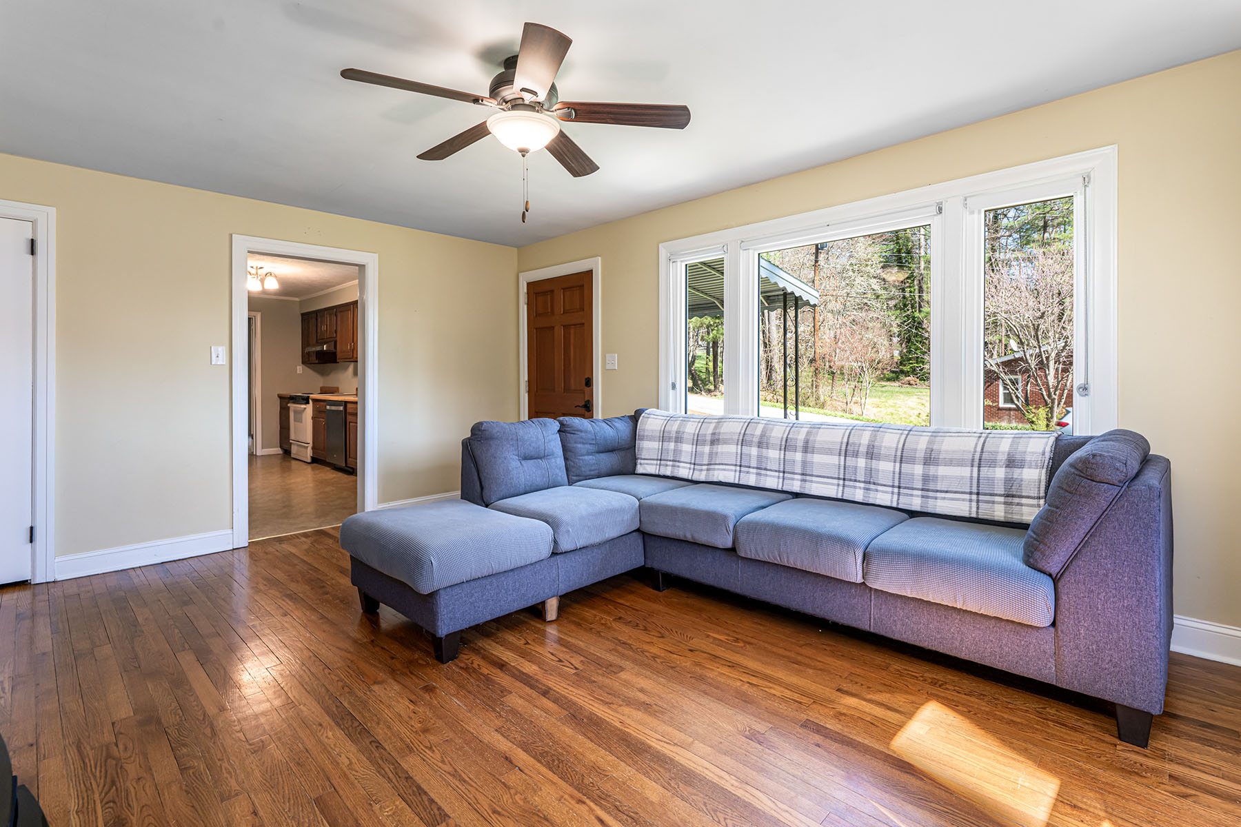 Mid-century charm meets exceptional opportunity in this single-level home just over two miles from Downtown Hendersonville. Set on a mostly level double lot, the property includes an additional buildable lot; a rare and valuable feature offering flexibility for expansion, investment, or future resale potential (buyer to verify). Step into your living room featuring beautiful natural light, seamlessly connecting to an efficient galley kitchen with ample counter space and a double pantry. A spacious family room/den is anchored by a beautiful stone fireplace creating a warm and inviting setting for both everyday living and entertaining. The dining area, highlighted by a bay window, offers ideal flex space for a home office, reading nook, or creative use. Designed for easy main-level living, the home features a primary bedroom with an ensuite bath and walk-in closet, while the second bedroom is generously sized and privately positioned with backyard views. Outdoor living truly sets this property apart. Enjoy a large screened-in porch perfect for relaxing in the mountain air, along with a newly built Trex deck designed for low-maintenance entertaining. The additional parcel expands your possibilities with mountain views and a firepit area, creating a private outdoor retreat with room to grow. A basement with exterior access, provides excellent space for a workshop, hobbies, or organized storage. With solid bones, immediate livability, and long-term upside, this property offers a rare combination of comfort, location, flexibility, and value.
