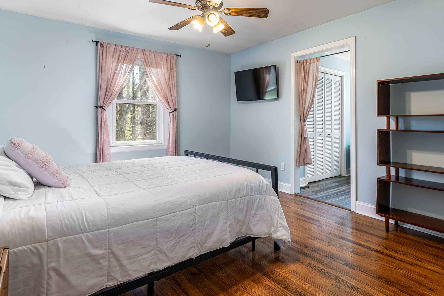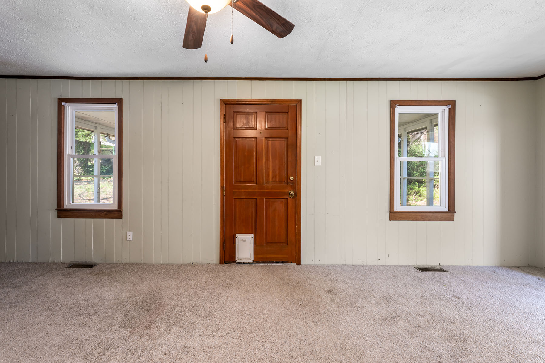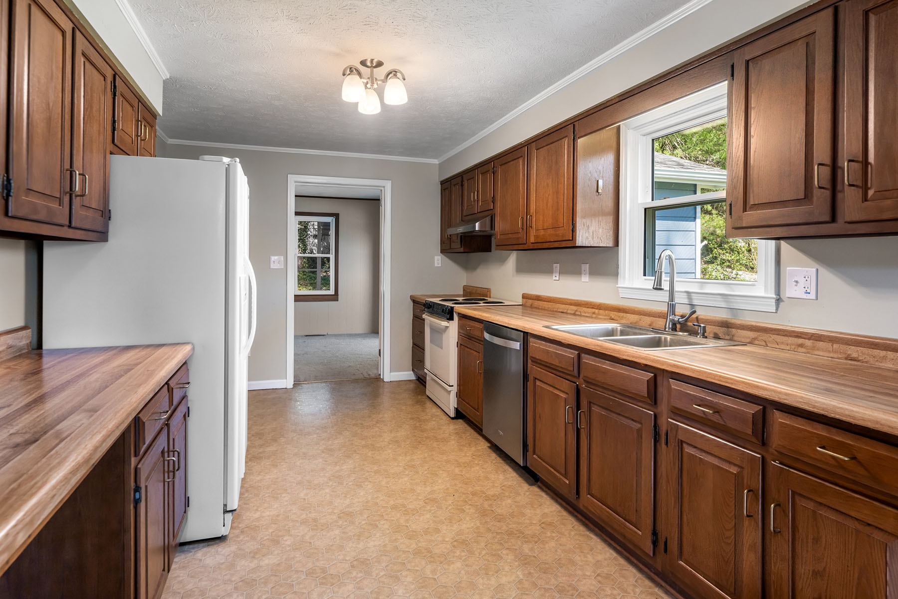 Mid-century charm meets exceptional opportunity in this single-level home just over two miles from Downtown Hendersonville. Set on a mostly level double lot, the property includes an additional buildable lot; a rare and valuable feature offering flexibility for expansion, investment, or future resale potential (buyer to verify). Step into your living room featuring beautiful natural light, seamlessly connecting to an efficient galley kitchen with ample counter space and a double pantry. A spacious family room/den is anchored by a beautiful stone fireplace creating a warm and inviting setting for both everyday living and entertaining. The dining area, highlighted by a bay window, offers ideal flex space for a home office, reading nook, or creative use. Designed for easy main-level living, the home features a primary bedroom with an ensuite bath and walk-in closet, while the second bedroom is generously sized and privately positioned with backyard views. Outdoor living truly sets this property apart. Enjoy a large screened-in porch perfect for relaxing in the mountain air, along with a newly built Trex deck designed for low-maintenance entertaining. The additional parcel expands your possibilities with mountain views and a firepit area, creating a private outdoor retreat with room to grow. A basement with exterior access, provides excellent space for a workshop, hobbies, or organized storage. With solid bones, immediate livability, and long-term upside, this property offers a rare combination of comfort, location, flexibility, and value.