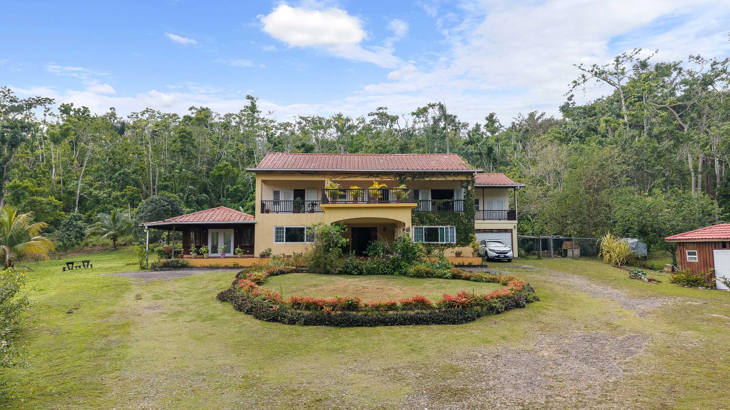 Set within the tranquil community of Higgin Town in central St. Ann, positioned on a plateau approximately 1,200 feet above sea level, this expansive estate enjoys cool breezes and sweeping mountain views. A rare opportunity to own a substantial residence on 20 acres, the property is ideal for family living, multi-generational use, or investment. The home features six bedrooms and five bathrooms, with three bedrooms located on the ground floor. Two spacious living areas offer flexibility, and the layout allows for easy conversion into two self-contained residences. Generous verandahs on both floors and upper-level balconies provide excellent outdoor living and serene views. The property is equipped with an off-grid photovoltaic system, rainwater catchment, and Culligan filtration with reverse osmosis, allowing for sustainable, self-sufficient living. Offered furnished and sold as is, this peaceful estate combines privacy, space, and long-term potential, while remaining close to emerging residential and eco-tourism developments. Viewings by appointment through your agent of choice for suitably positioned buyers.