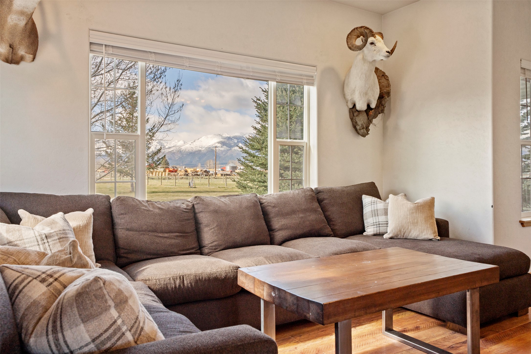 Situated on 3.4 acres, the property has been fully utilized as a productive homestead and includes valuable irrigation water rights, making it ideal for gardening, small-scale farming, or simply enjoying wide open space. The expansive setting provides breathtaking, unobstructed views of both the Bitterroot and Sapphire Mountain ranges, with a sprawling ranch bordering the back of the property for added privacy and serenity.