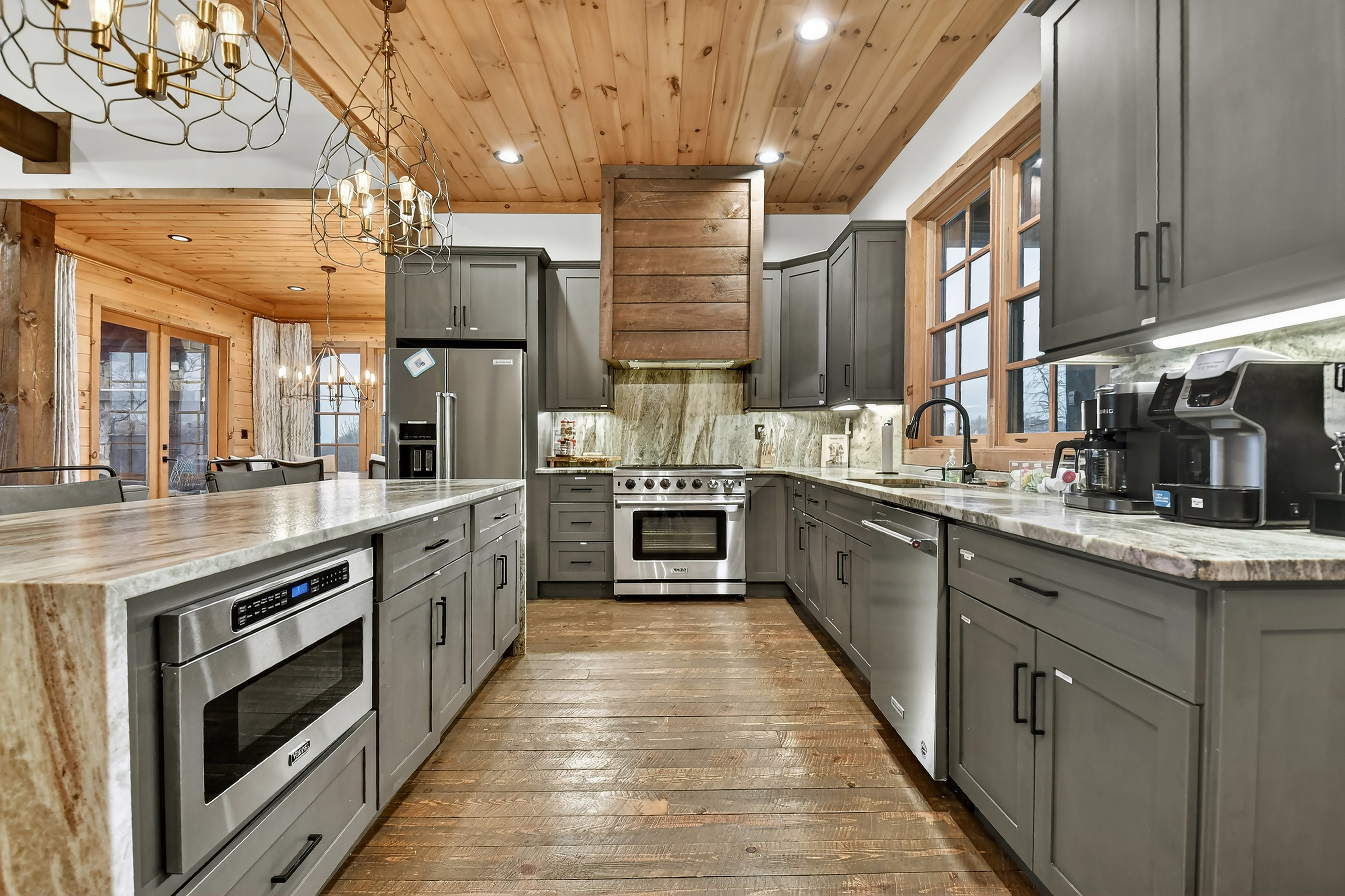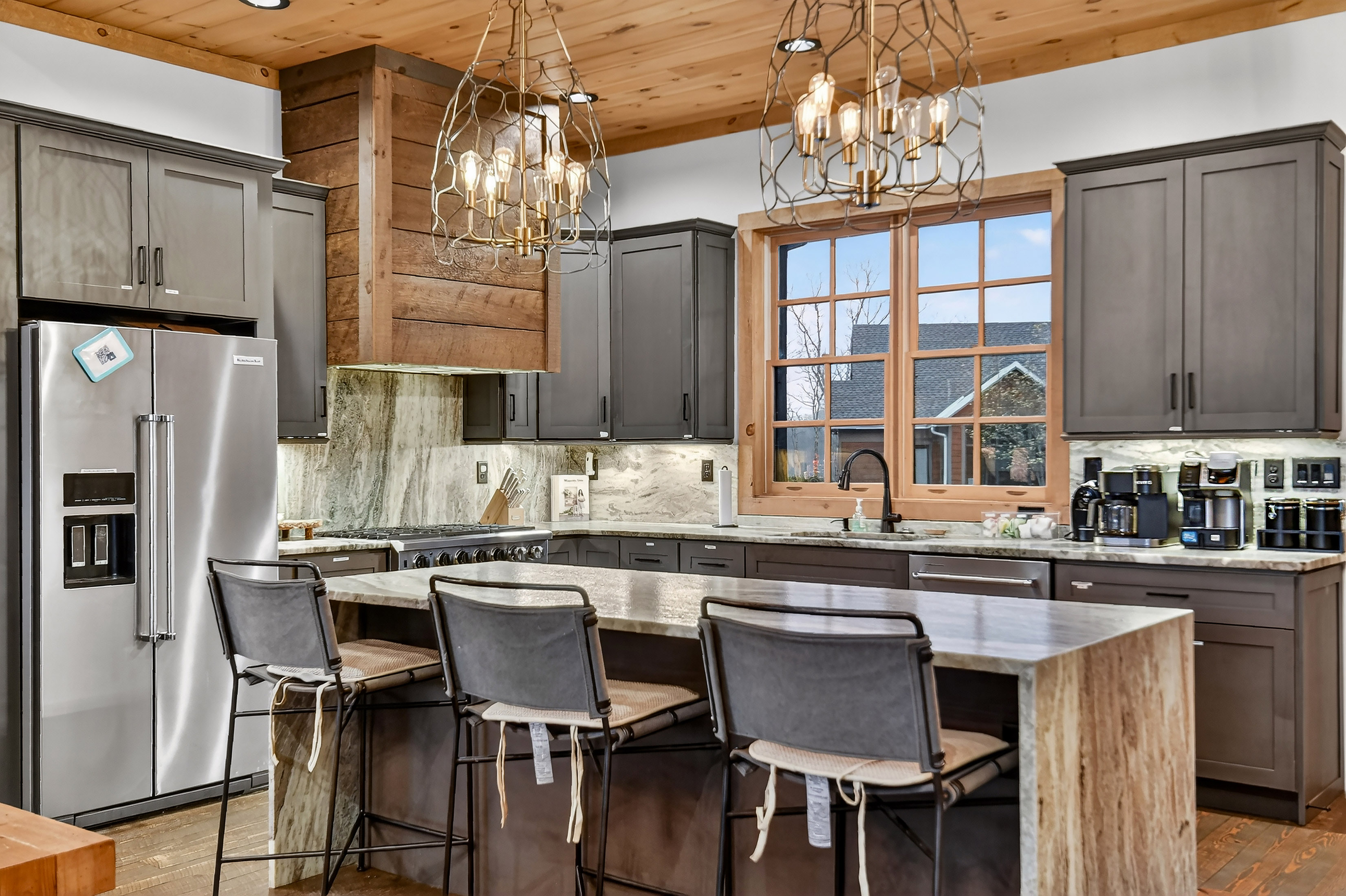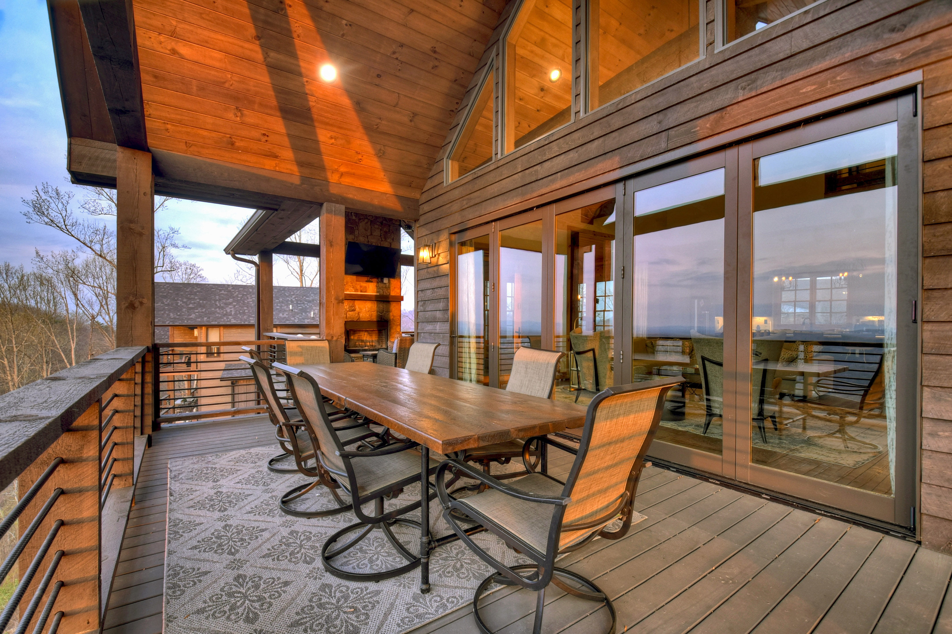 Experience unparalleled luxury at 472 Overlook Drive in the prestigious, gated Blue Ridge Heights community: a modern mountain masterpiece showcasing a rare tri-state panoramic view and a private, heated infinity pool that seamlessly meets the horizon. Designed to impress from the moment you step inside, this showpiece cabin is framed by soaring floor-to-ceiling glass that captures layered, postcard-perfect mountain vistas. The open-concept layout blends refined rustic finishes with upscale comfort, anchored by a dramatic great room and breathtaking natural light. The gourmet chef’s kitchen is a true standout, complete with a 6-burner gas range, premium appliances, abundant workspace, and a large island perfect for gathering with family and friends, all set against an unforgettable mountain backdrop. Offering four full primary suites plus a bunk room and office, this home ensures every guest enjoys an equally luxurious retreat, each suite appointed with spa-style finishes and serene views. The terrace level is designed for entertainment and relaxation, featuring a stylish wet bar, expansive recreation room, and seamless walk-out access to the signature infinity-edge pool — your private front-row seat to awe-inspiring sunsets and sweeping three-state vistas. Whether as a full-time residence, second home, or high-performing luxury rental, this property delivers the ultimate Blue Ridge lifestyle with unmatched scenery, upscale amenities, and an unforgettable setting above the treetops.