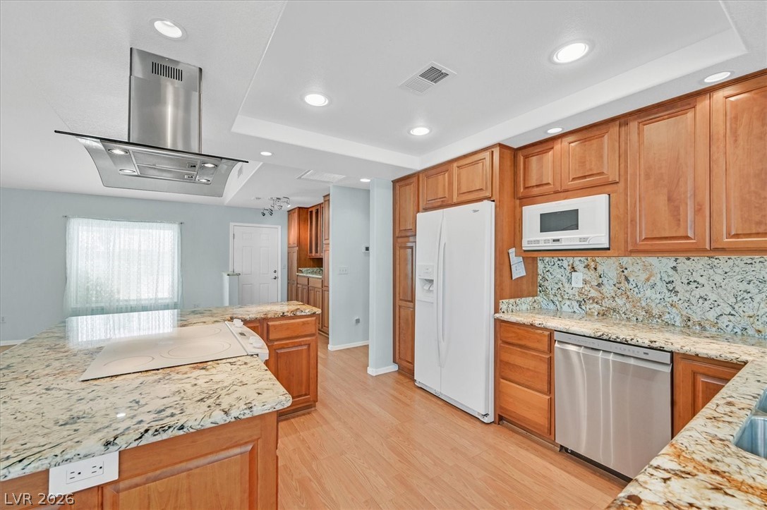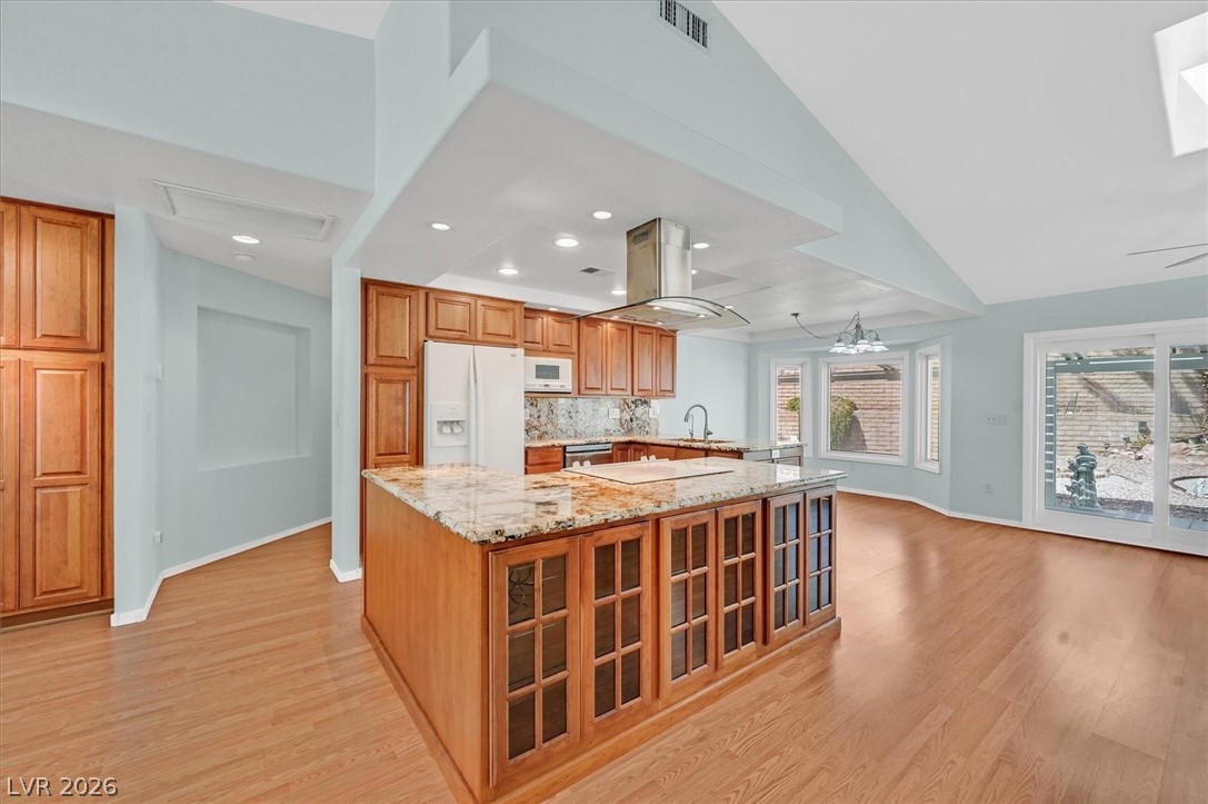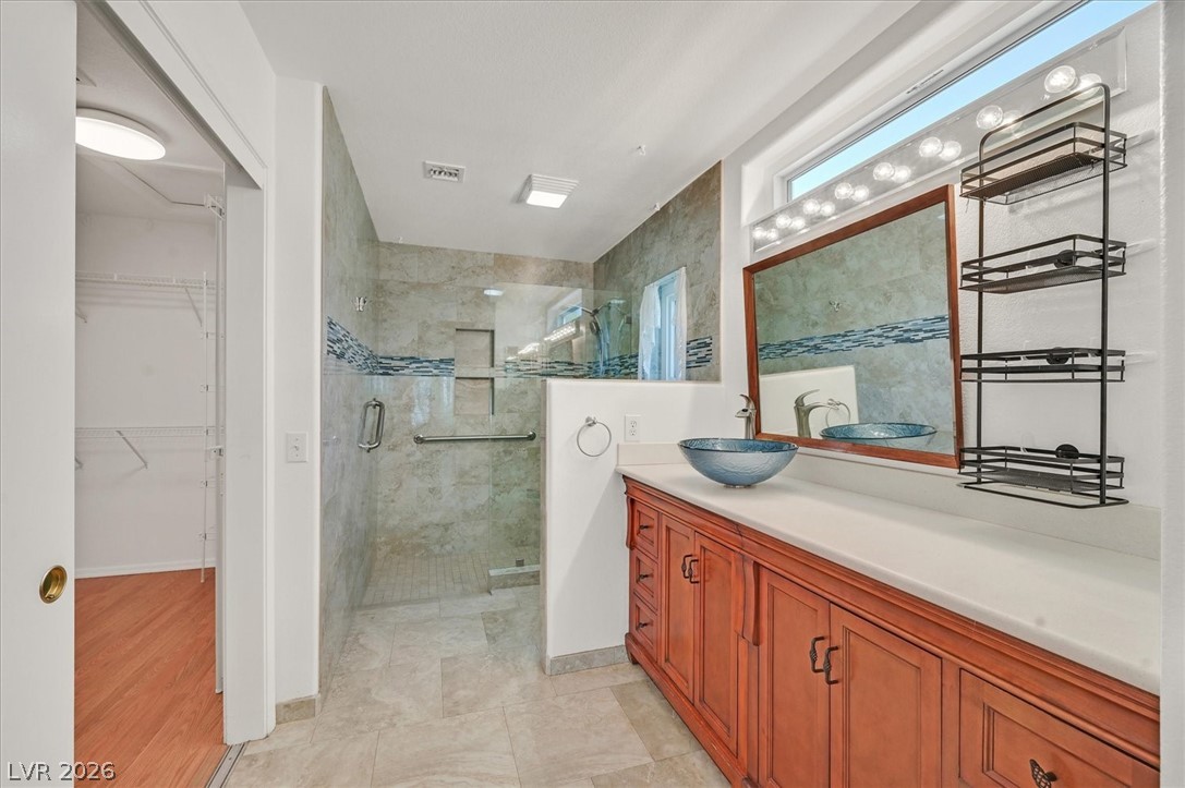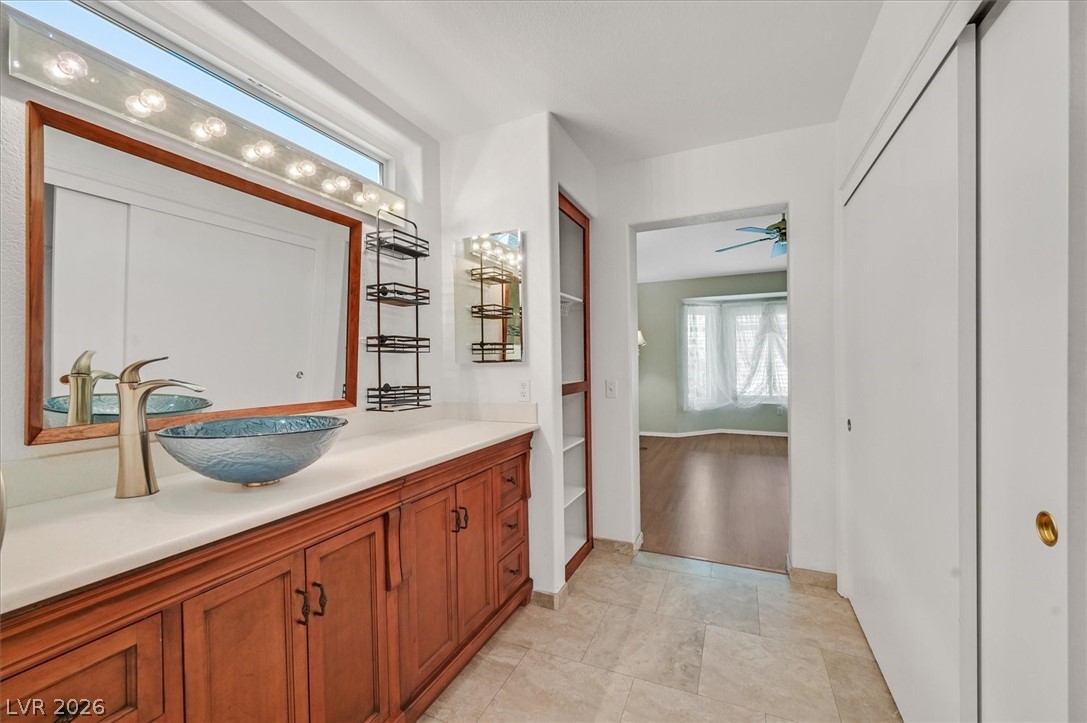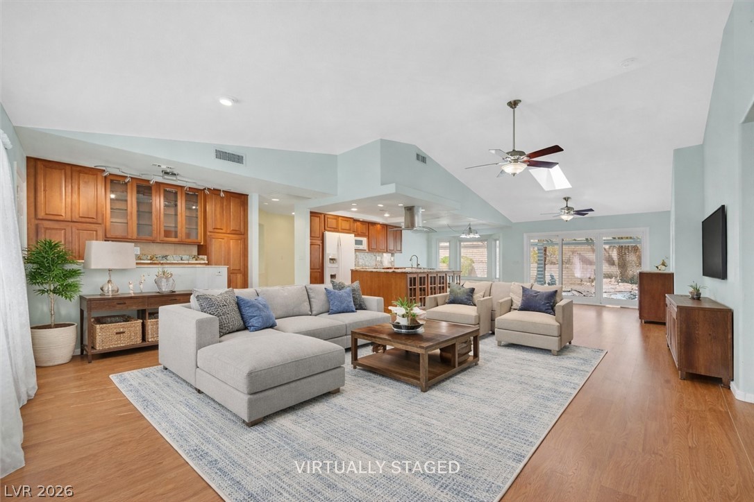 Great home! Nicely remodelled and reconfigured kitchen with abundant granite countertops, granite backsplash, island, and custom cabinets w/ pullout drawers. Nice bar/coffee area. Second custom island that rolls. Most windows are new and all are "newer". Several windows have integated blinds between the panes. Paid off solar! (Power bill averages around $15/mo) Nicely remodelled primary bath with roll in shower and basin sink. Almost 1/3 acre lot with fruit trees and plenty of garden areas. Finished garage has plenty of cabinets, a work bench, and extra golf cart storage. Sun City Summerlin has 2 champoinship golf courses, one exectuive golf course, and 4 world class clubhouses!